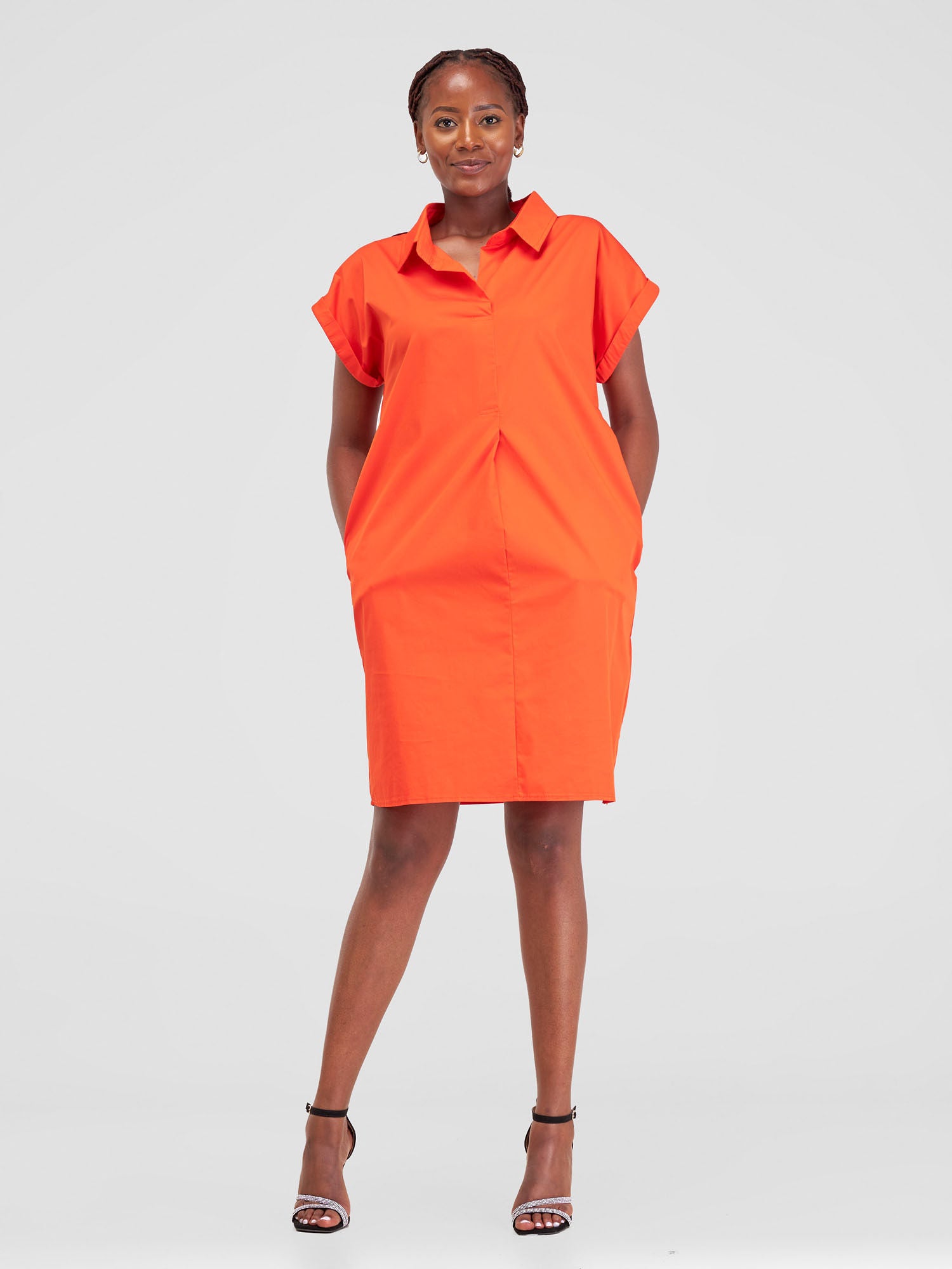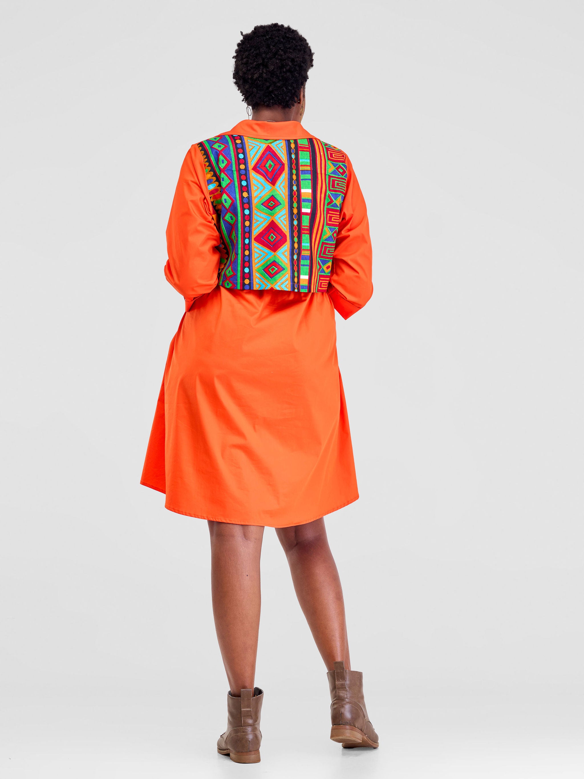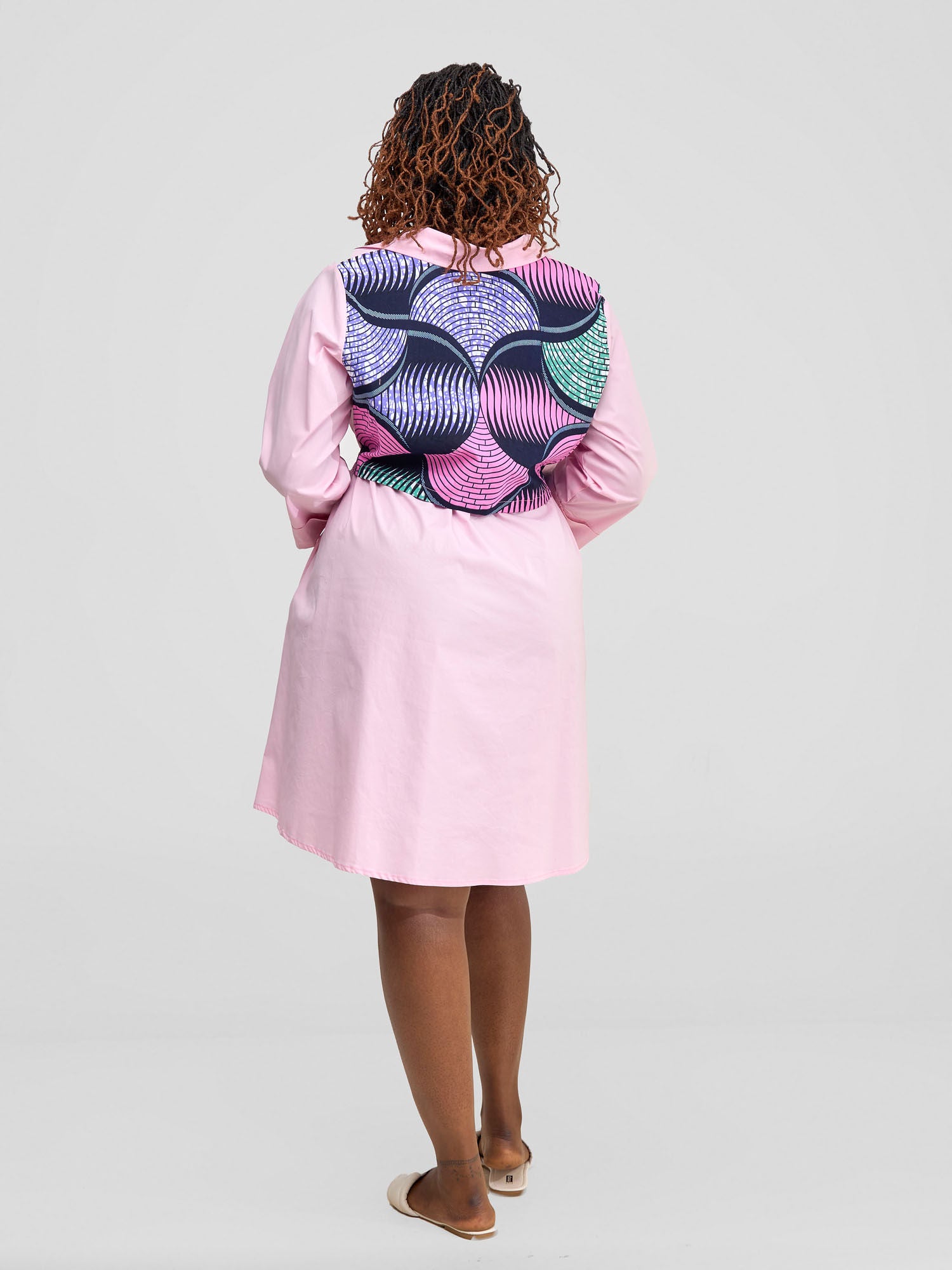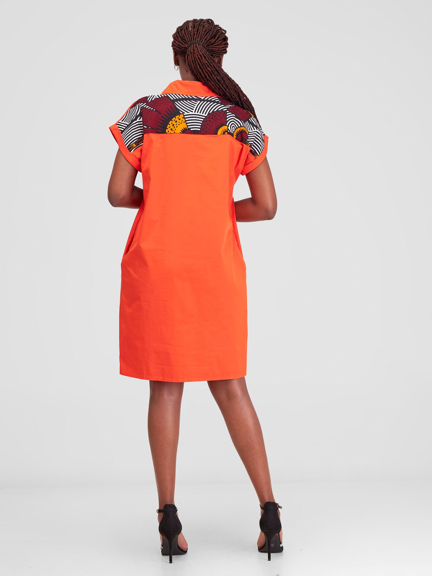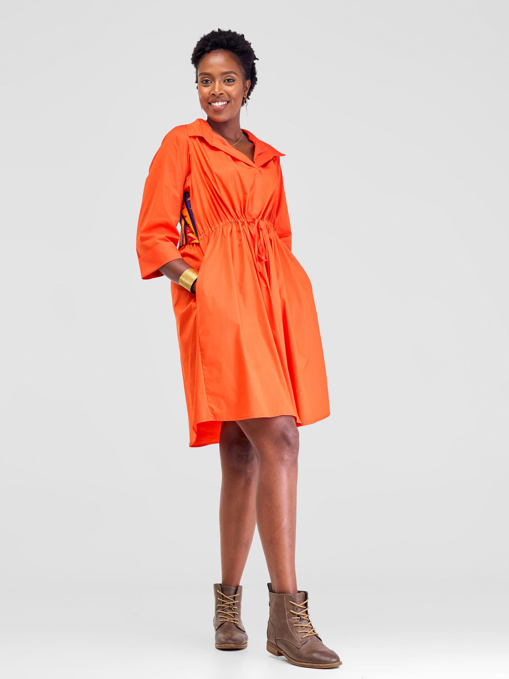 Safari Lira Drawstring Knee Length Dress MG - Hunters + Olive / Brown Khoi Print