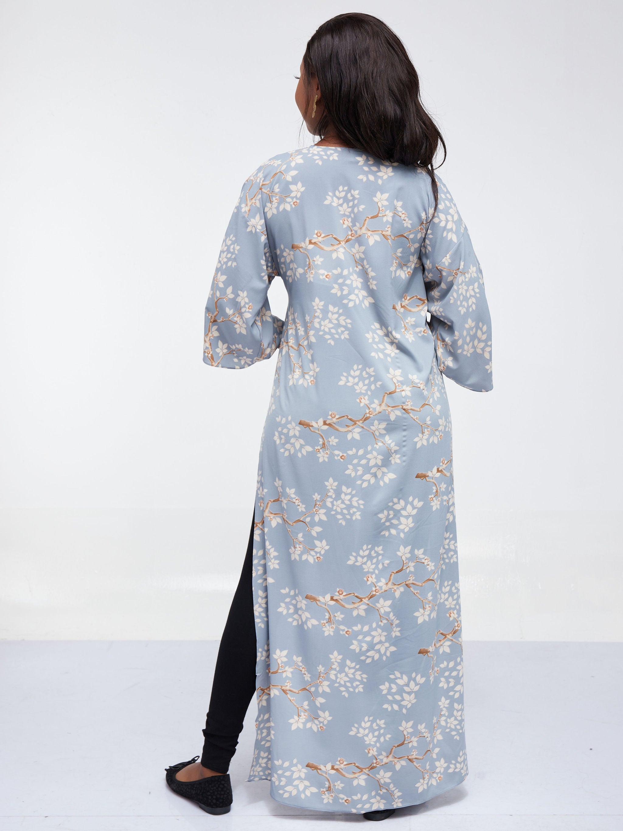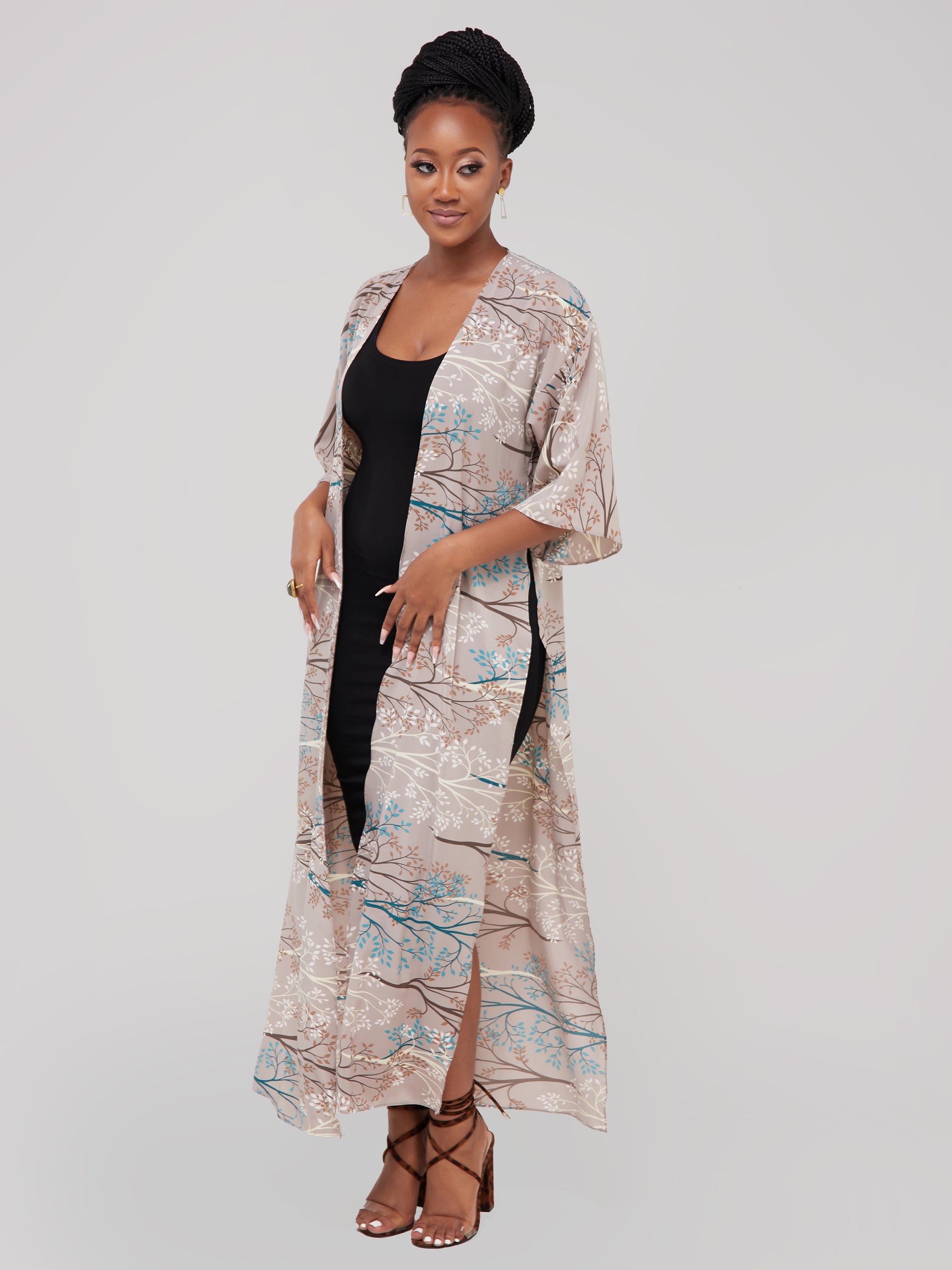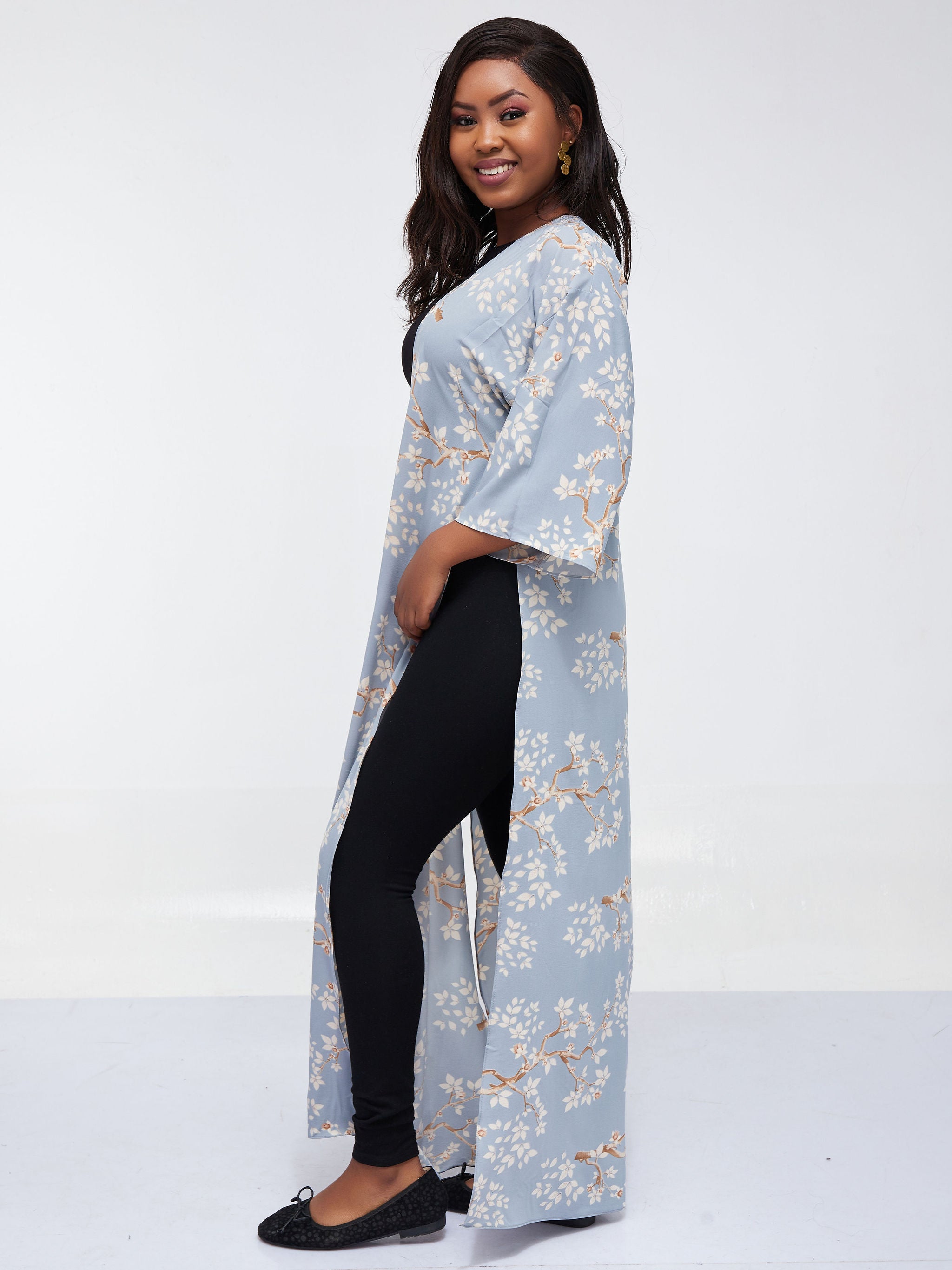Safari Maisha High Slit Kimono - Grey Floral Print