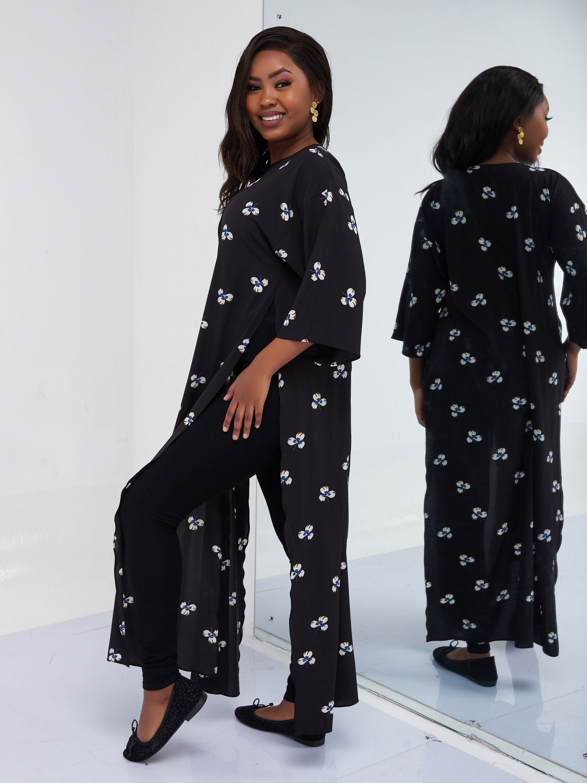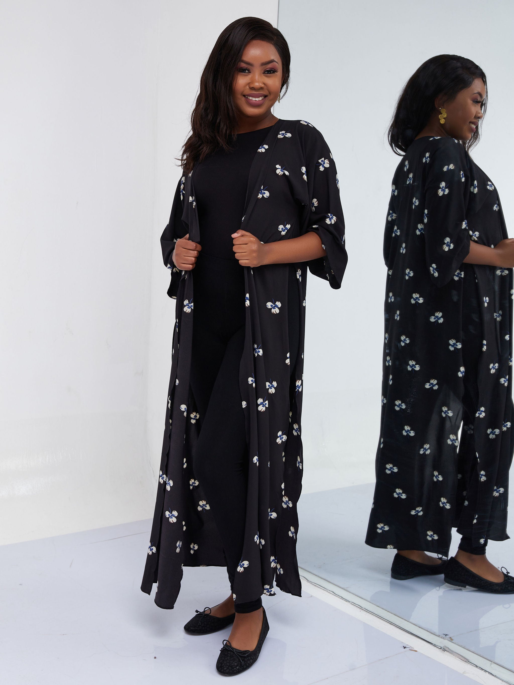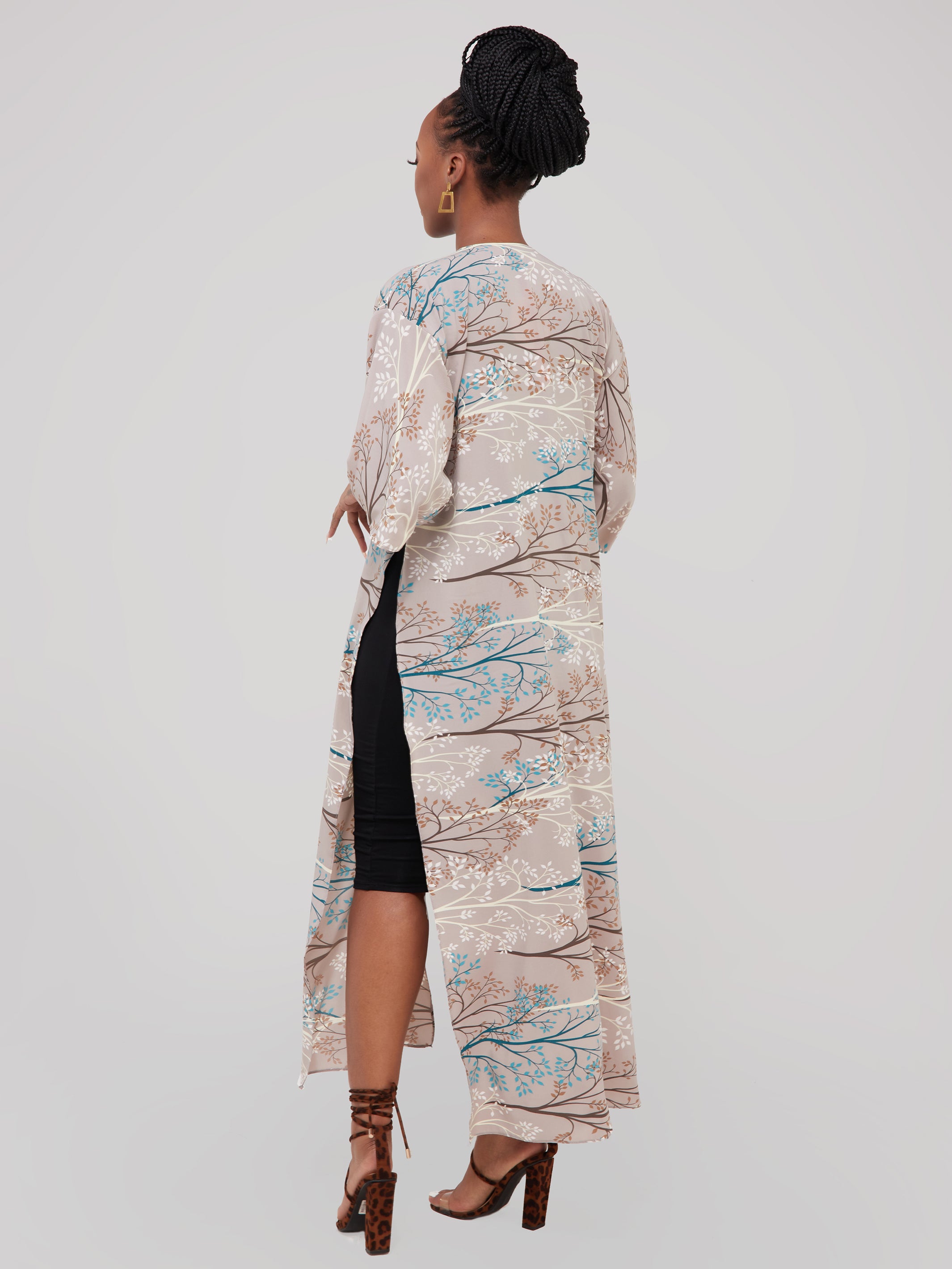 Safari Maisha High Slit Kimono - Grey Floral Print