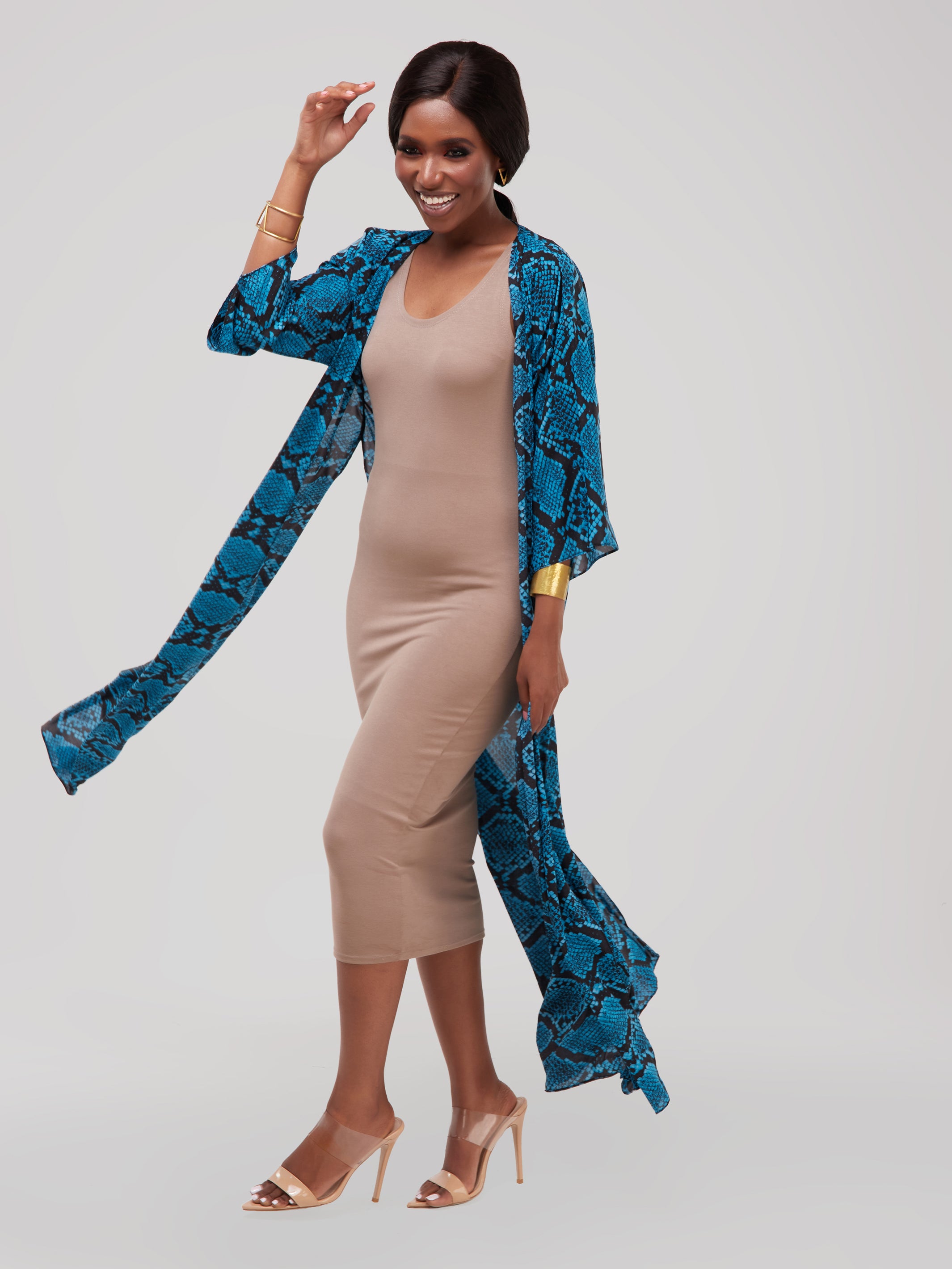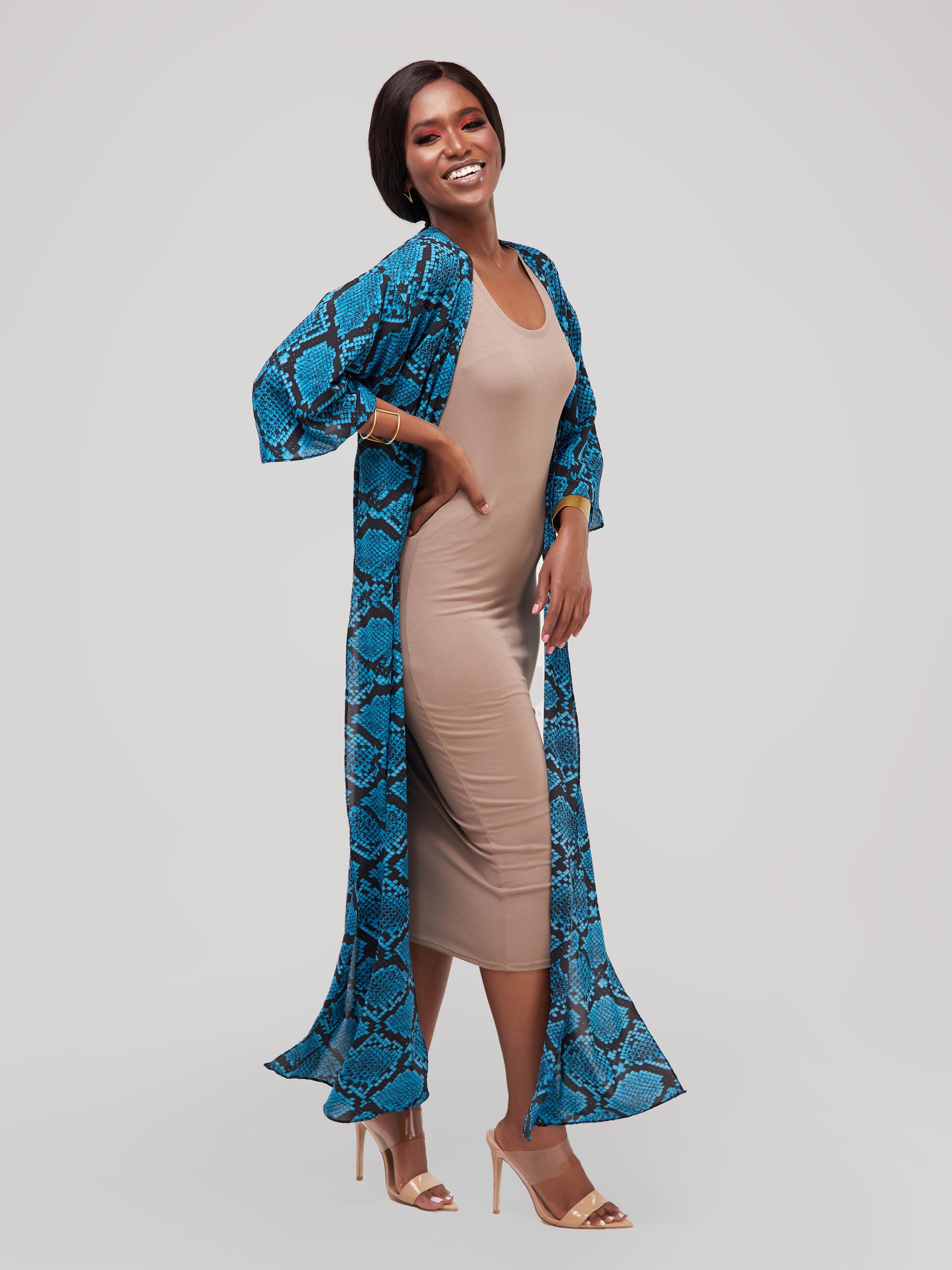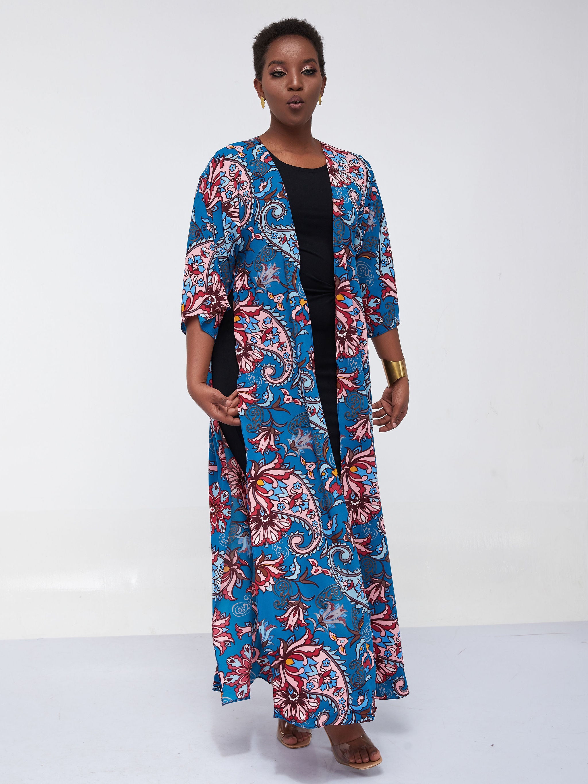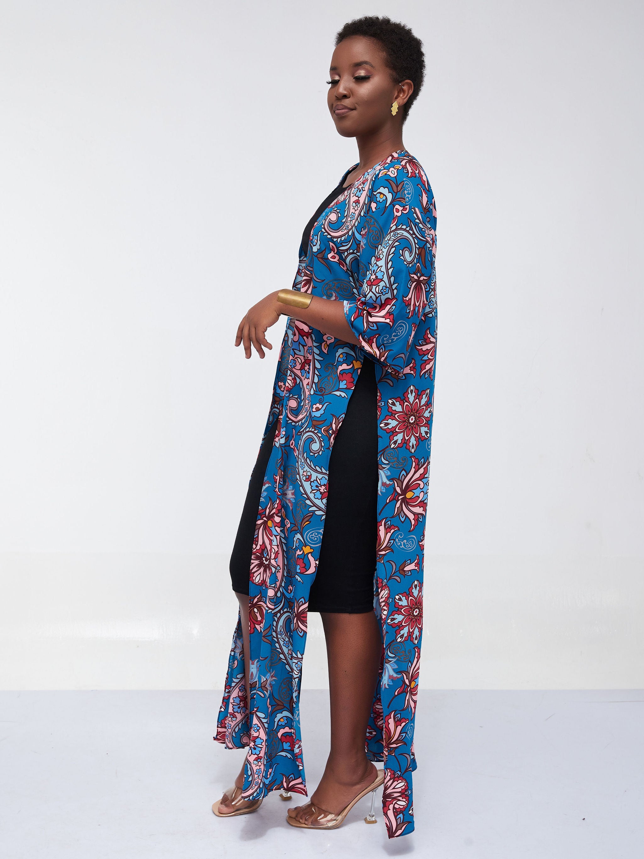 Safari Maisha High Slit Kimono - Blue Abstract Print
