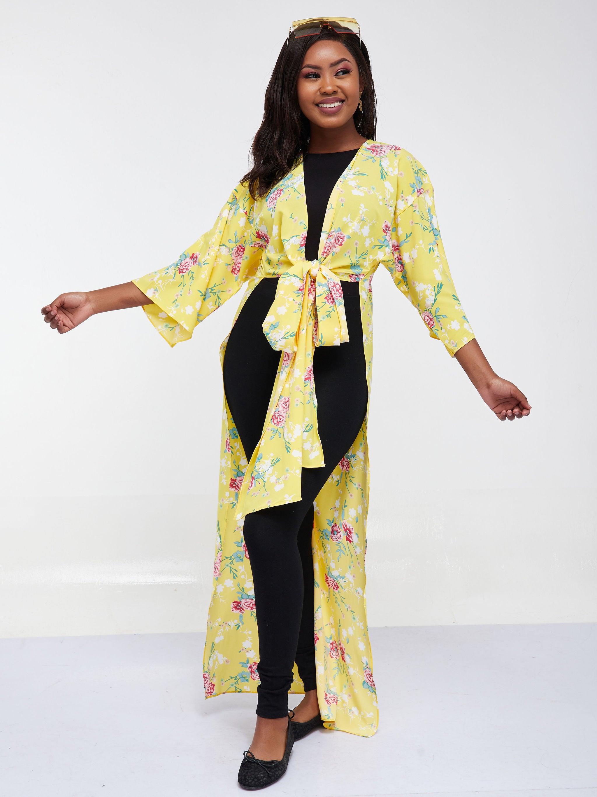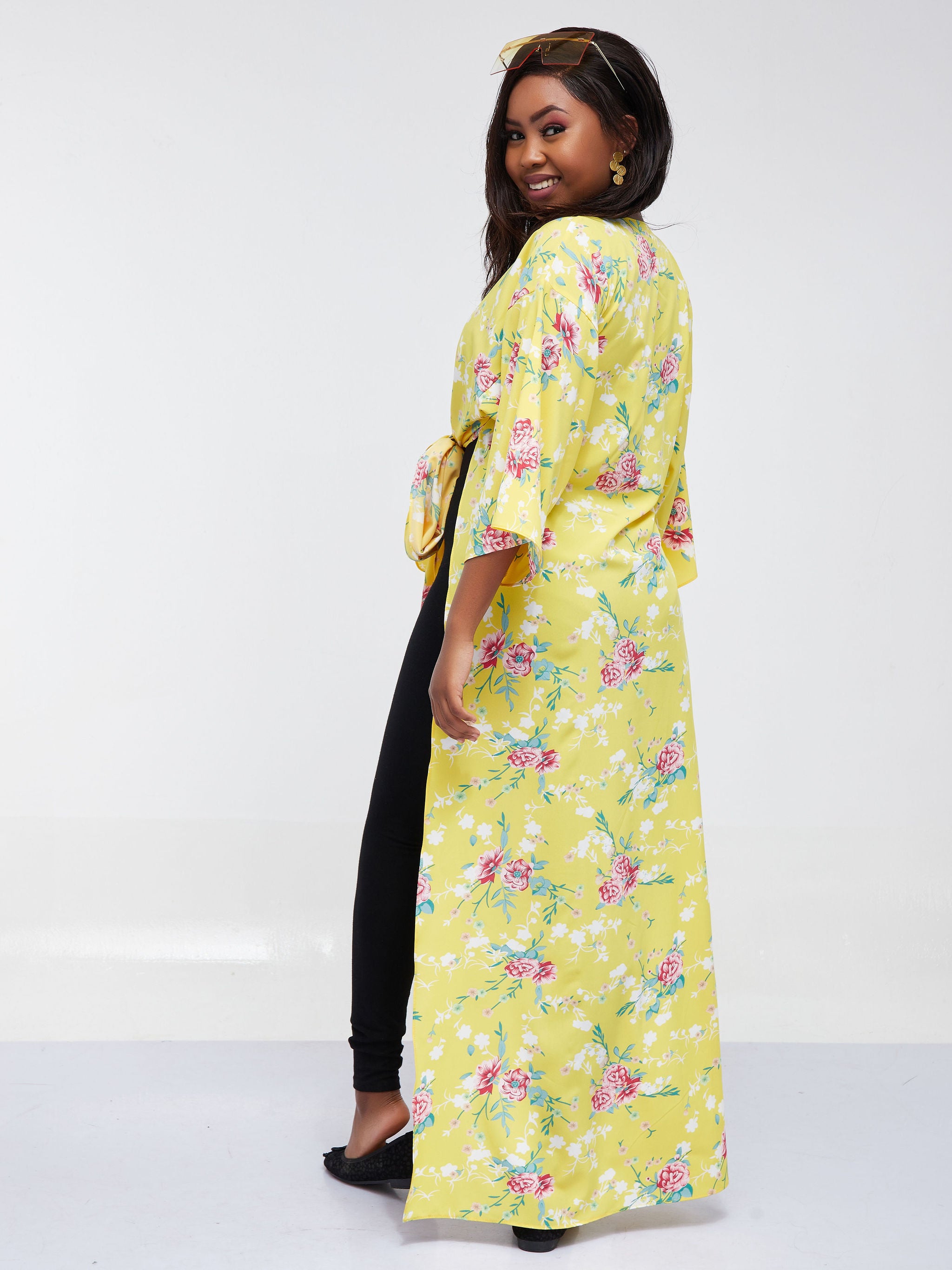Safari Maisha High Slit Kimono - Yellow Floral Print