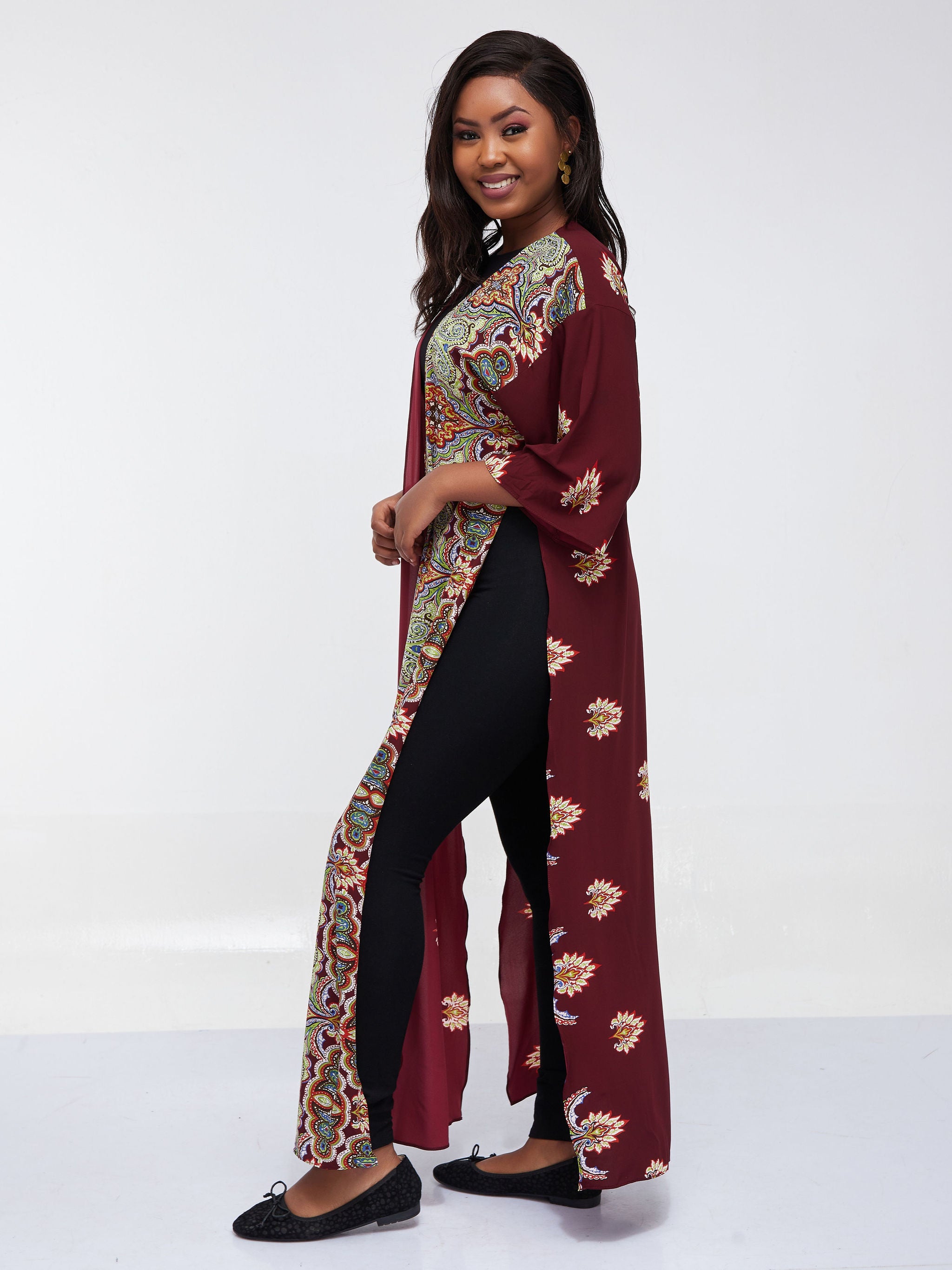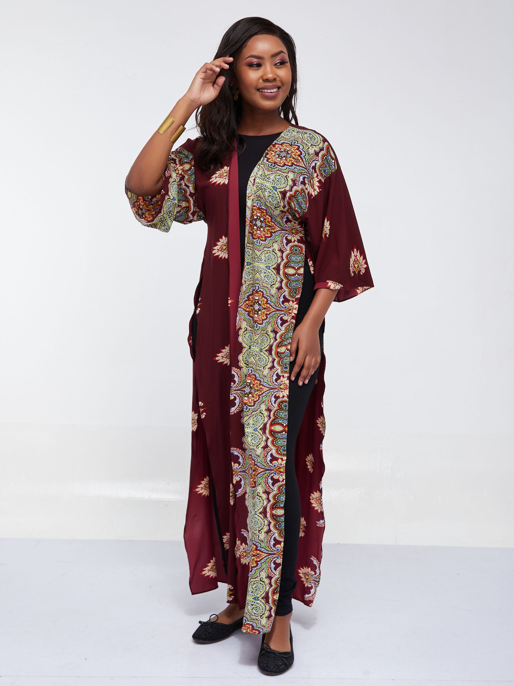 Safari Maisha High Slit Kimono - Brown Paisly Print