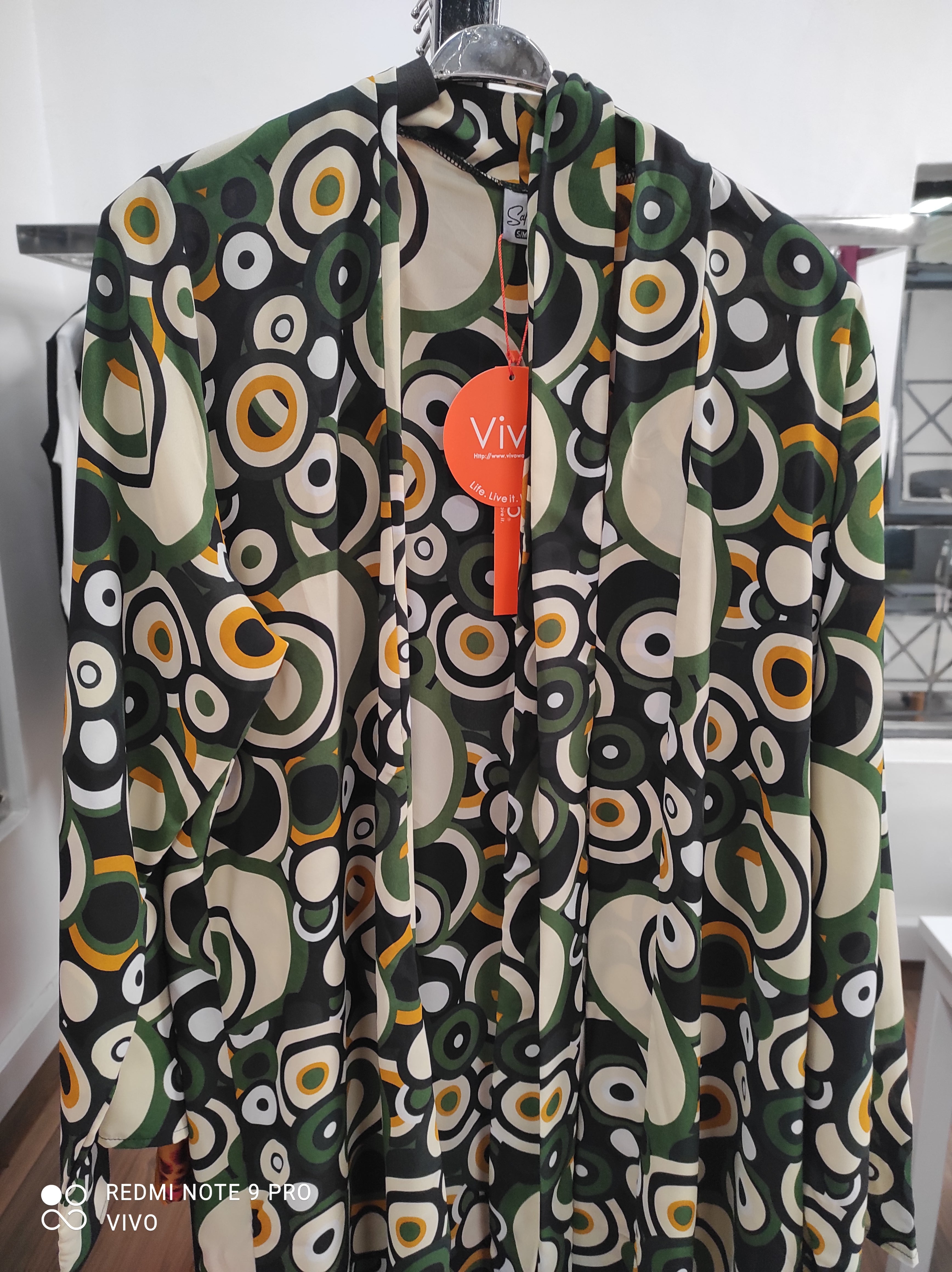Safari Maisha Long Sleeved Kimono - Green / Black Circles Print