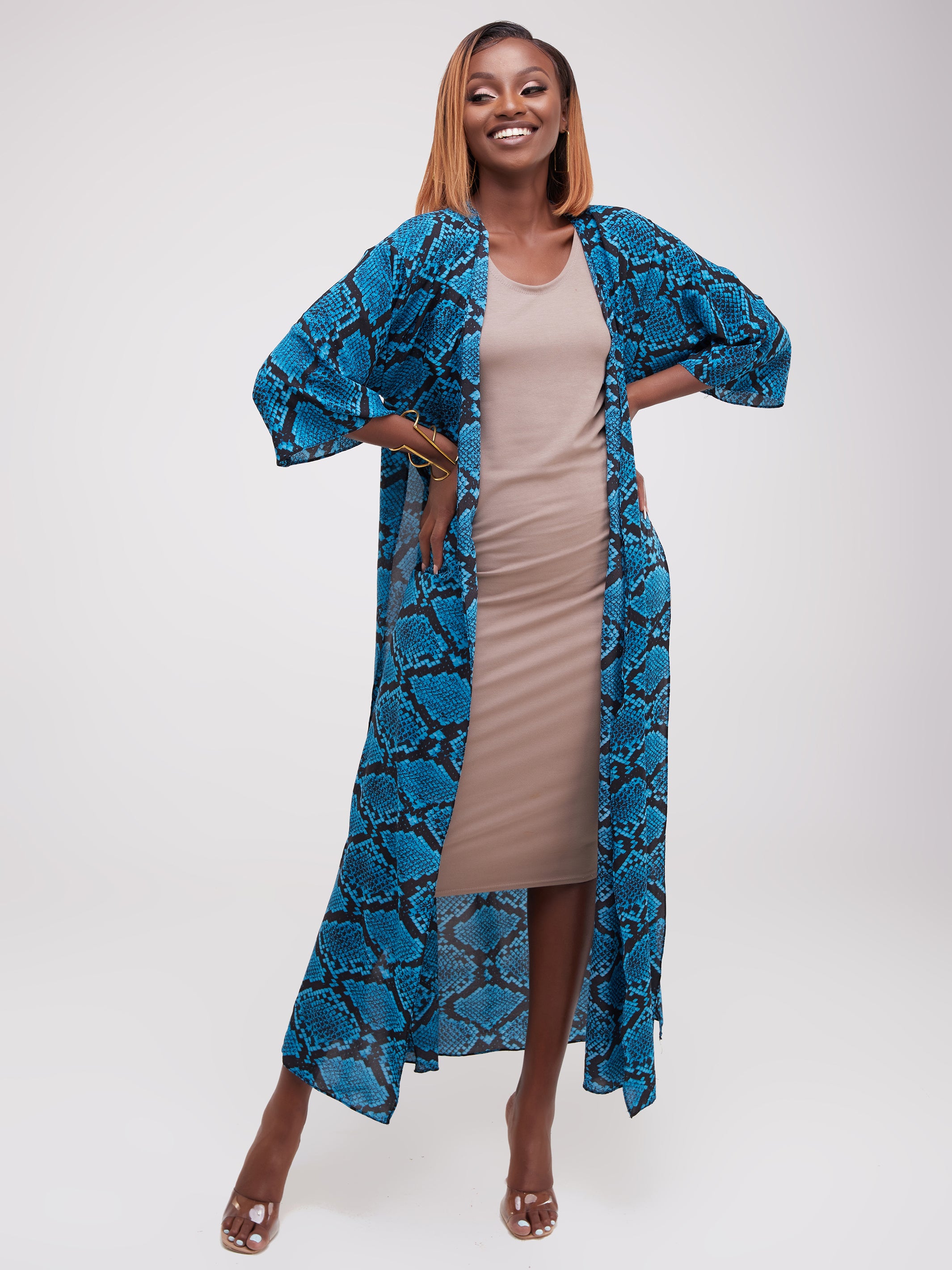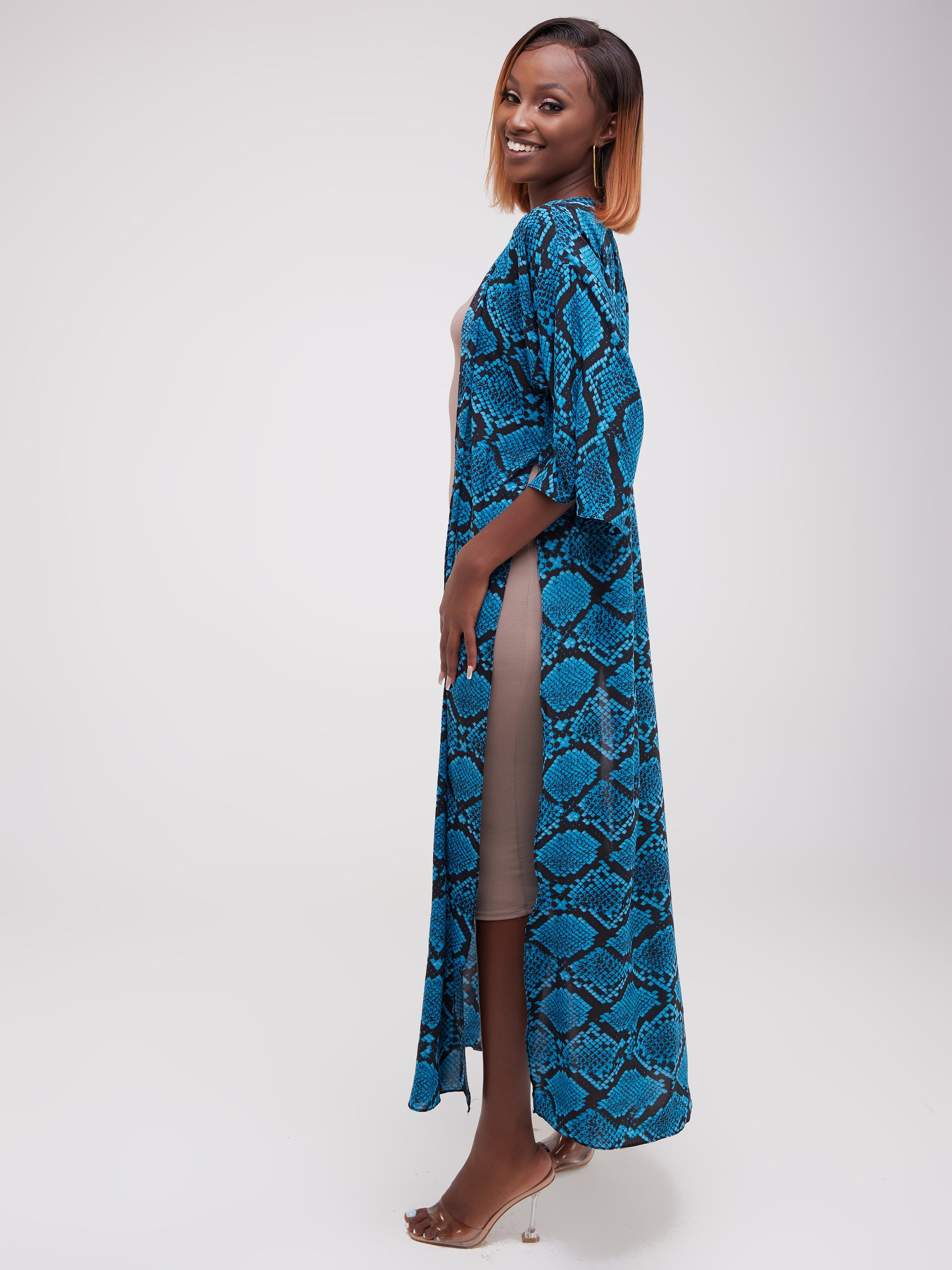 Safari Maisha Long Sleeved Kimono - Royal Blue / Black Print