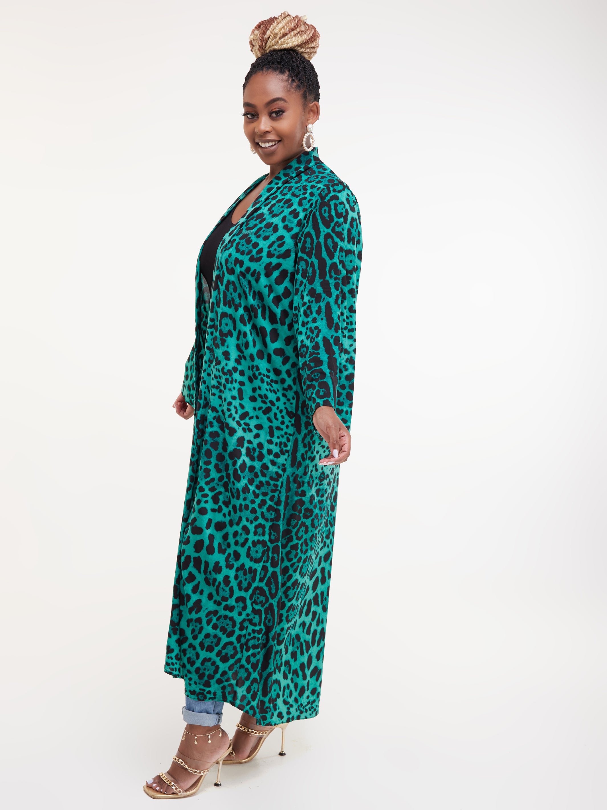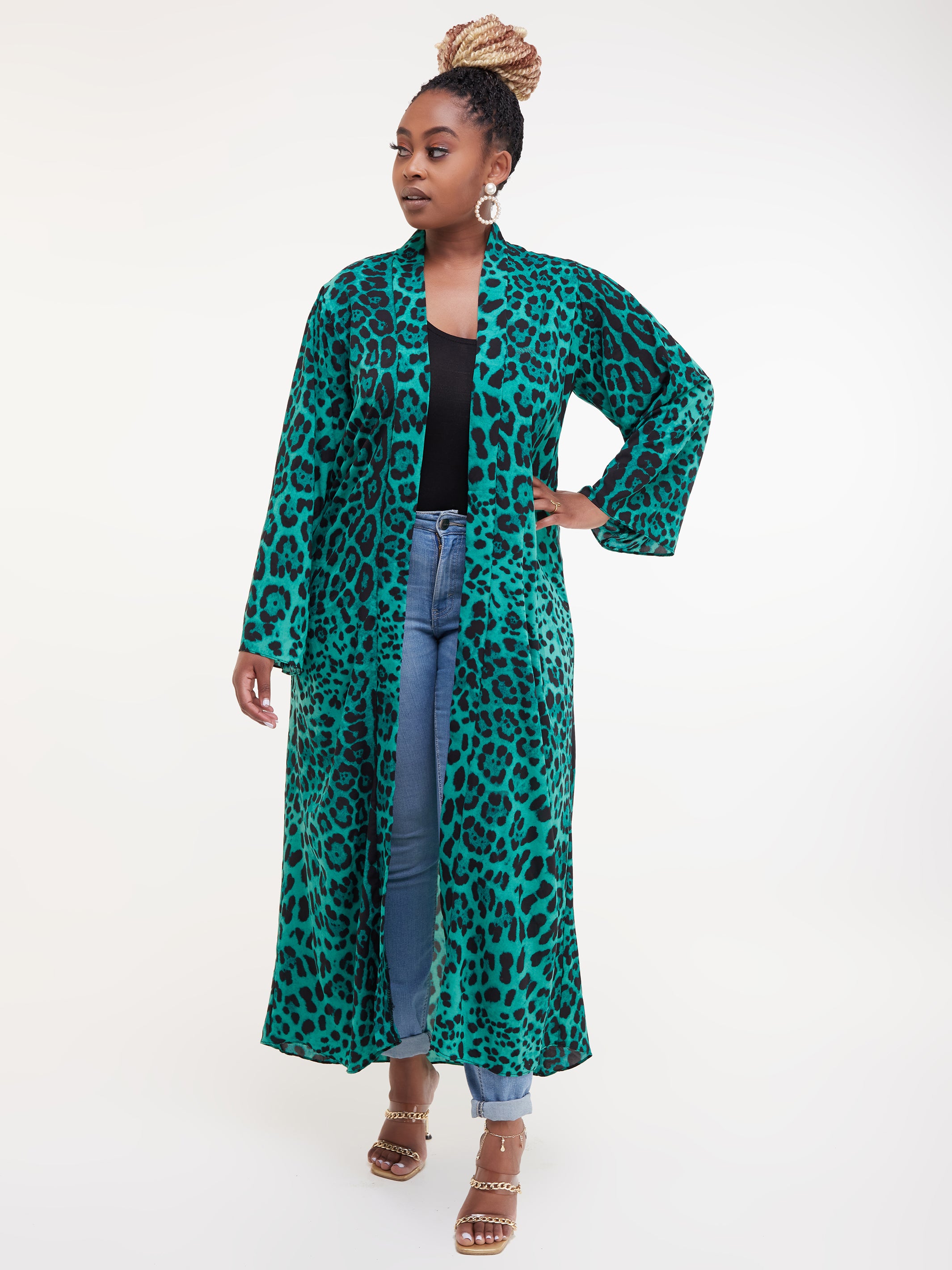 Safari Maisha Long Sleeved Kimono - Green Cheetah Print