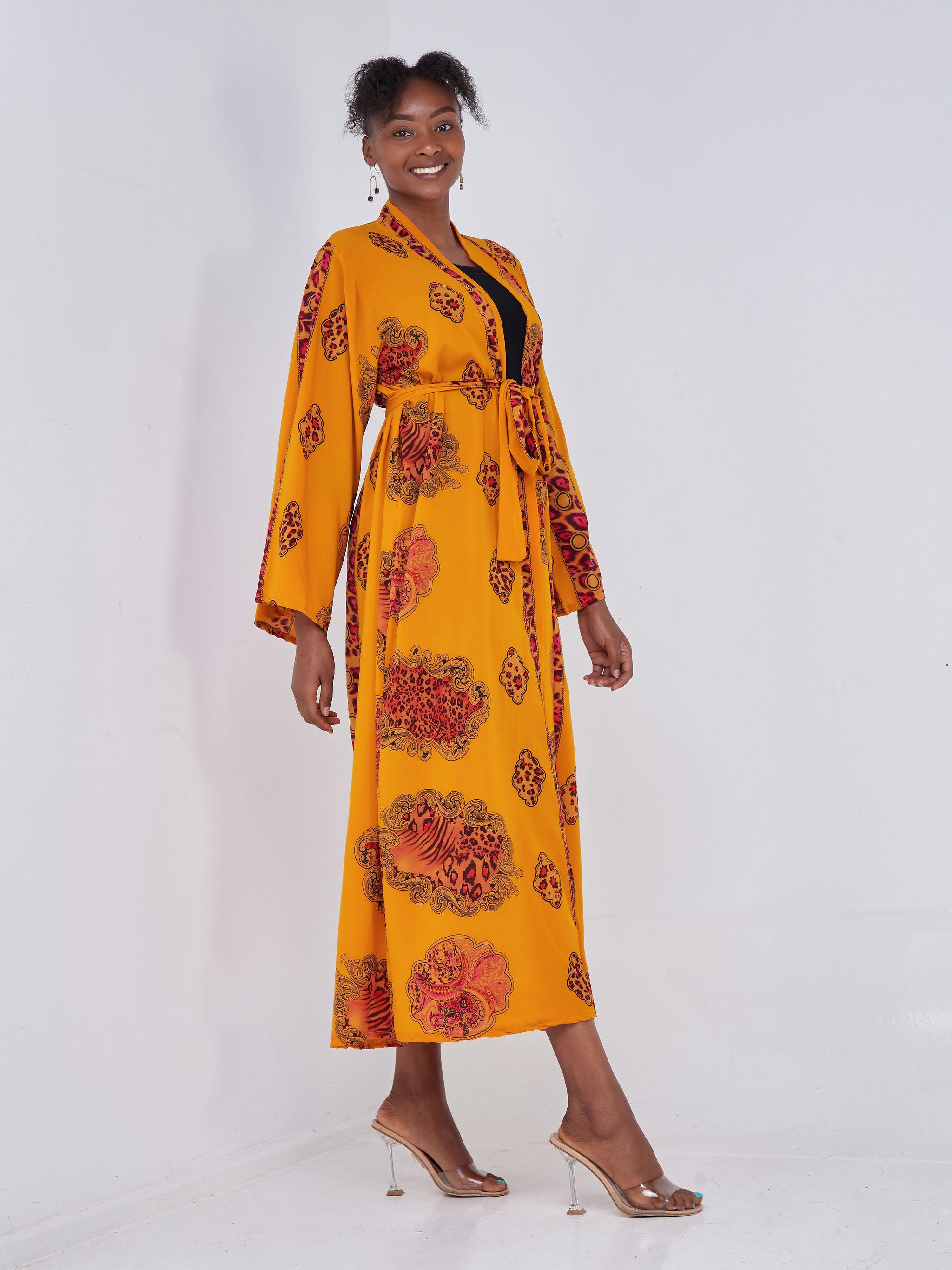 Safari Maisha Long Sleeved Kimono - Yellow Floral Print