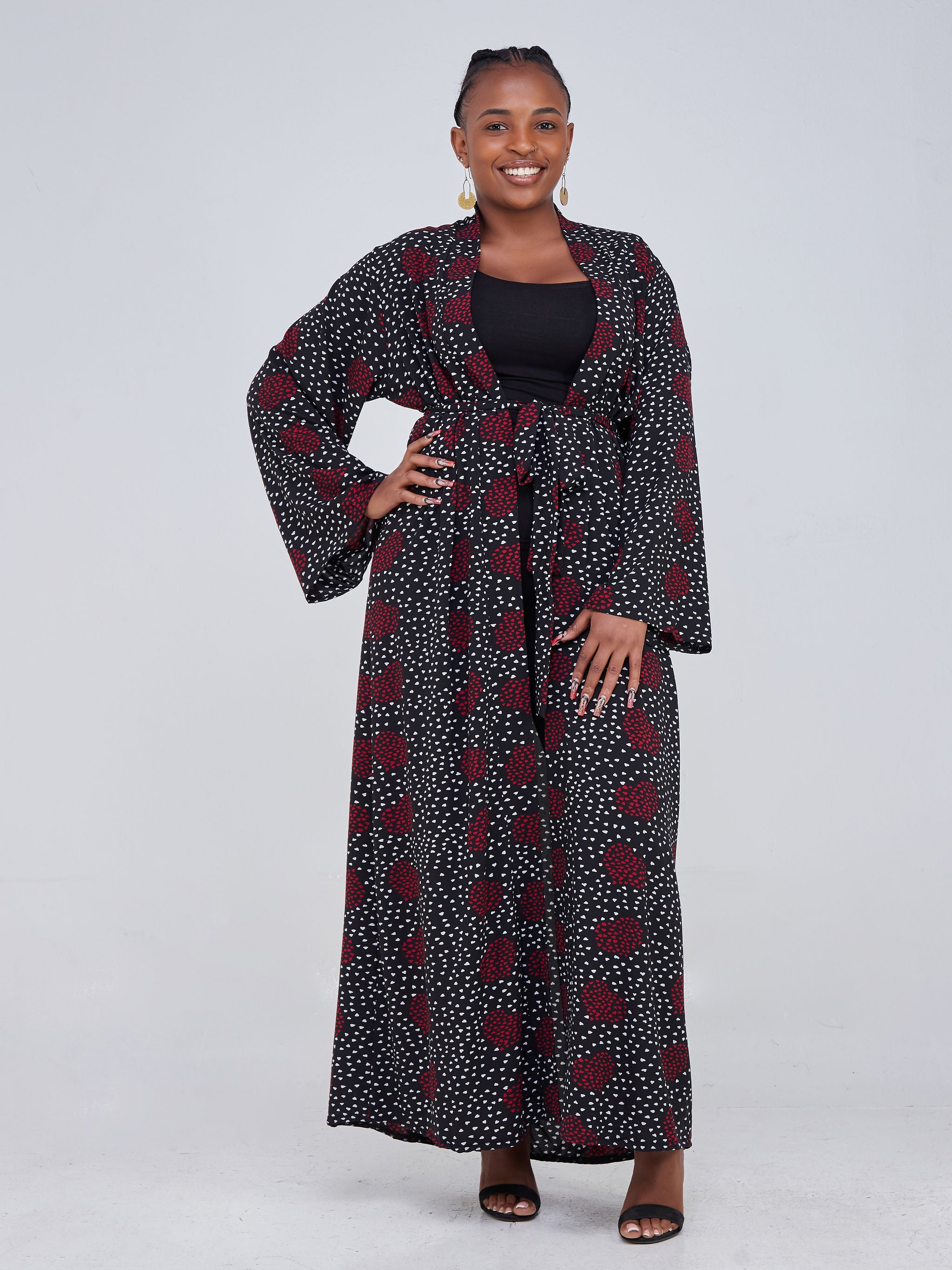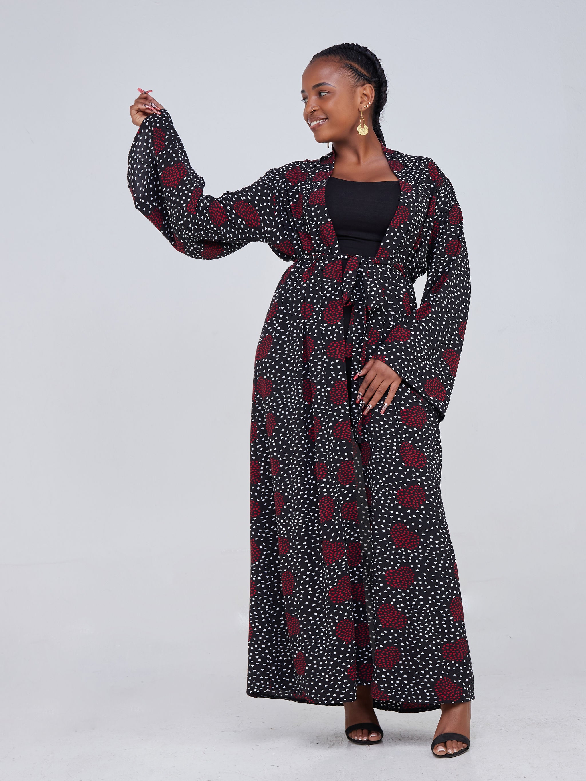 Safari Maisha Long Sleeved Kimono - Maroon Print