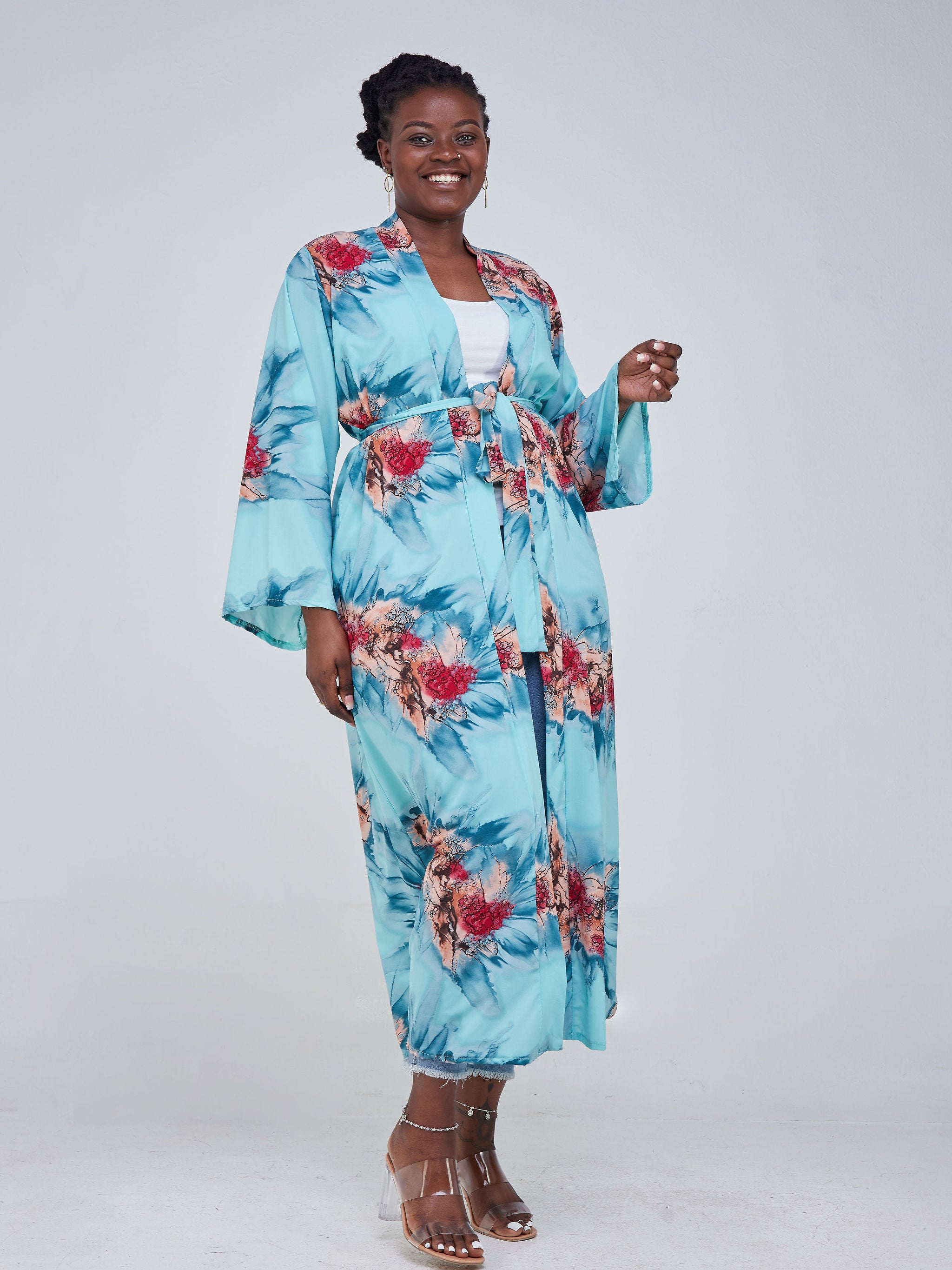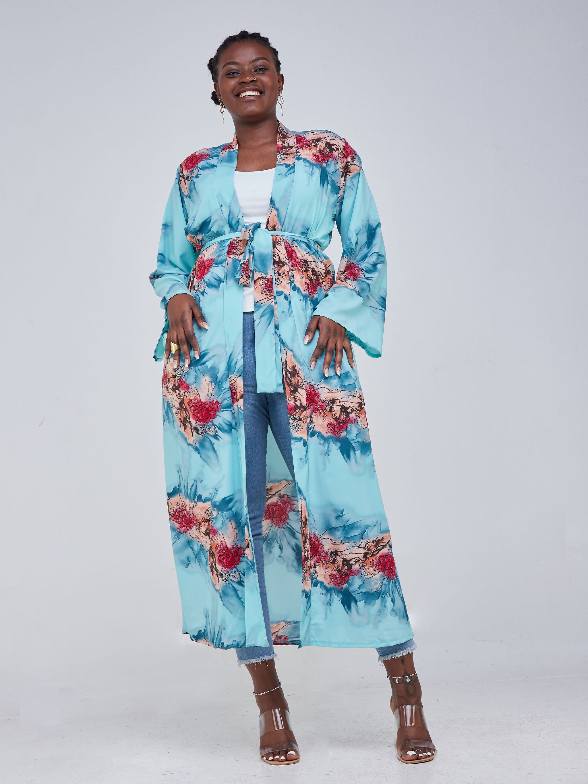 Safari Maisha Long Sleeved Kimono - Teal Print