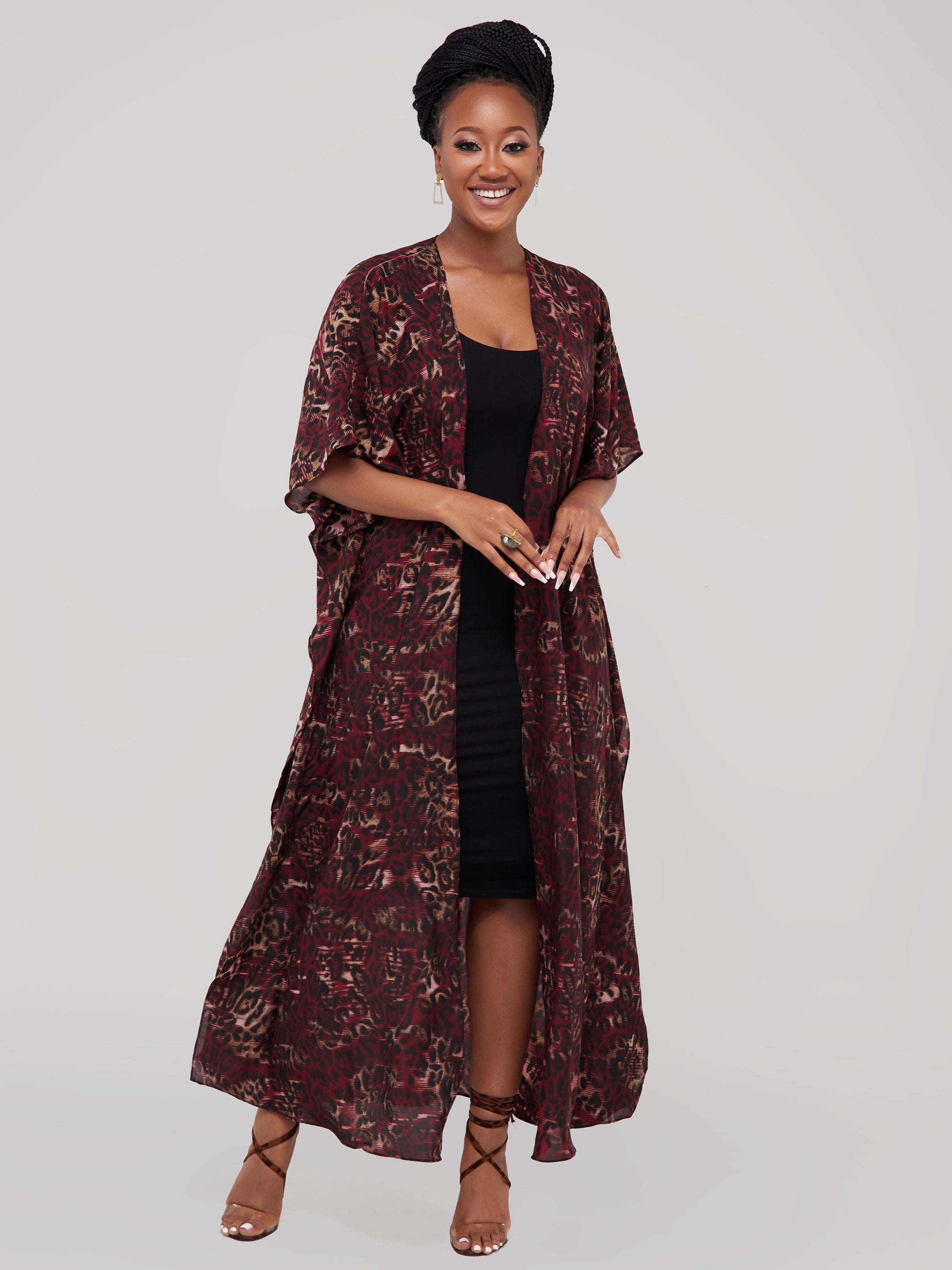 Safari Maisha Maxi Kimono Cover-Up - Red Abstract Print