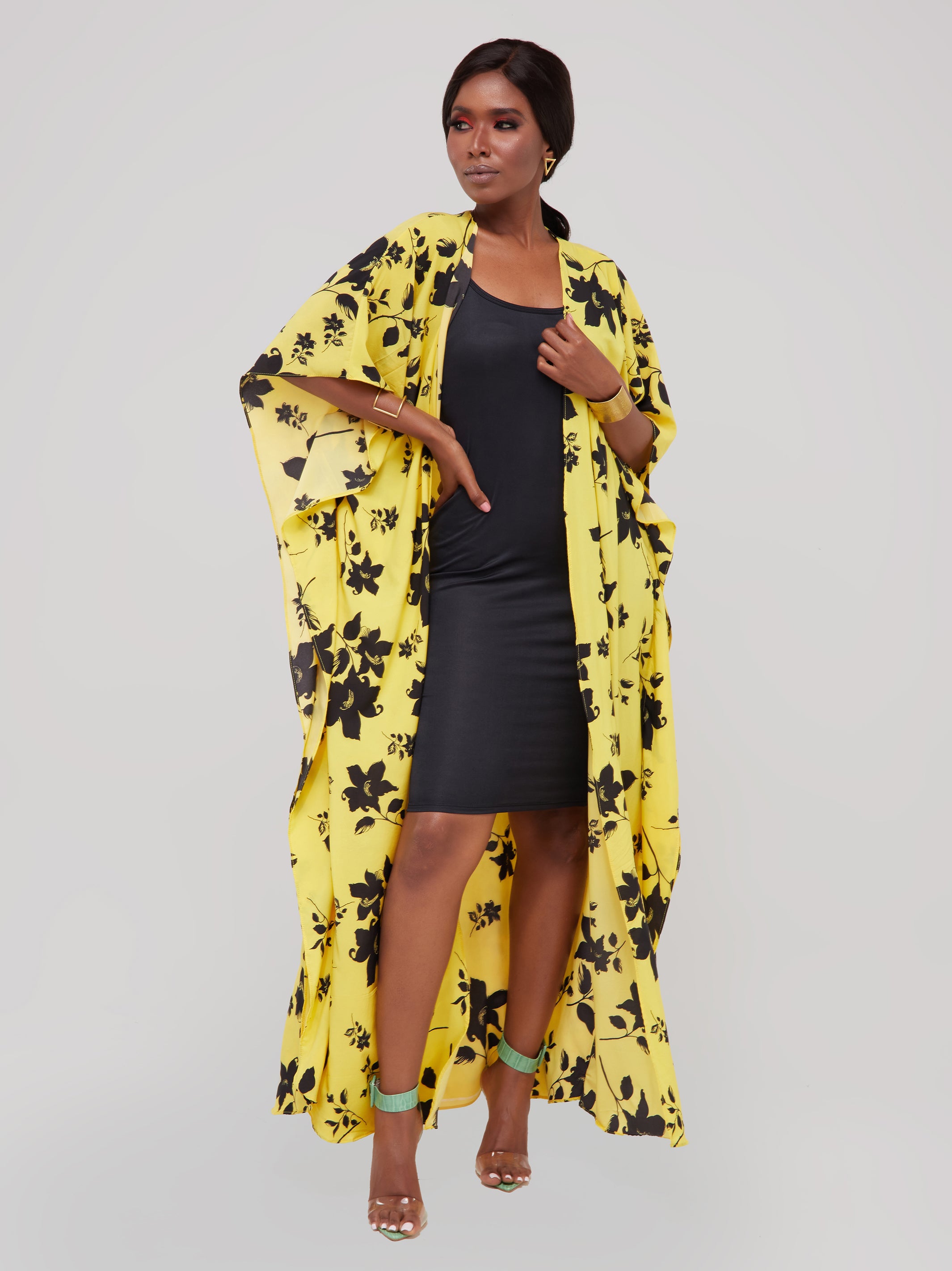Safari Maisha Maxi Kimono Cover-Up - Yellow / Black Print