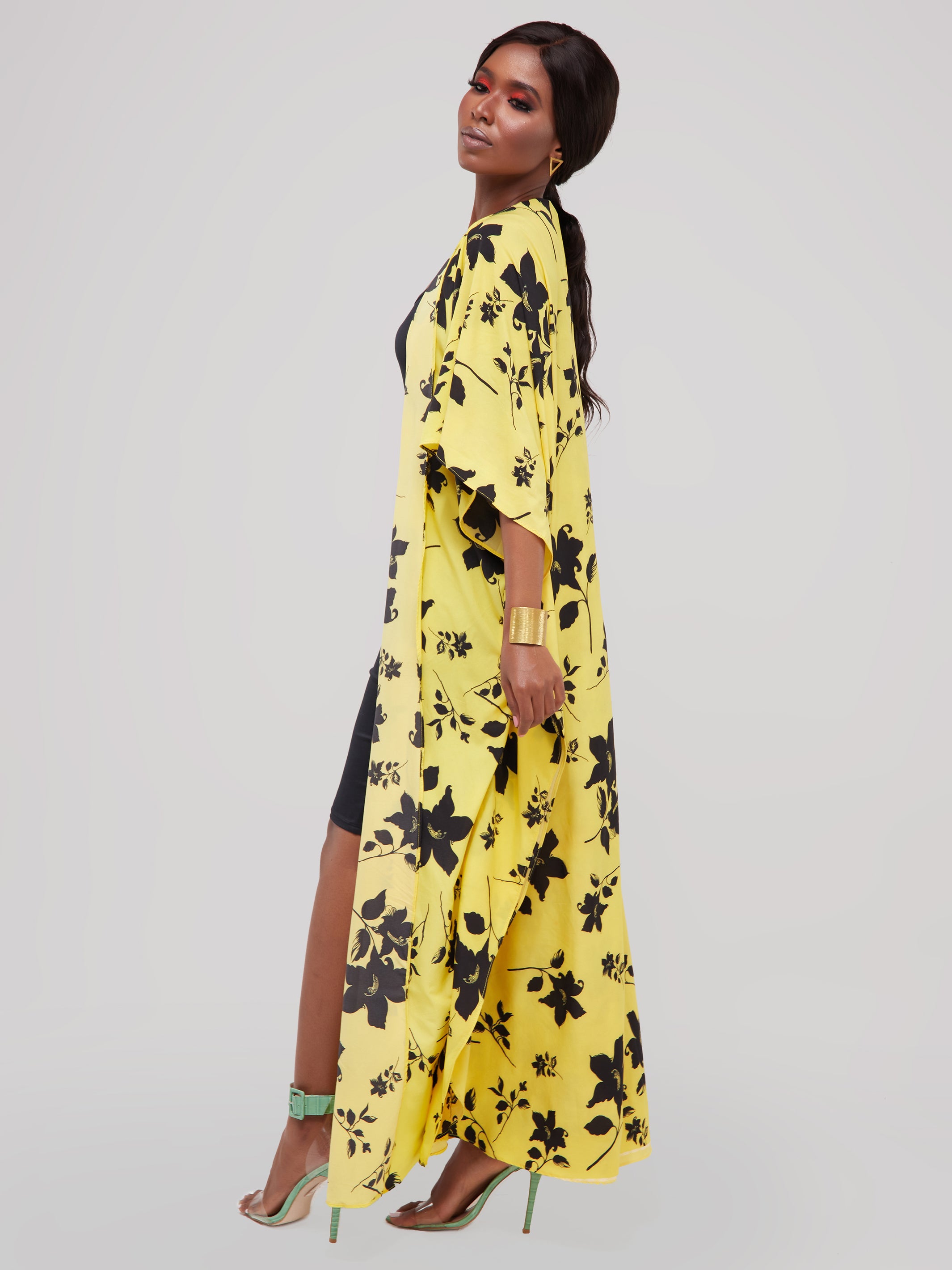 Safari Maisha Maxi Kimono Cover-Up - Yellow Floral Print