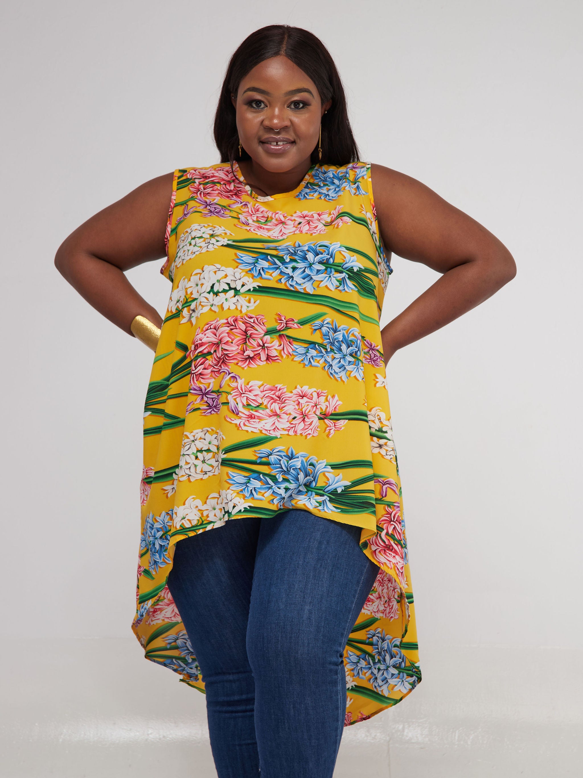 Safari Maisha Sleeveless Hi Low Top - Mustard Floral Print