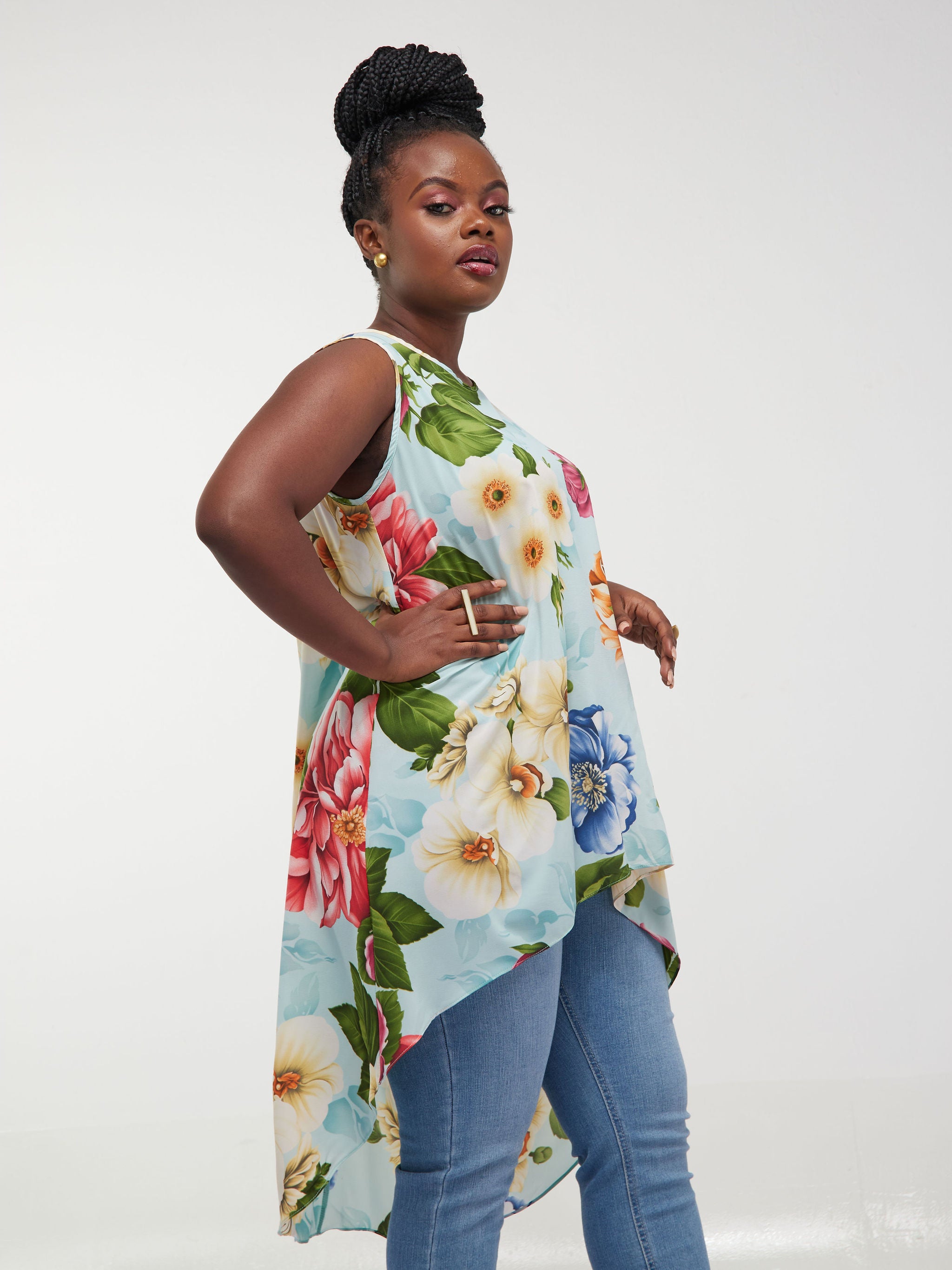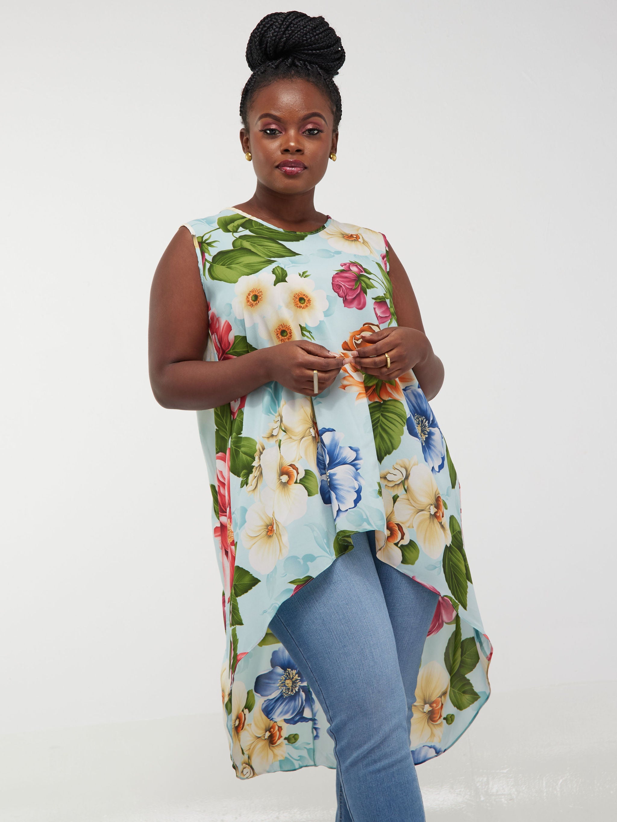 Safari Maisha Sleeveless Hi Low Top - Pink Floral Print