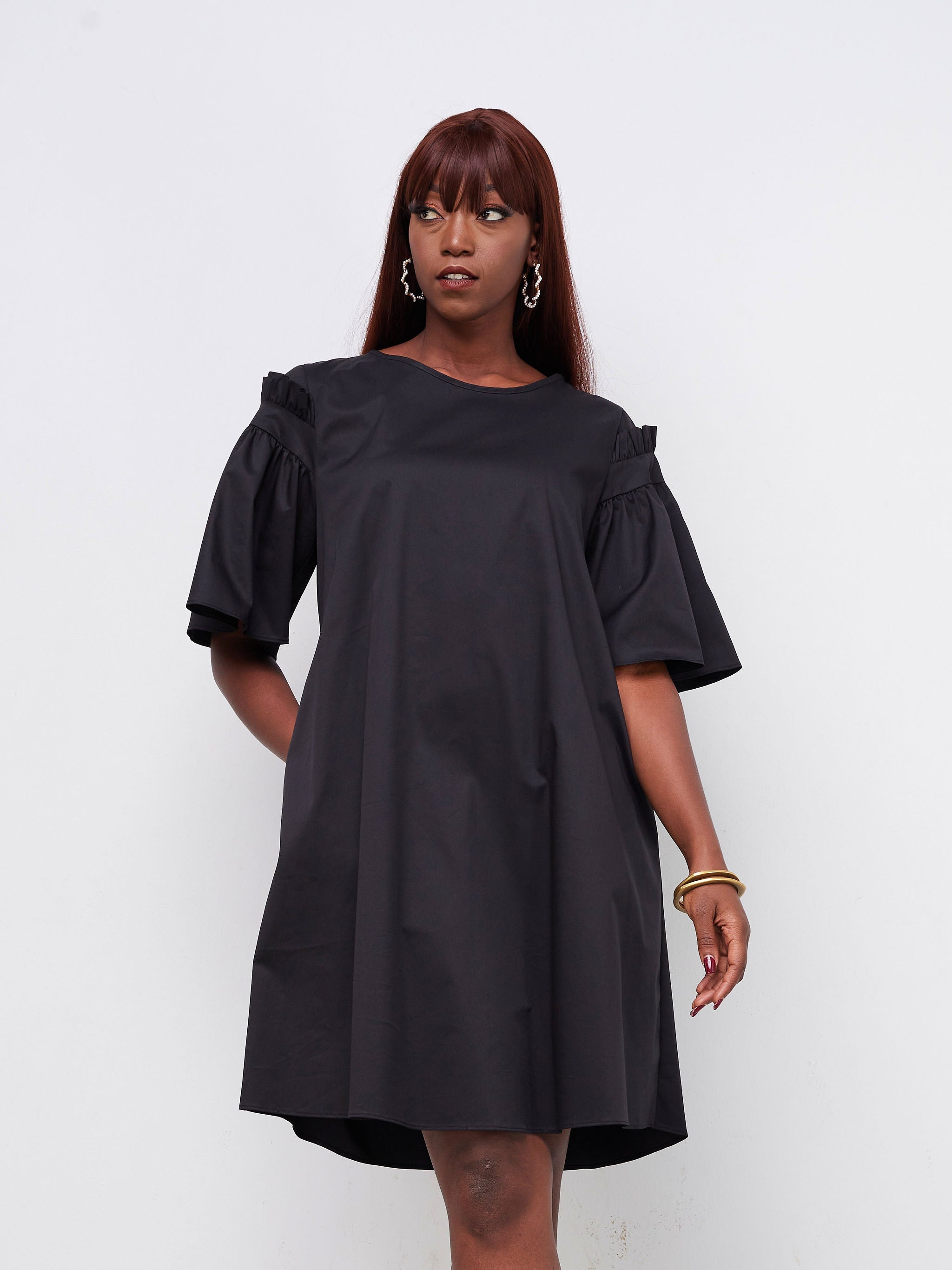 Safari Mali Gathered Flounce Sleeve Tent Dress - Black
