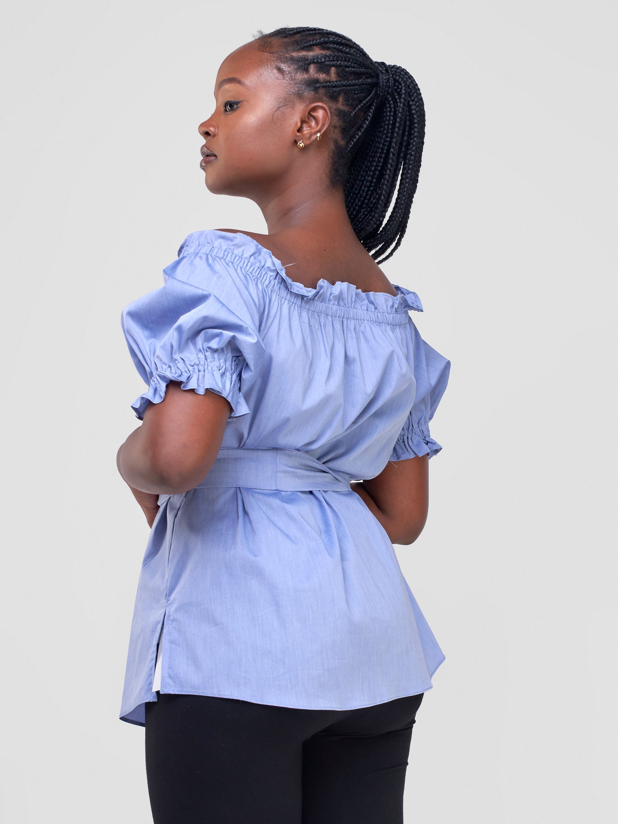 Safari Mali Off Shoulder Ruffle Top - Blue