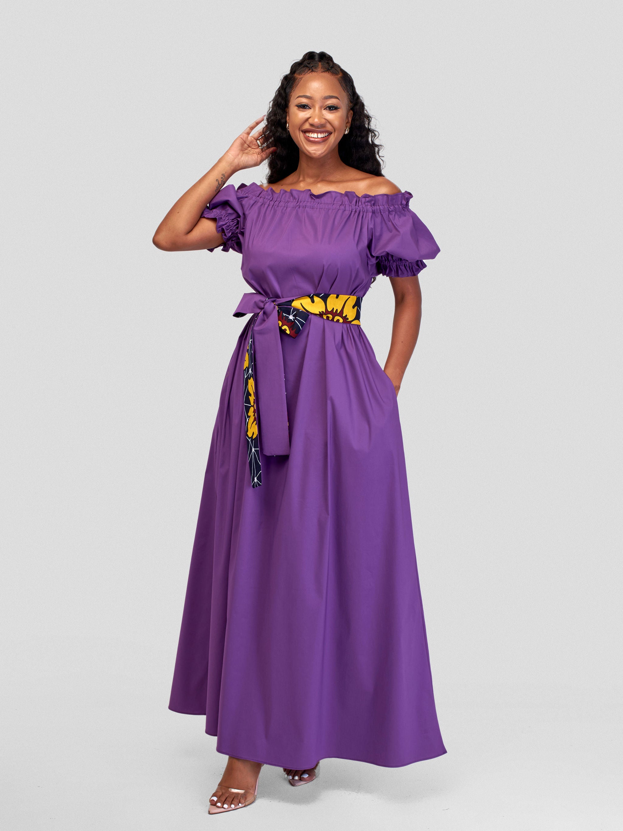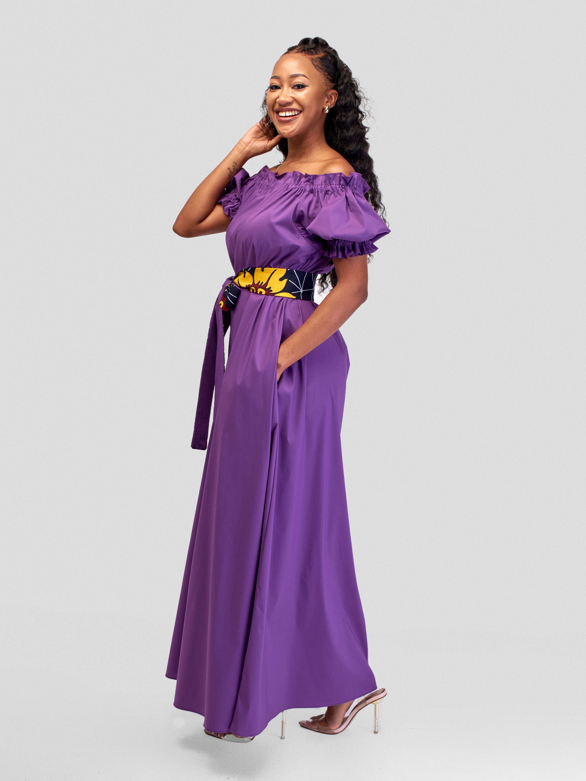 Safari Mali Off Shoulder Ruffle Maxi Dress - Purple