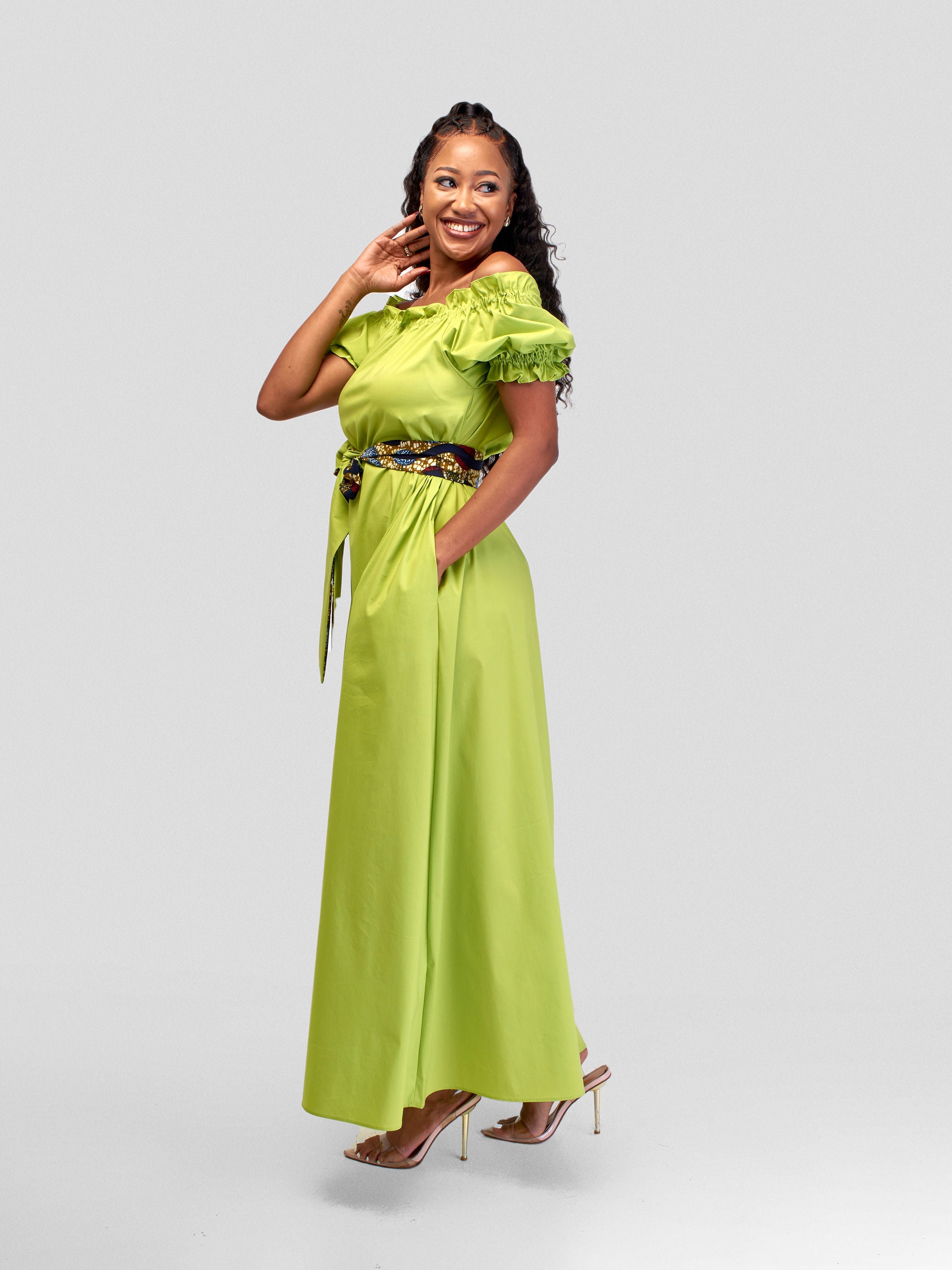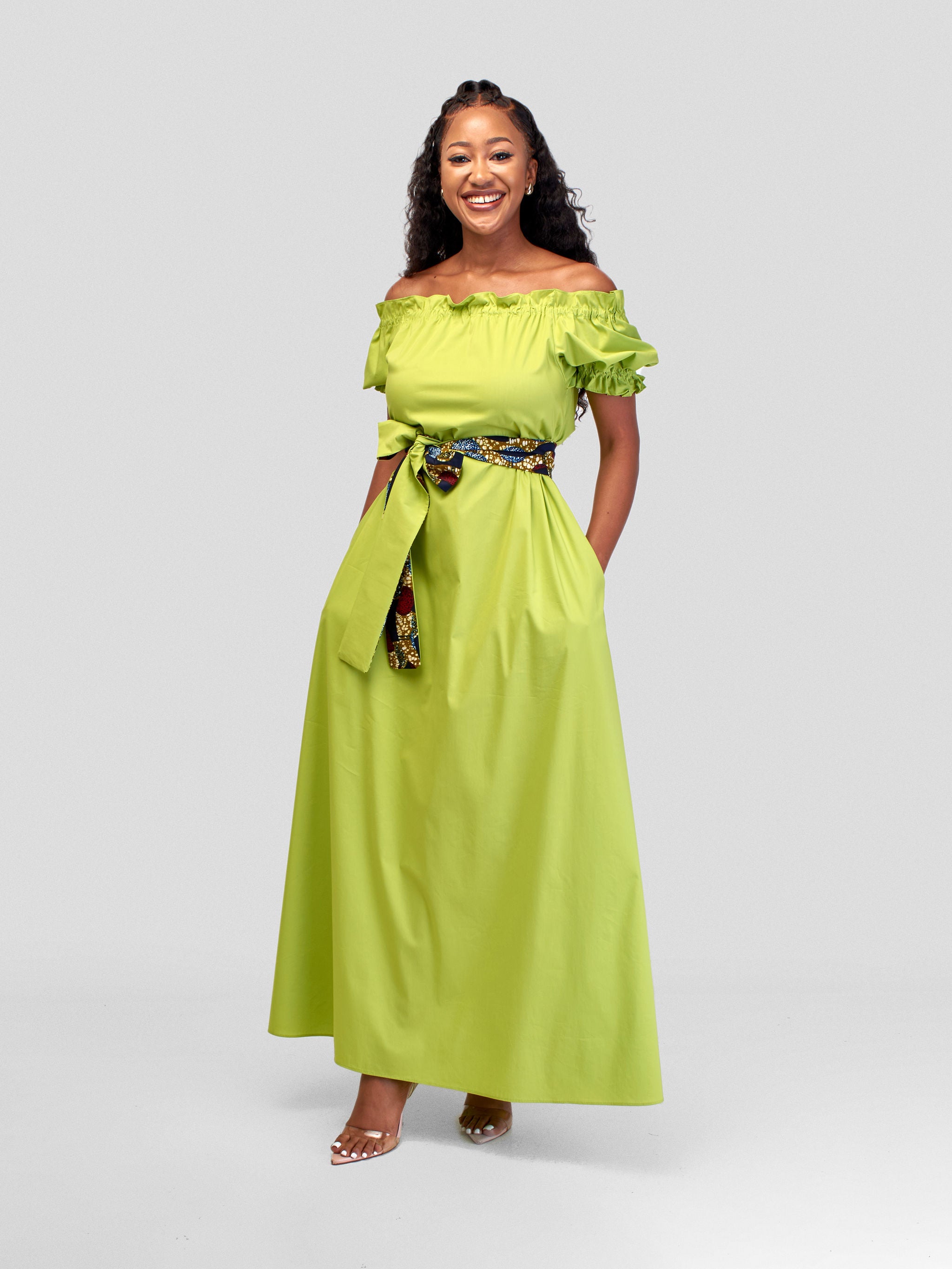 Safari Mali Off Shoulder Ruffle Maxi Dress - Green
