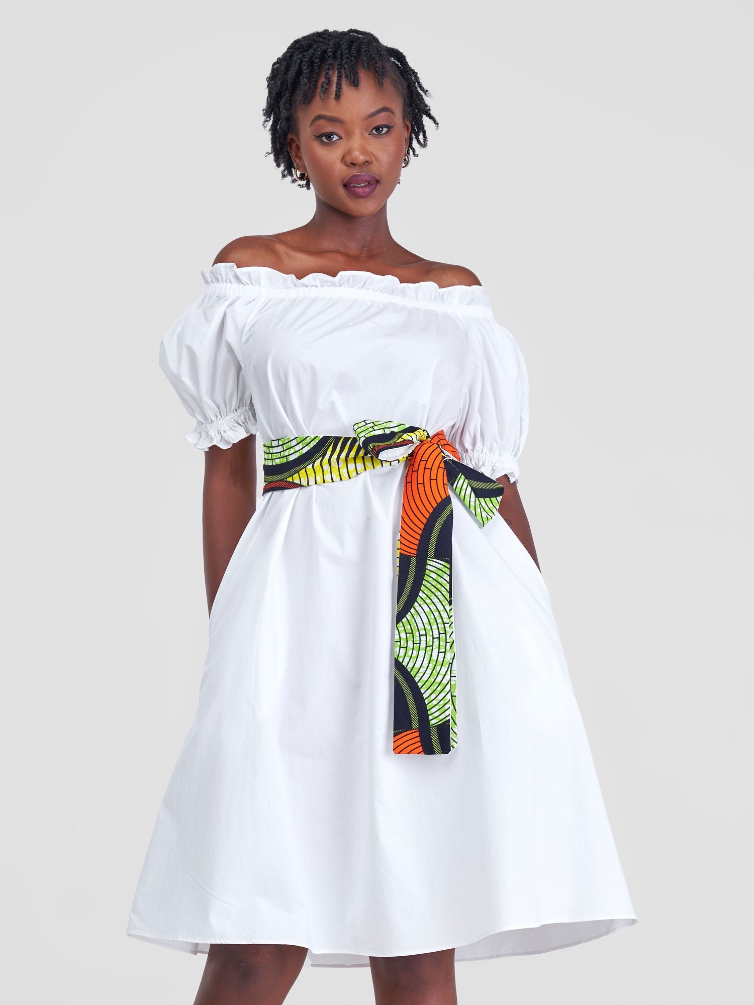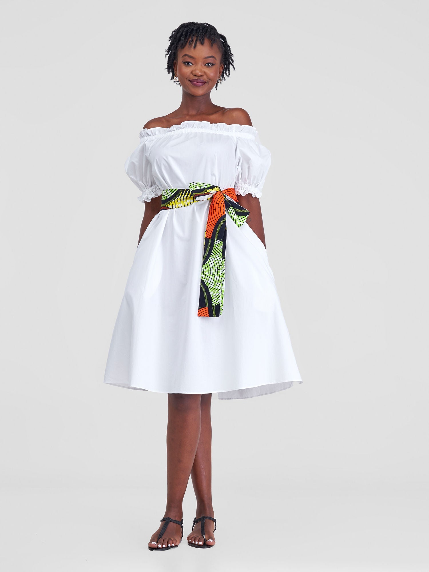 Safari Mali Off - Shoulder Ruffle Knee Length Dress - White