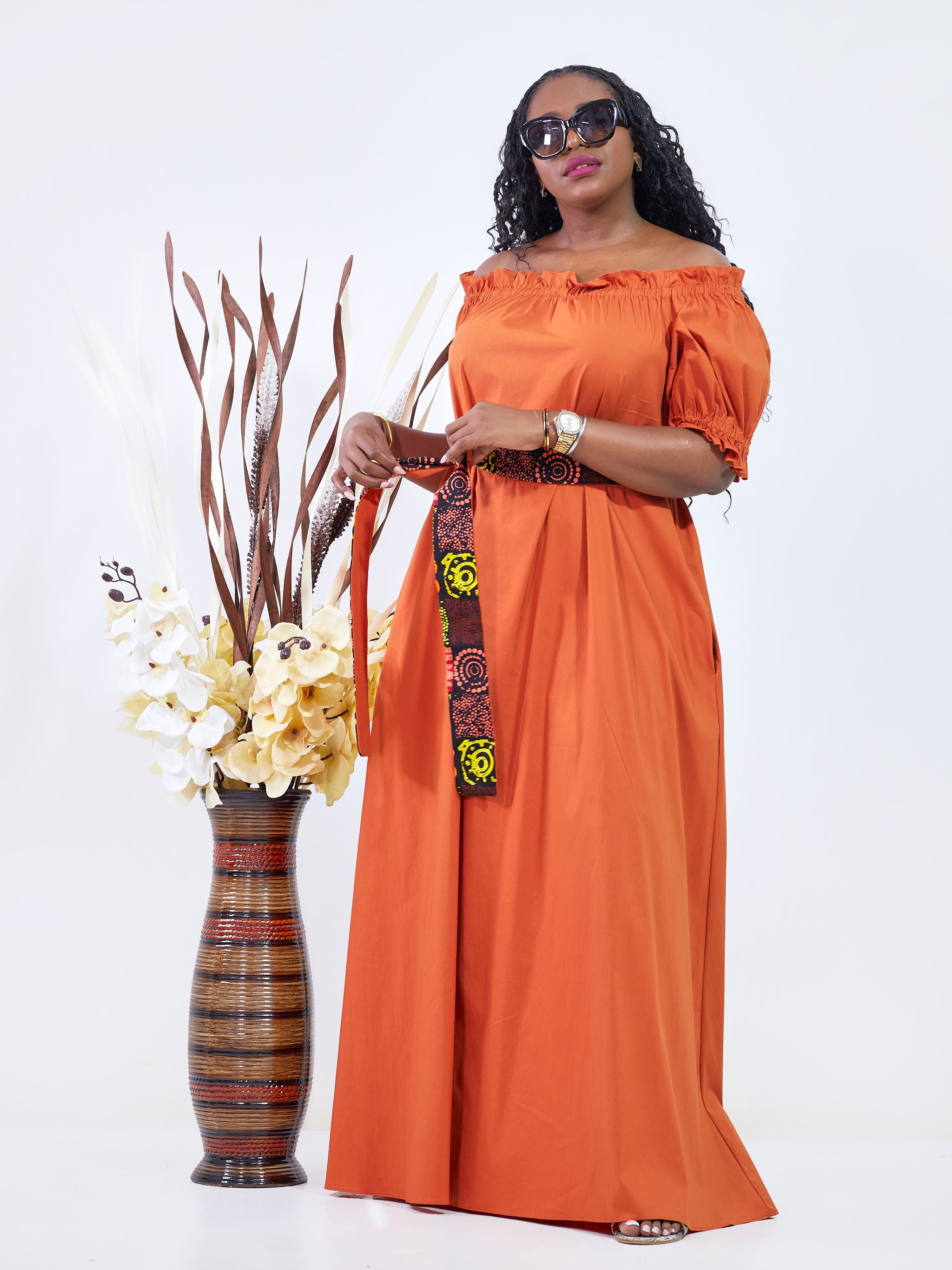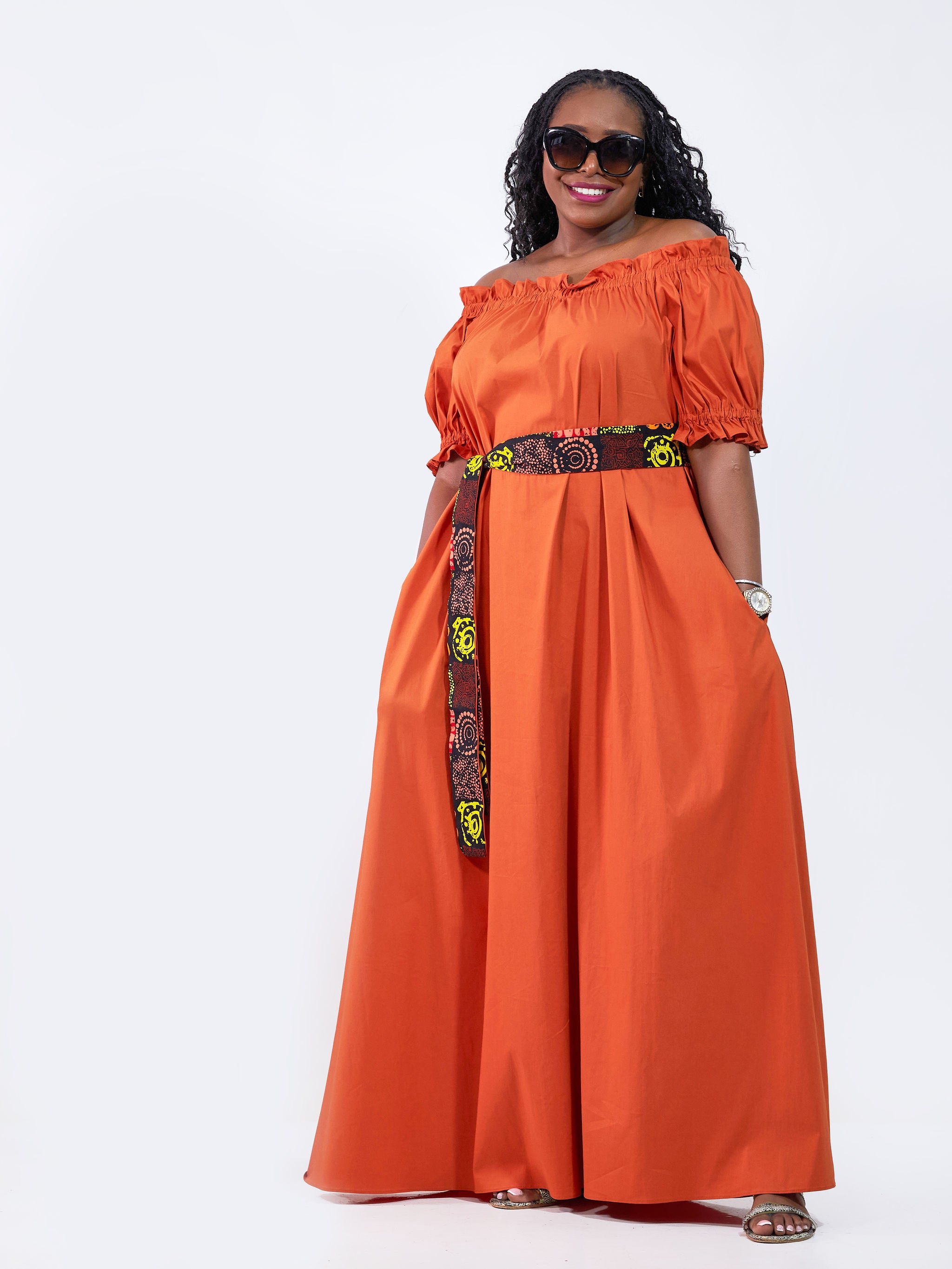 Safari Mali Off Shoulder Ruffle Maxi Dress - Rust