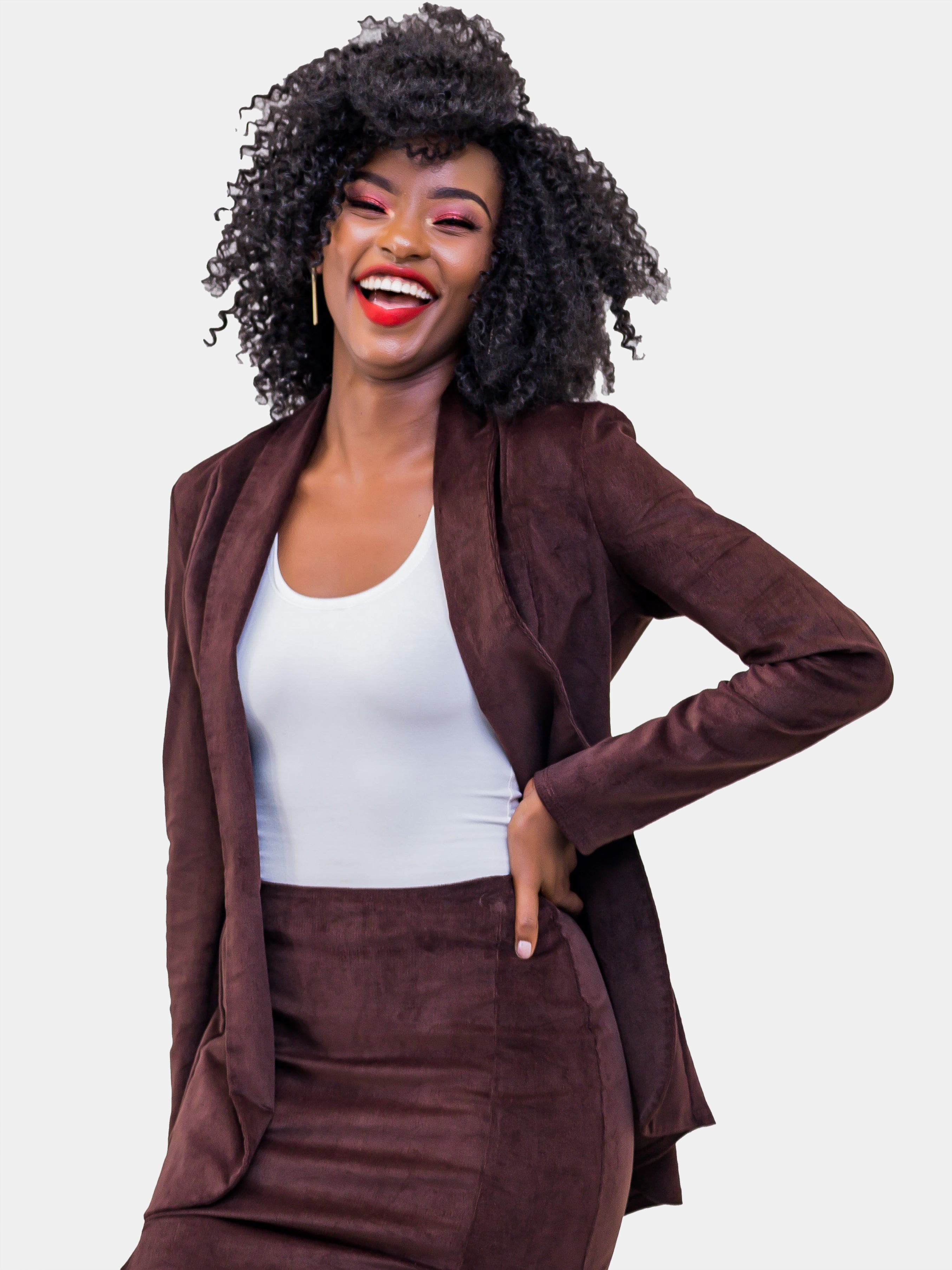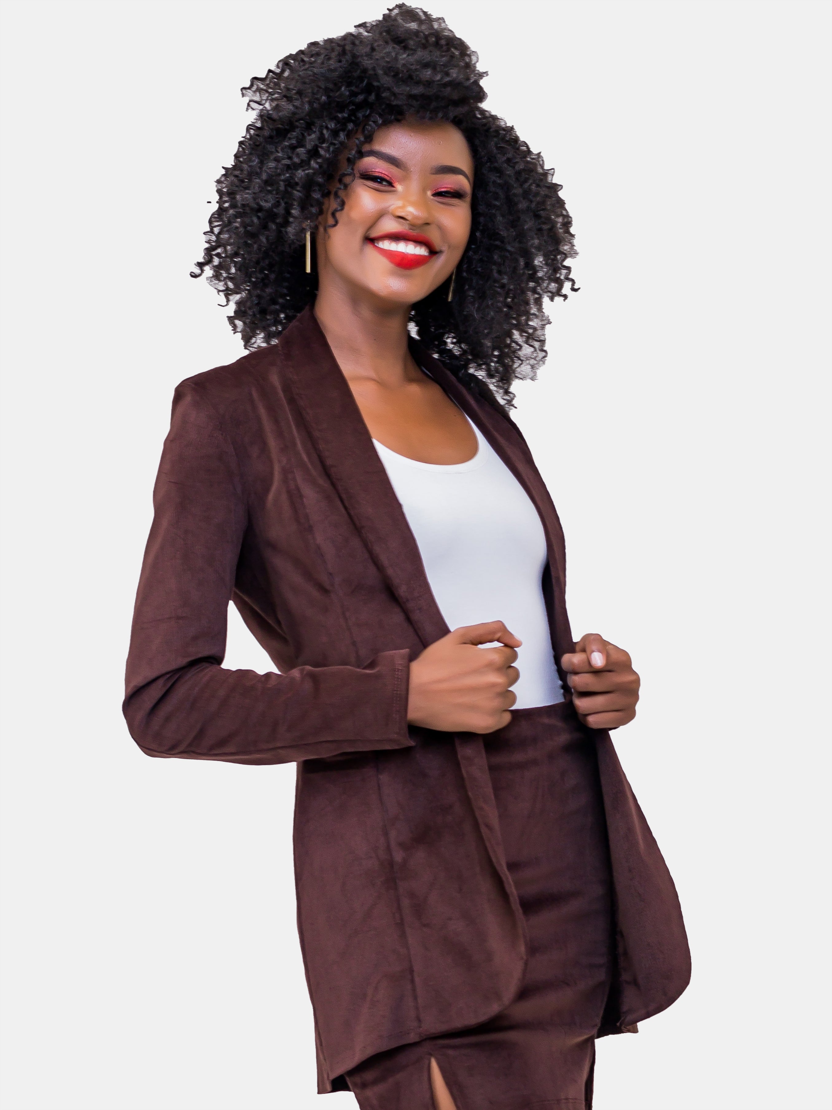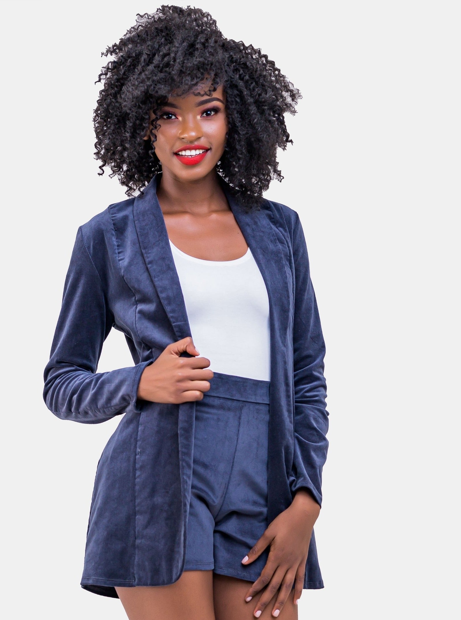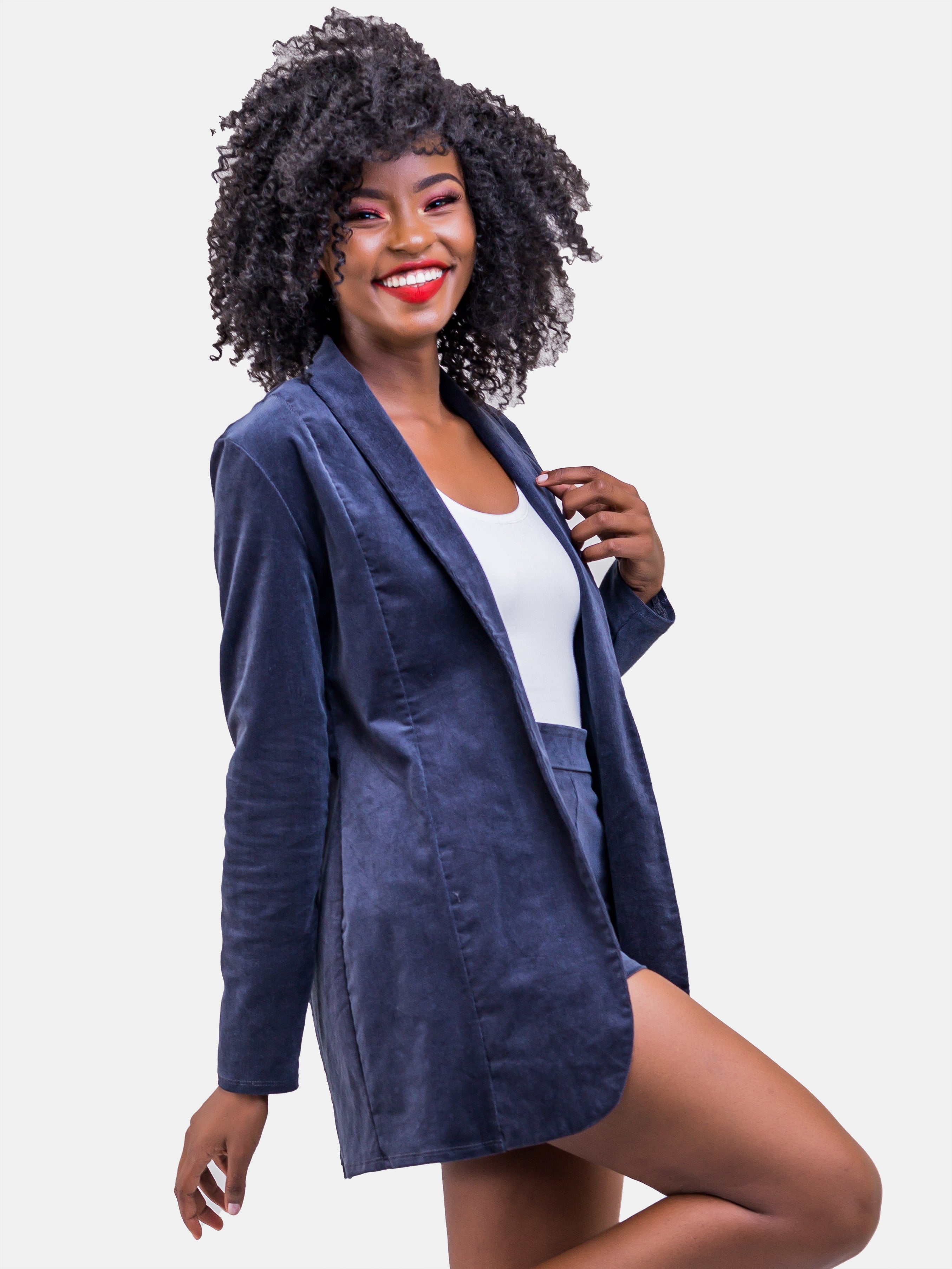 Zoya Corduroy Front Slit Skirt - Navy Blue