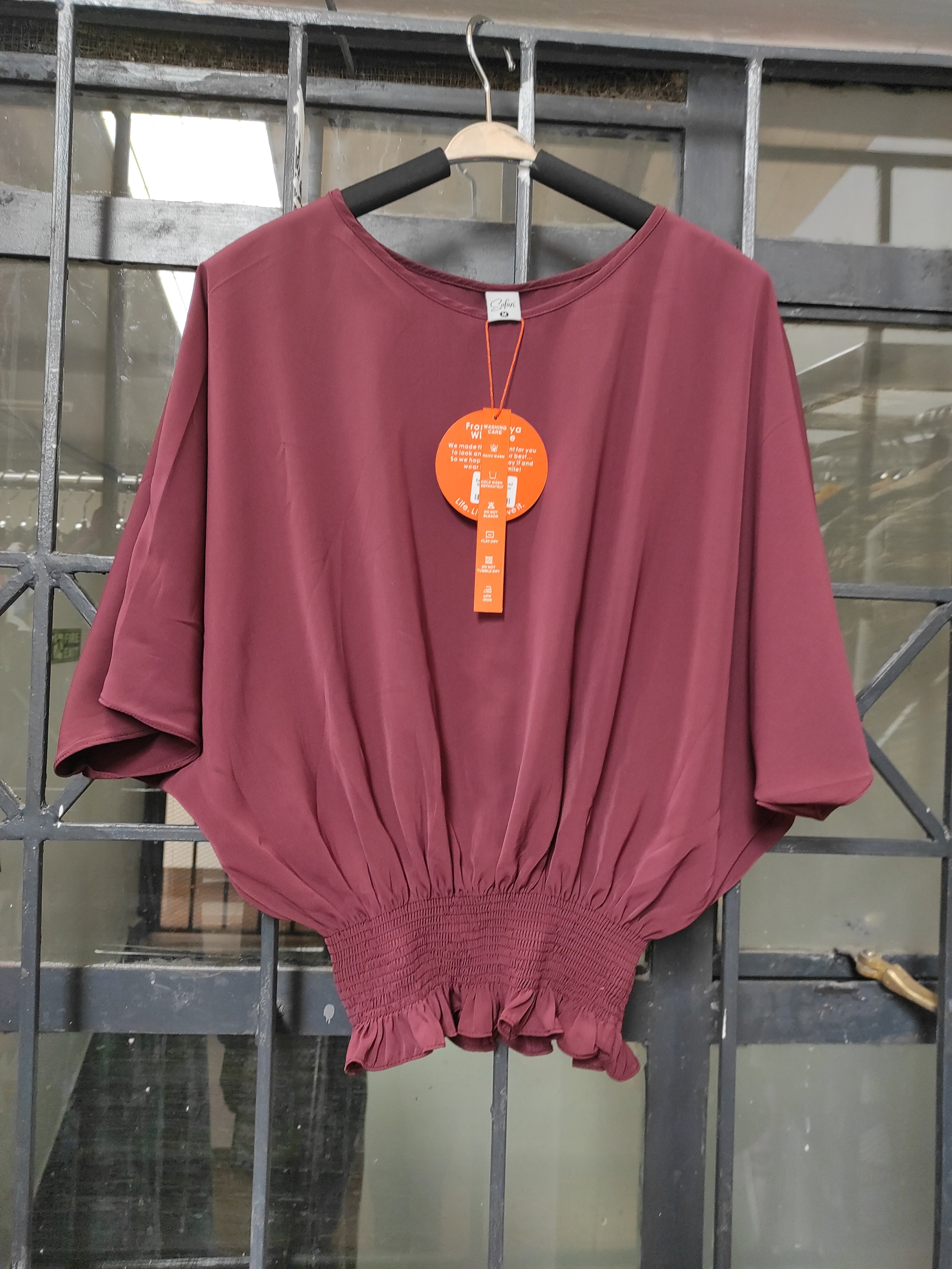 Safari Naima Shirred Waist Top - Maroon