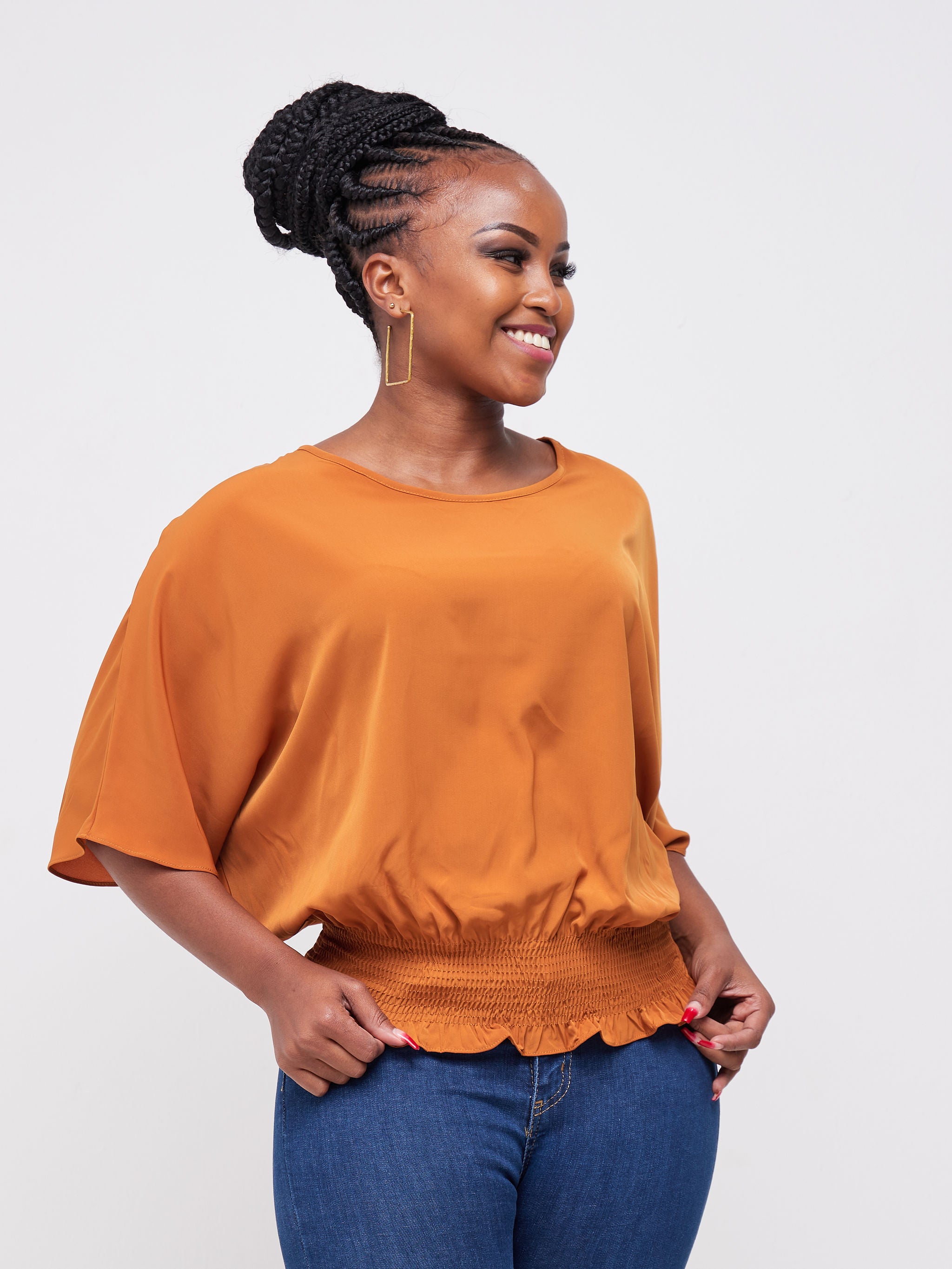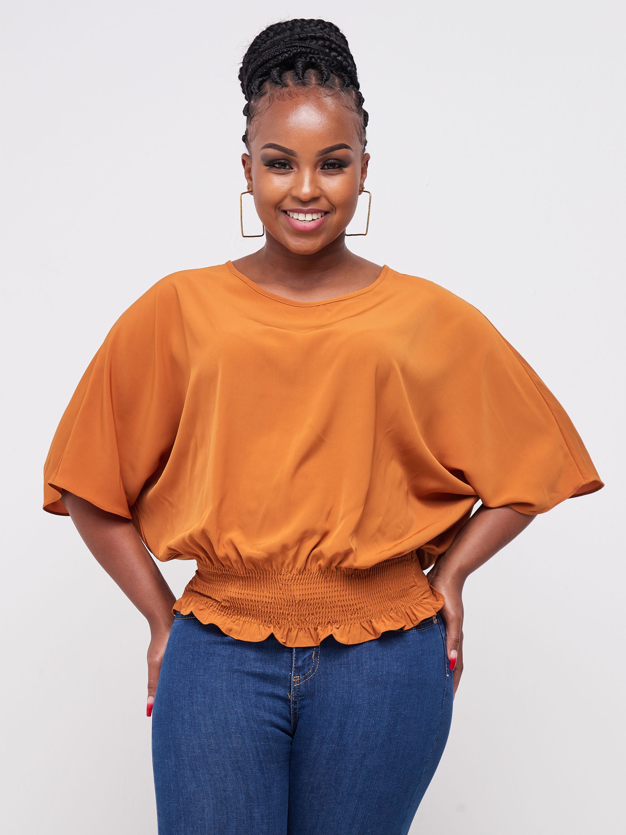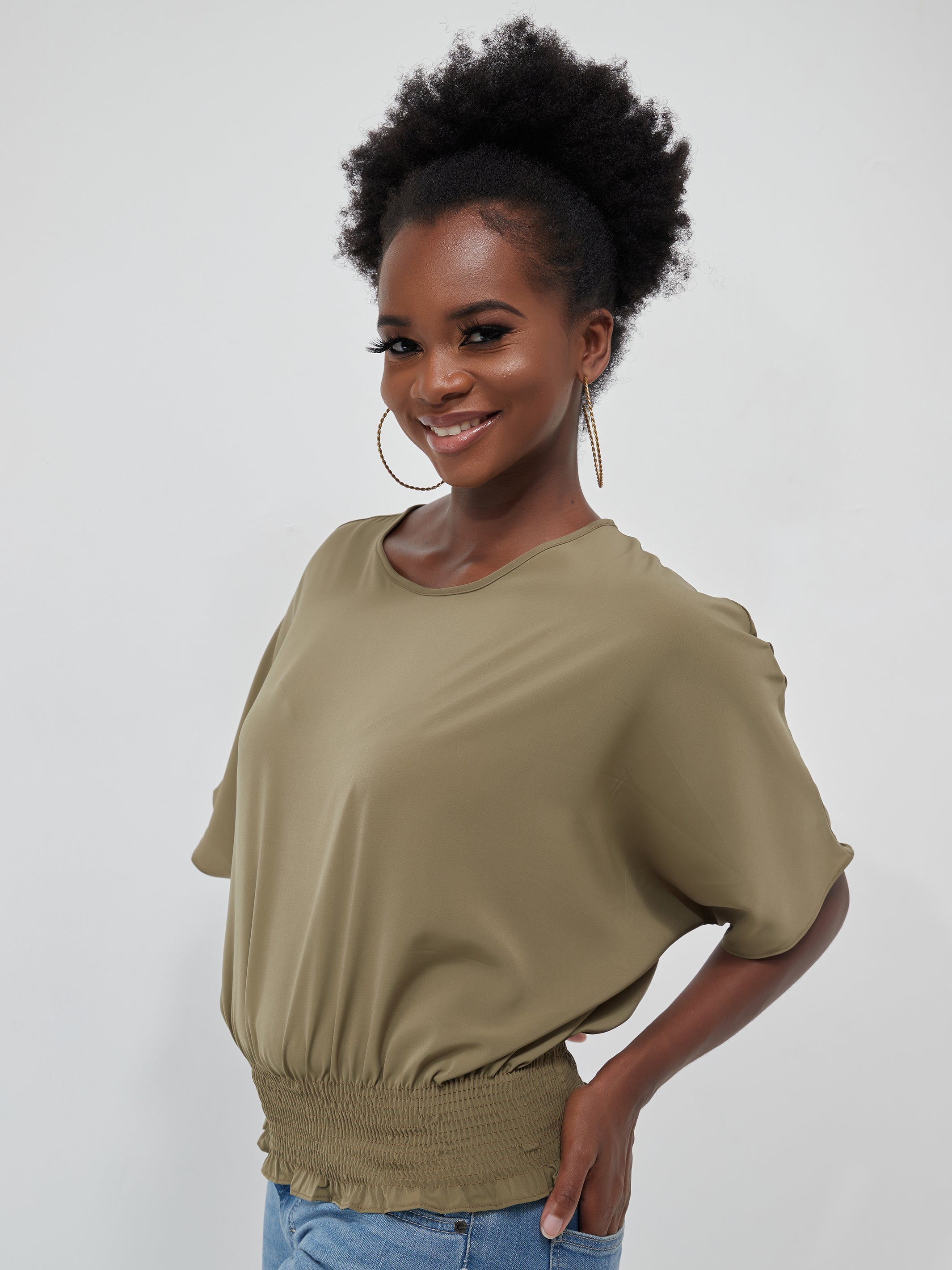 Safari Naima Shirred Waist Top - Brown