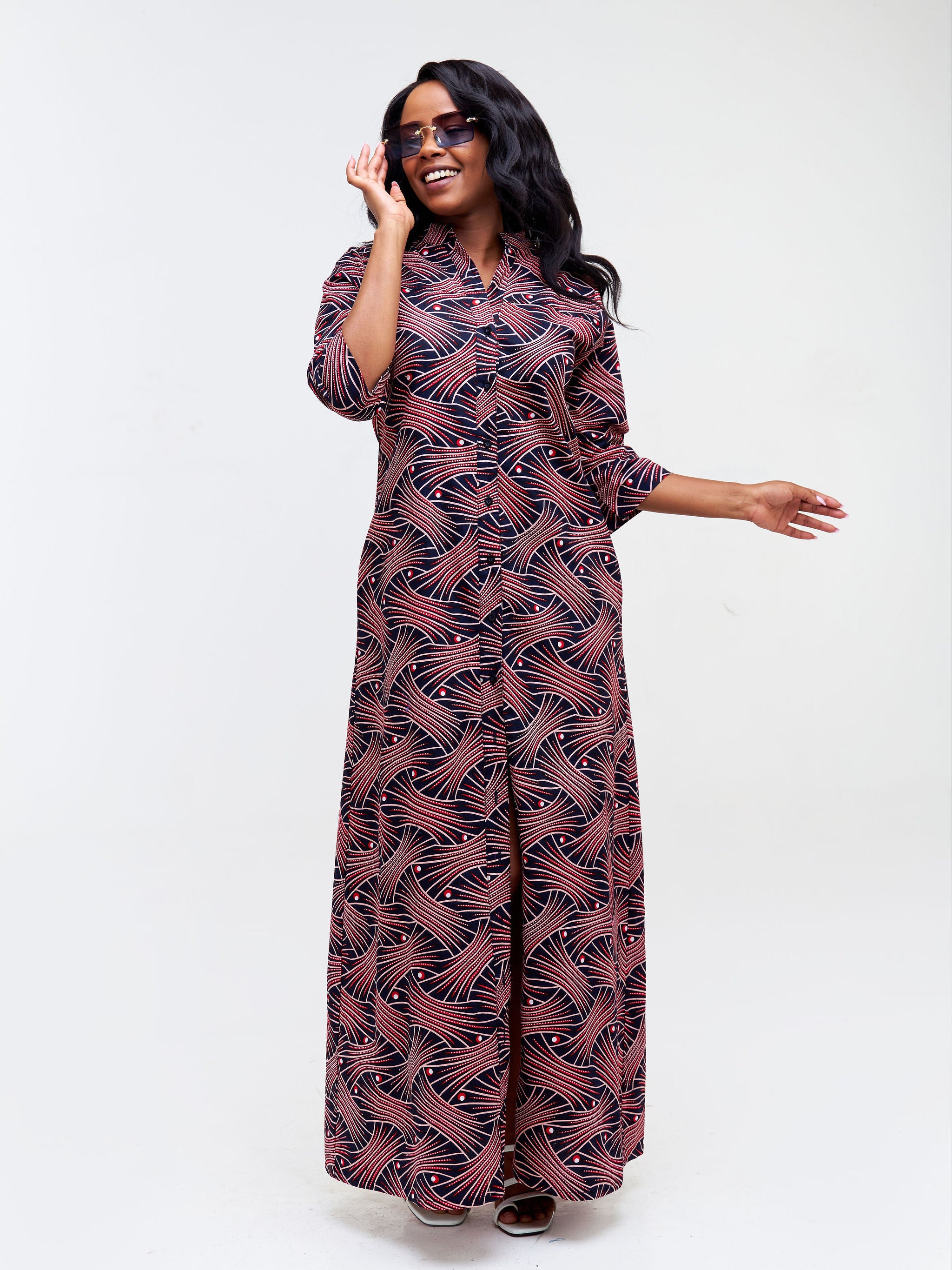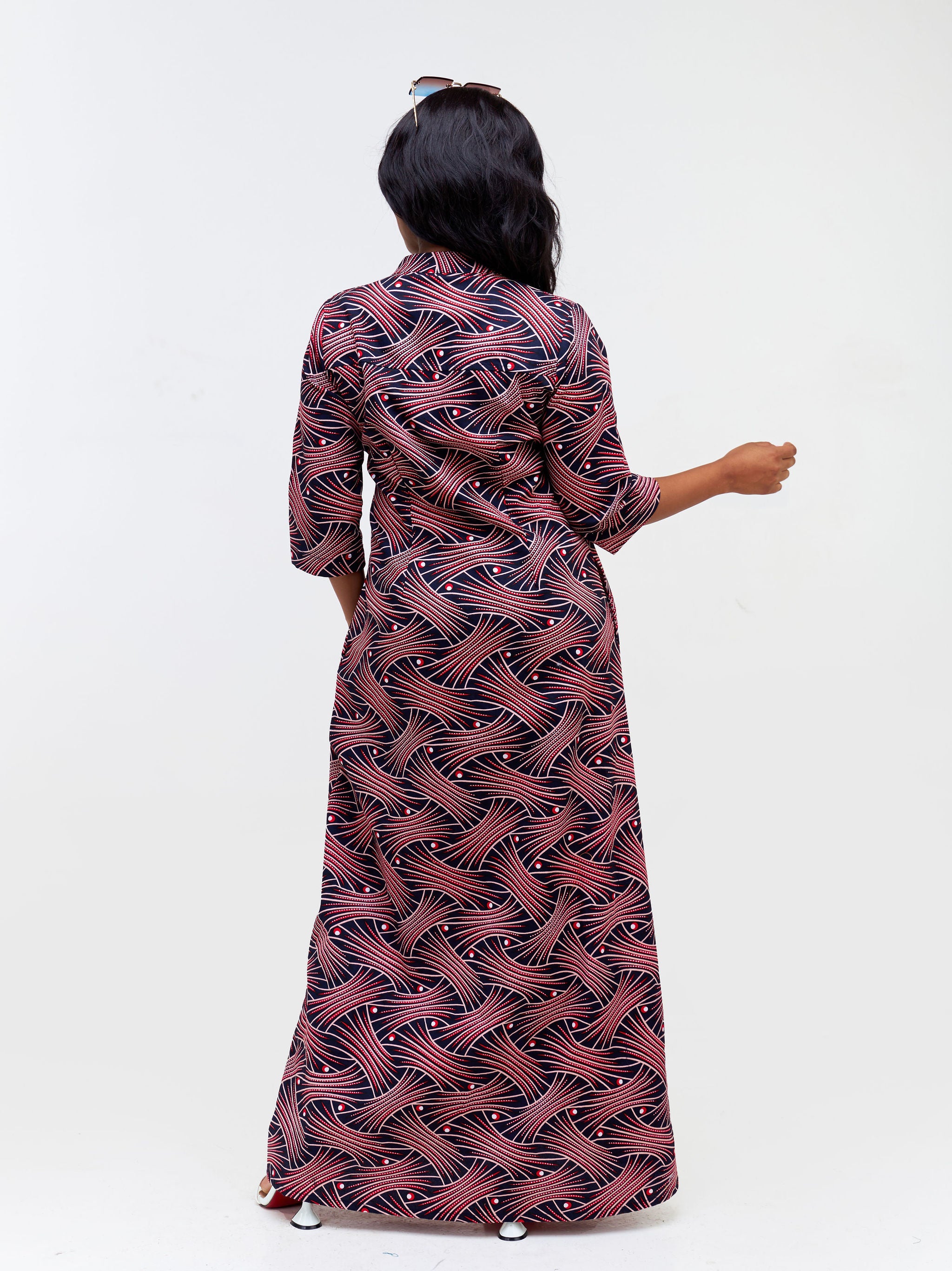 Safari Nimali 3/4 Sleeve Maxi Dress - Red / Pink Ankara Print