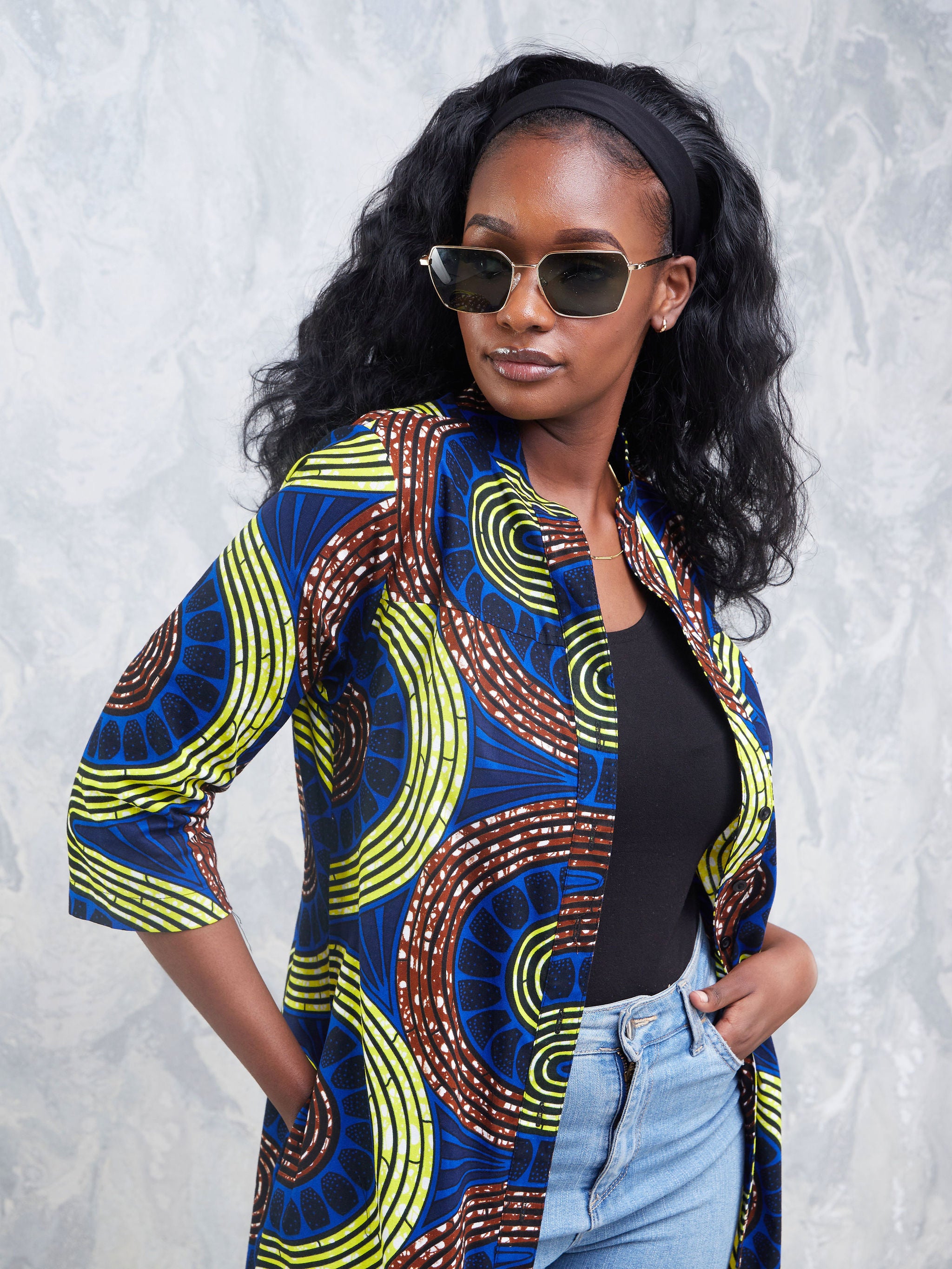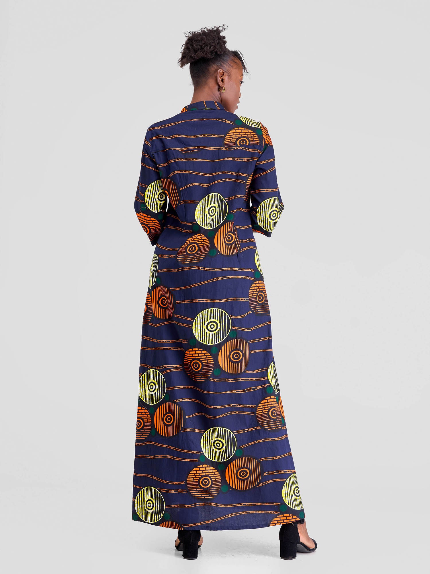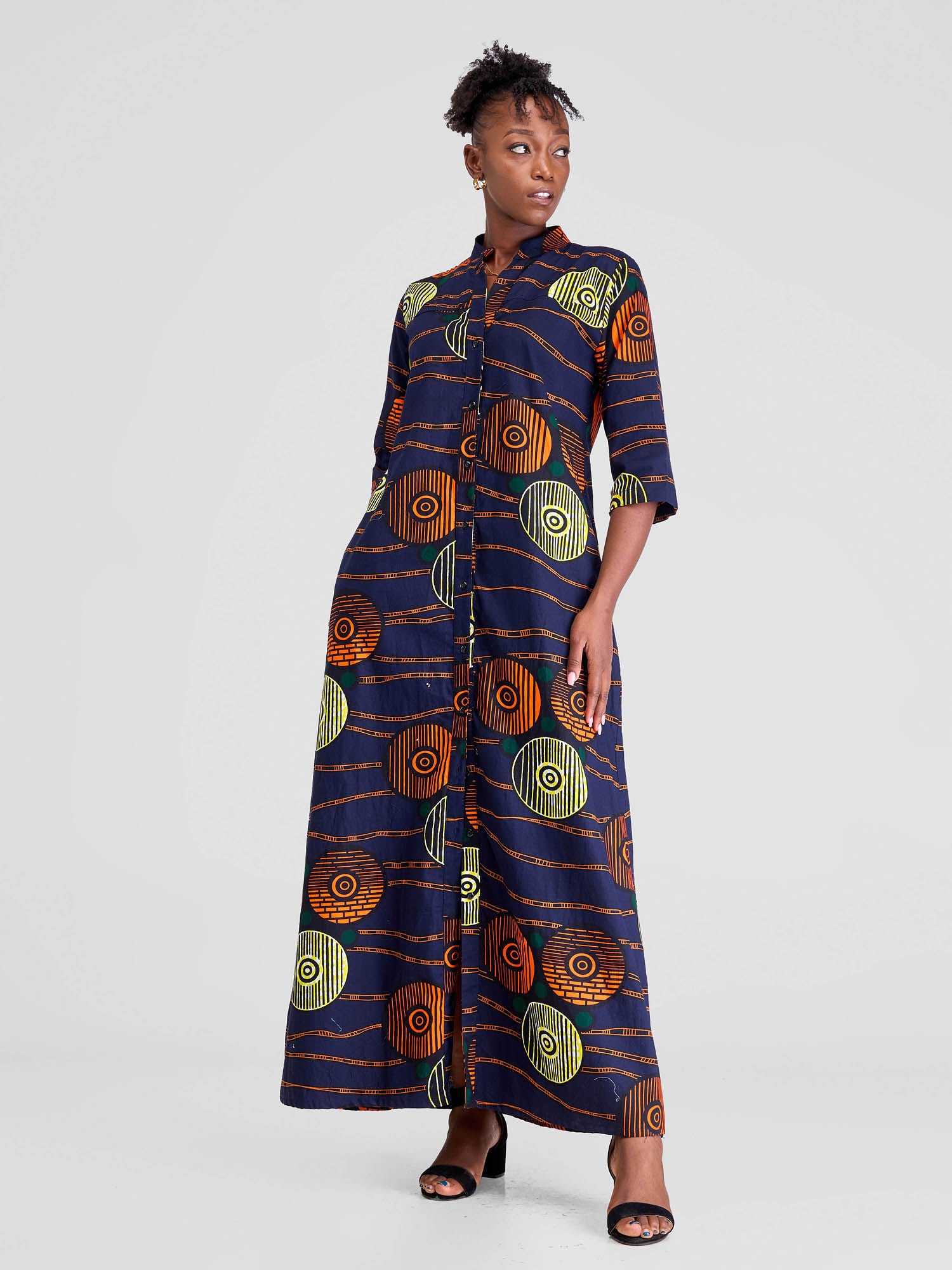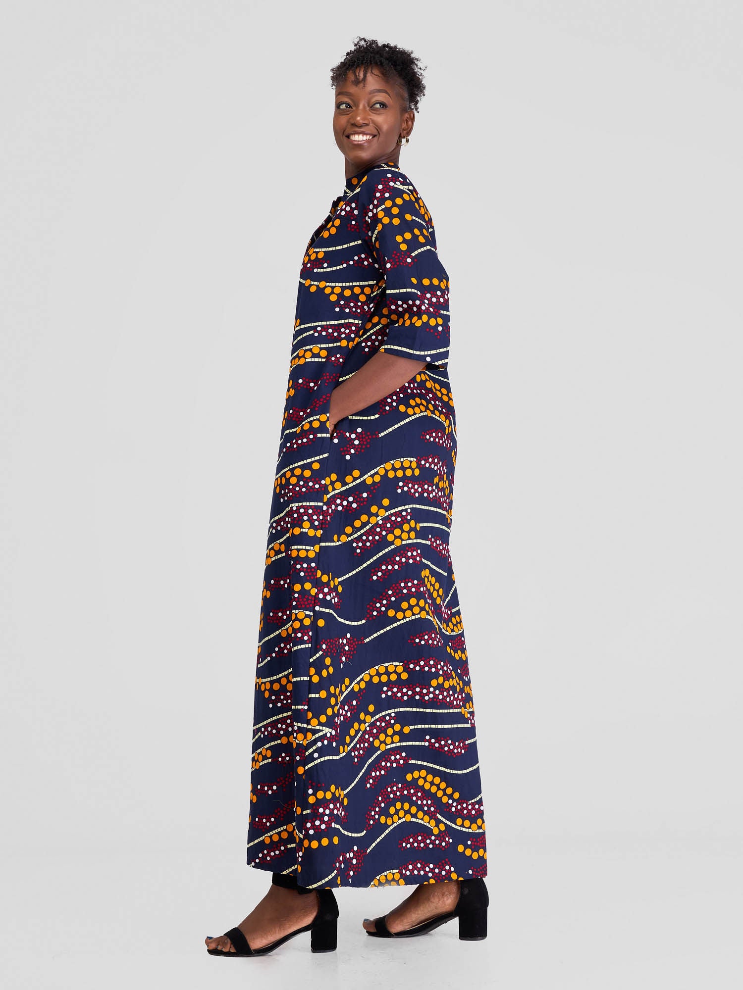 Safari Nimali 3/4 Sleeve Maxi Dress - Blue / Yellow Ankara Print