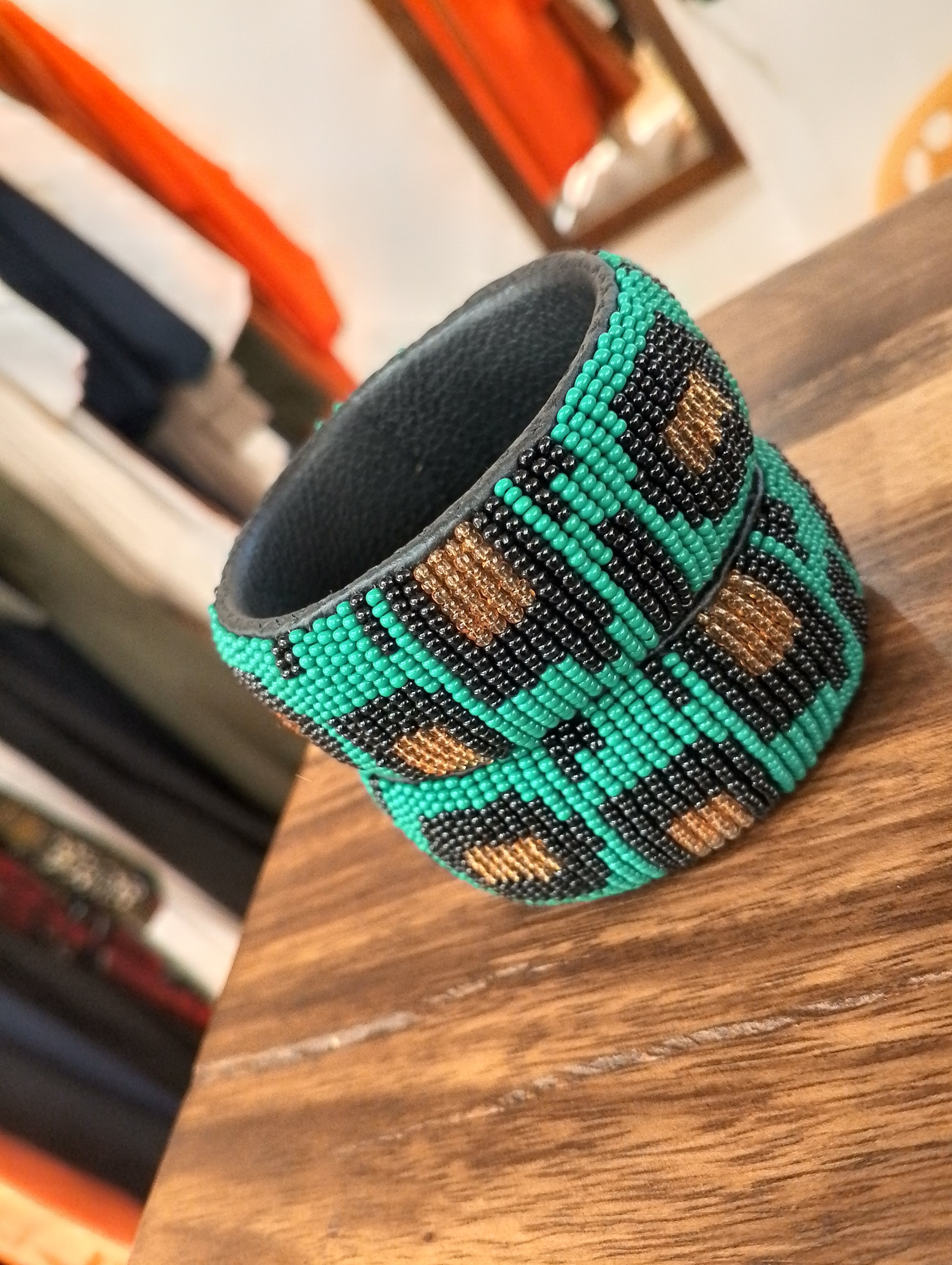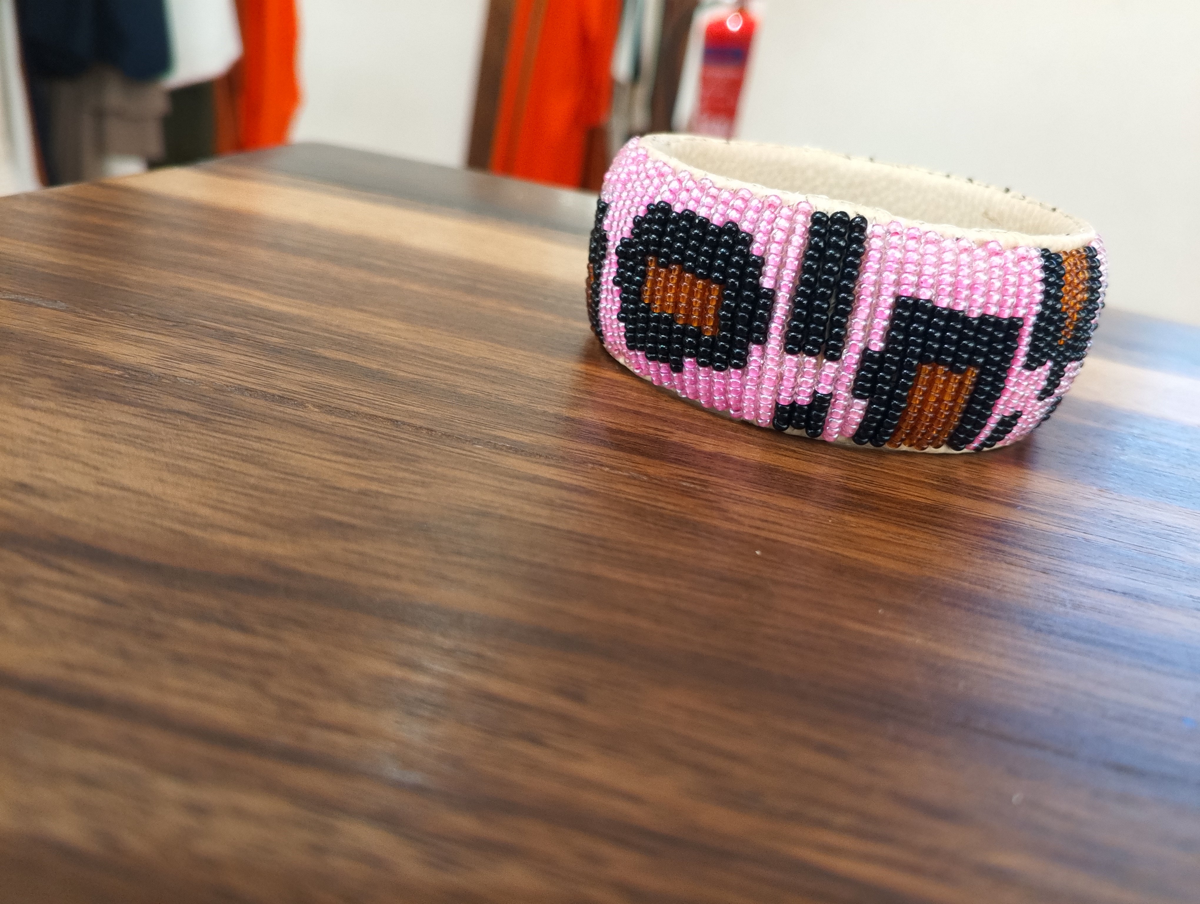 Lisa Leather Beaded Bracelet - Multi-Orange / Black