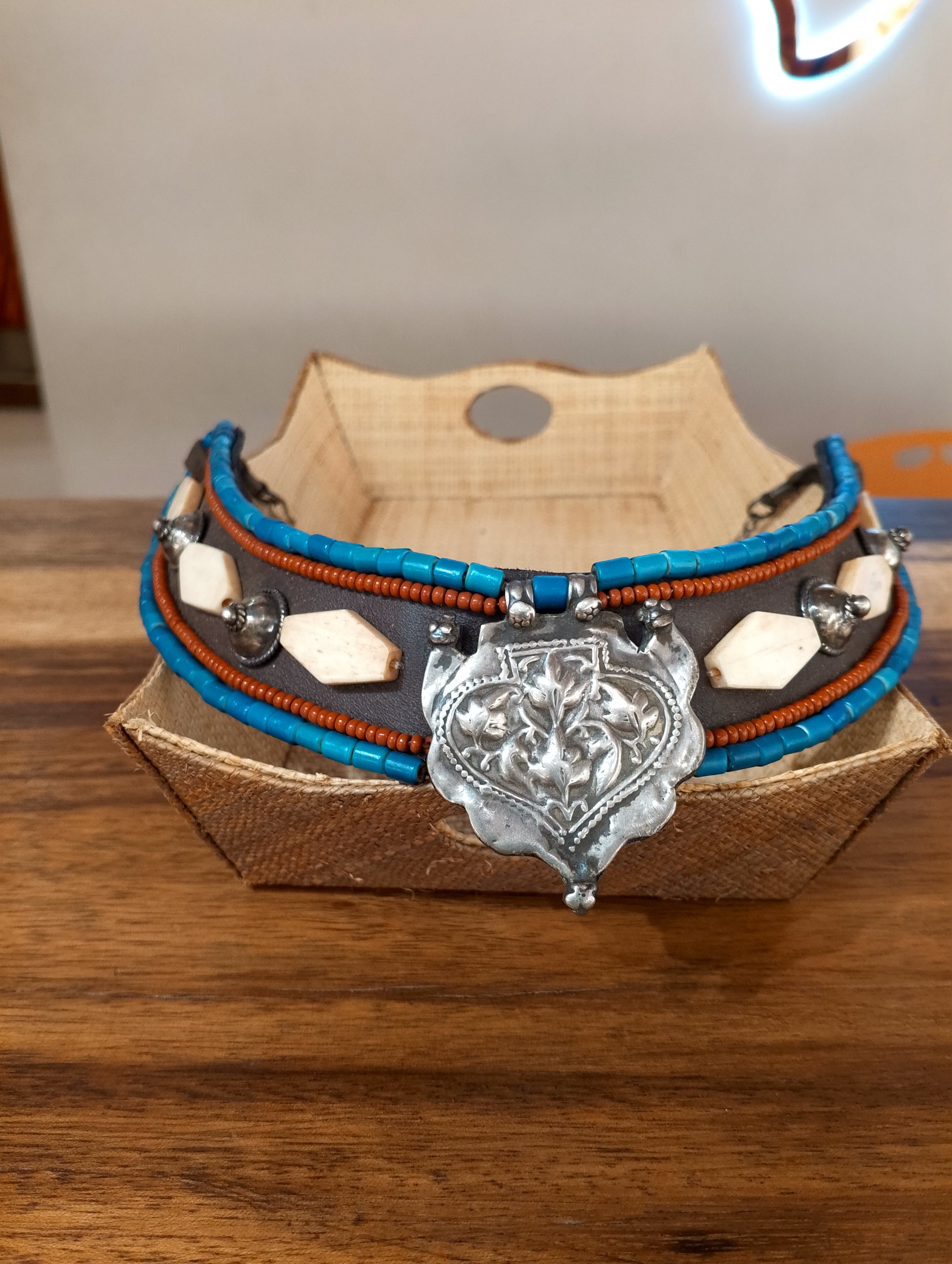 Lisa Ornate Choker with Indian Pendant - Black / Blue
