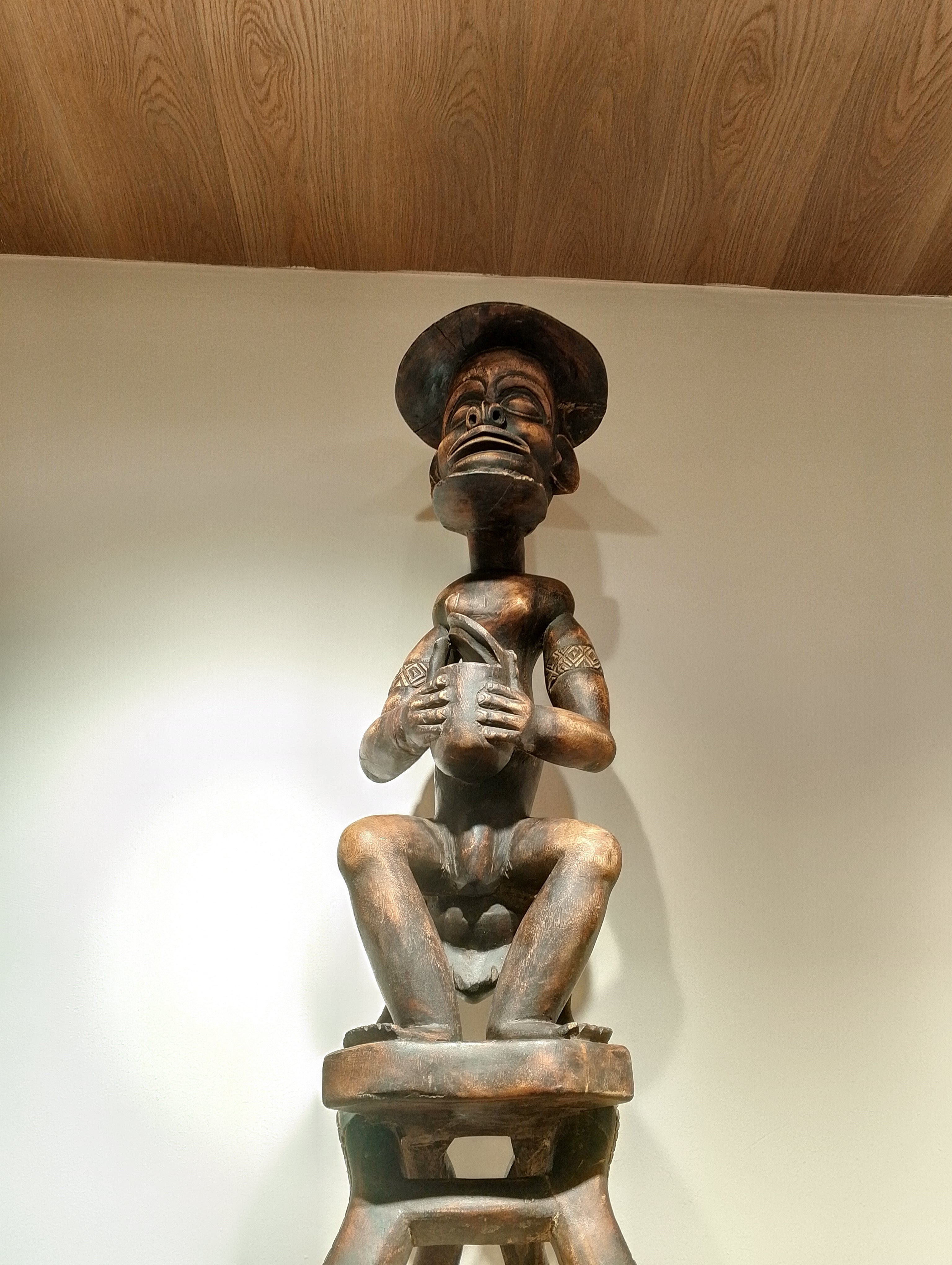 Lisa Old Wooden Seated Male on a Congo Stool - Black / Brass