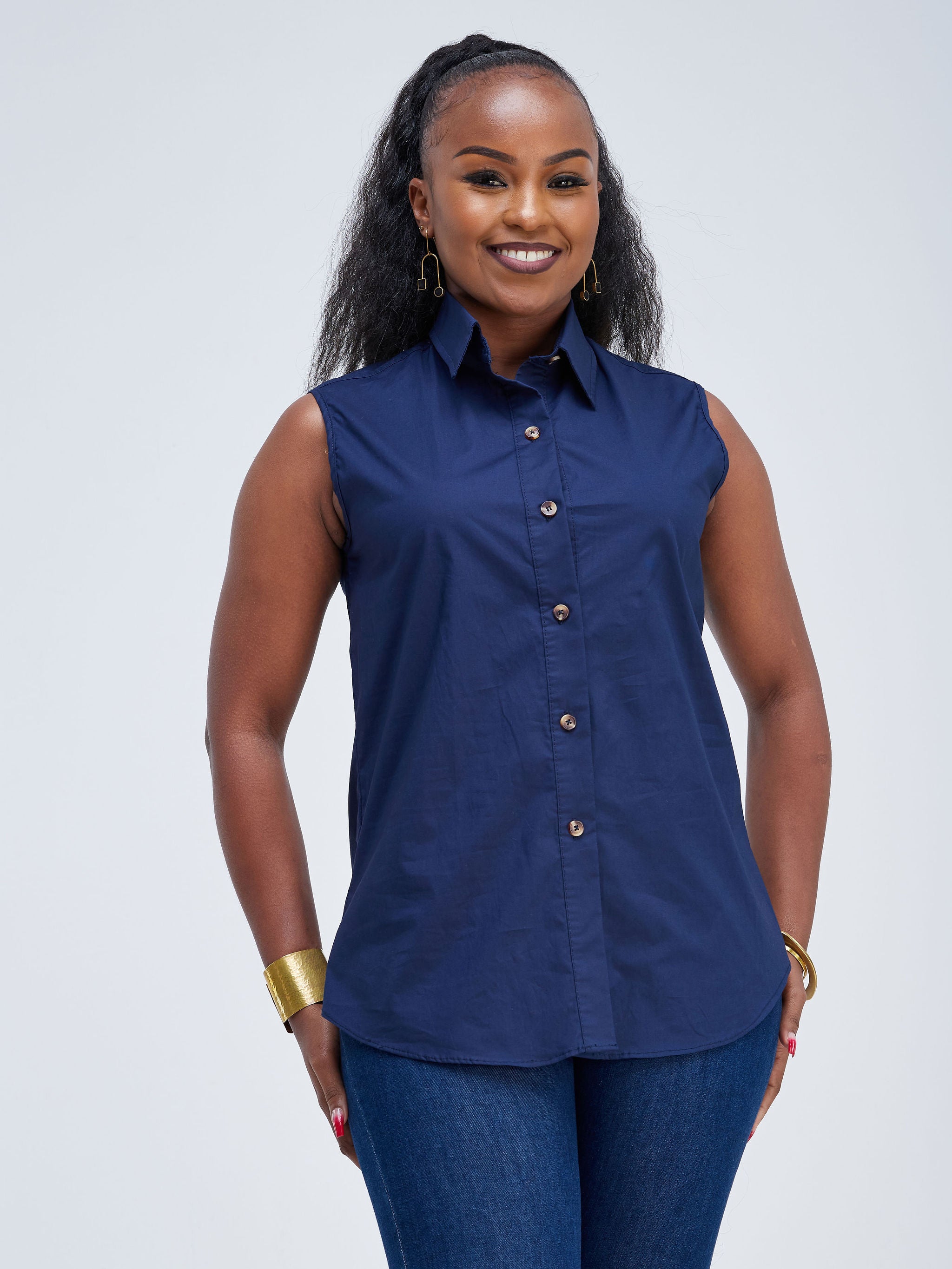 Safari Kaya Sleeveless Shirt - Navy Blue