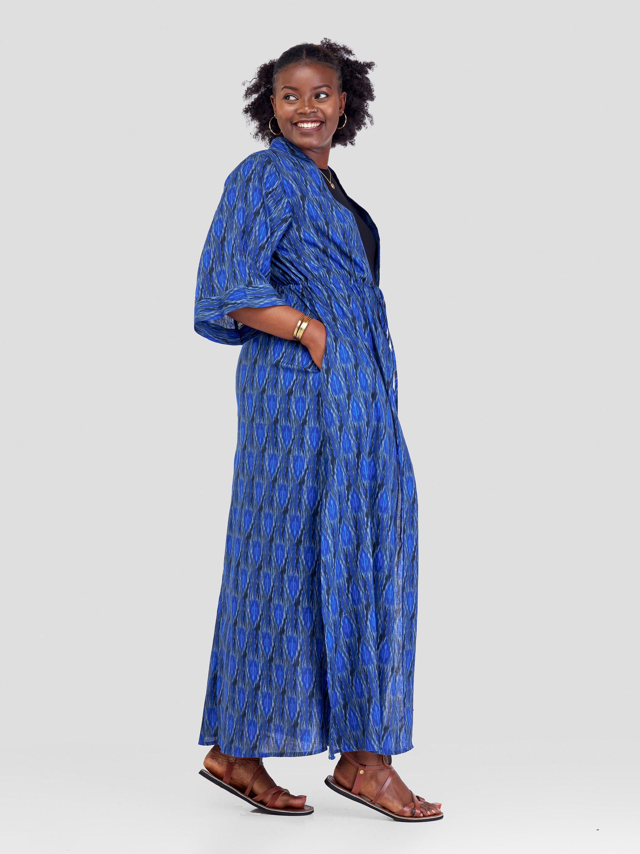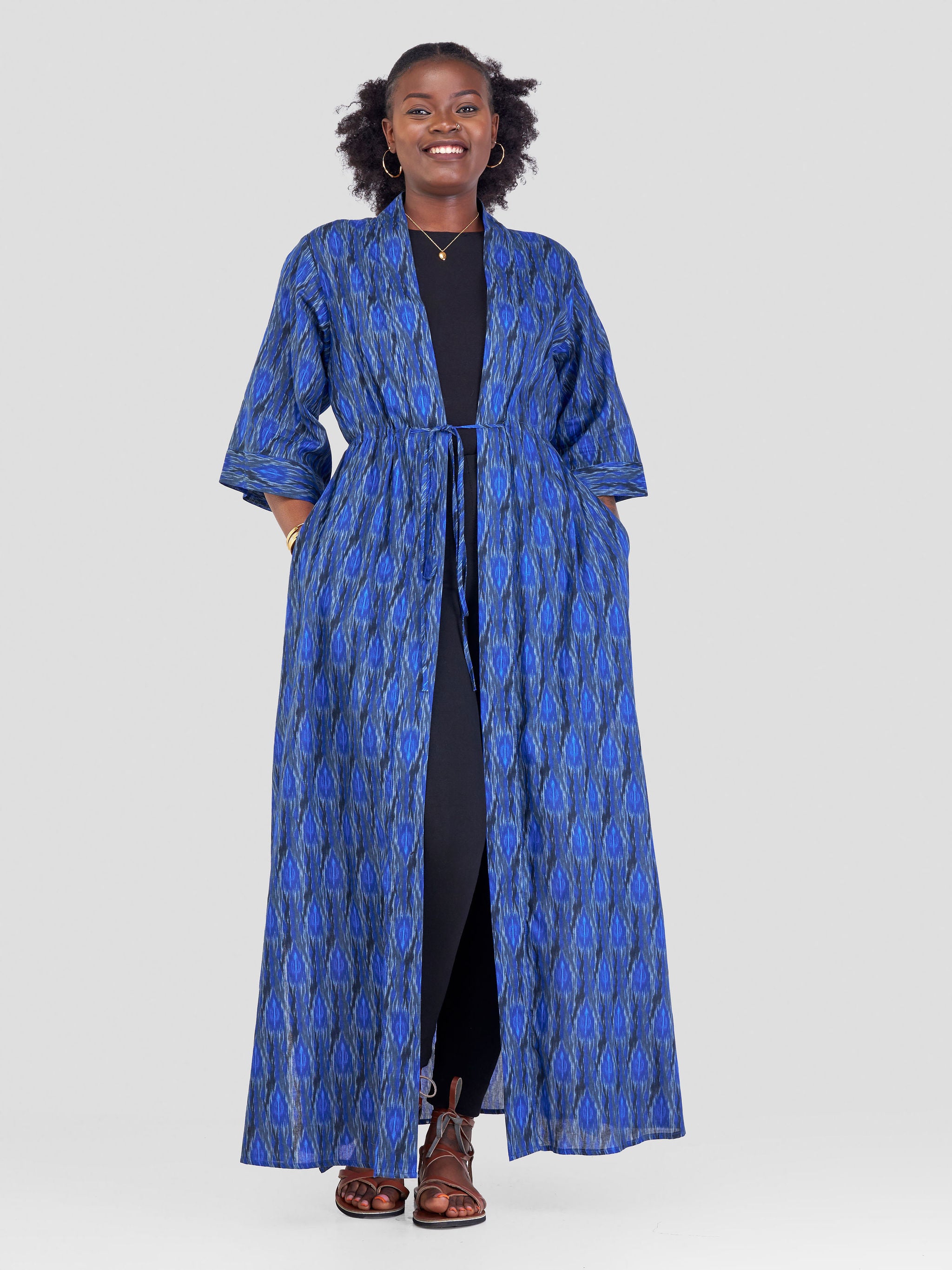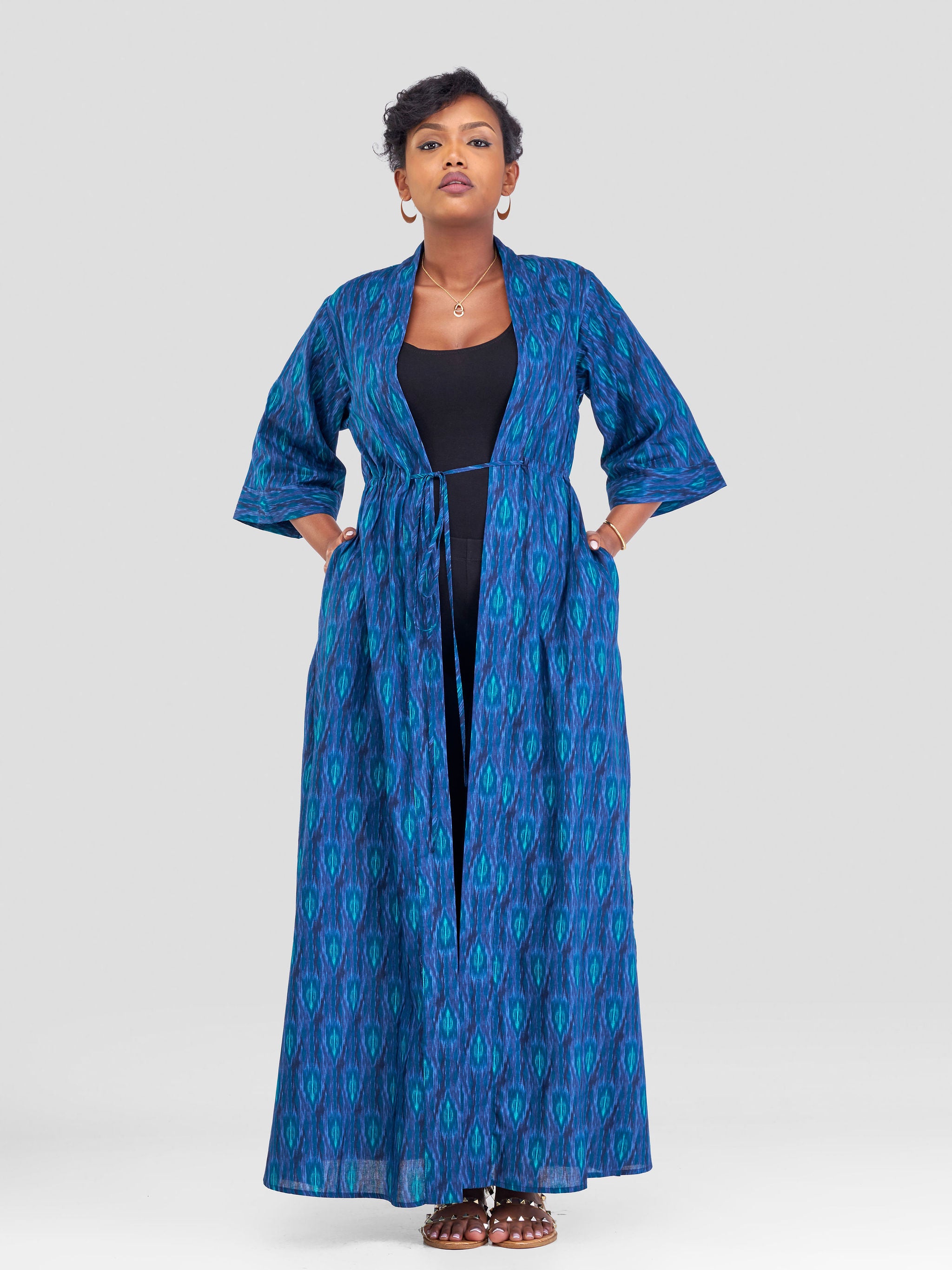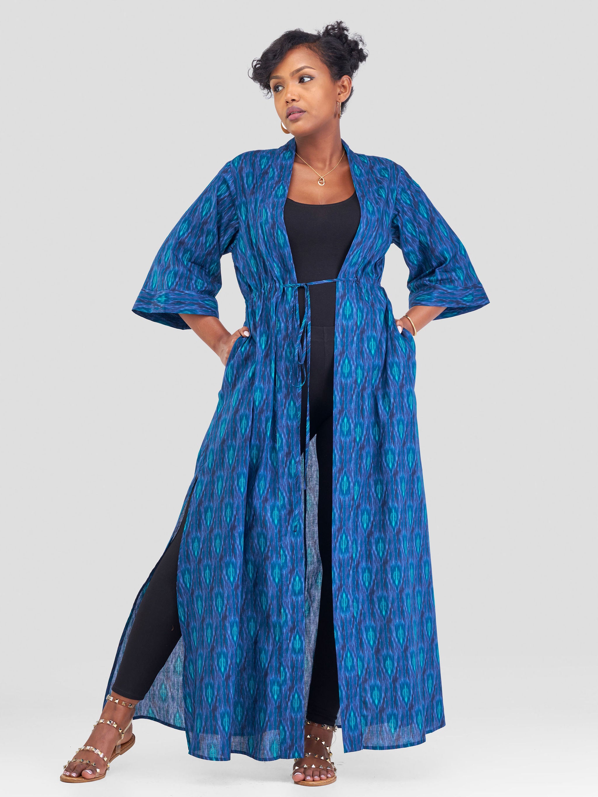 Safari Kikoy Maxi Kimono - Blue / Pink