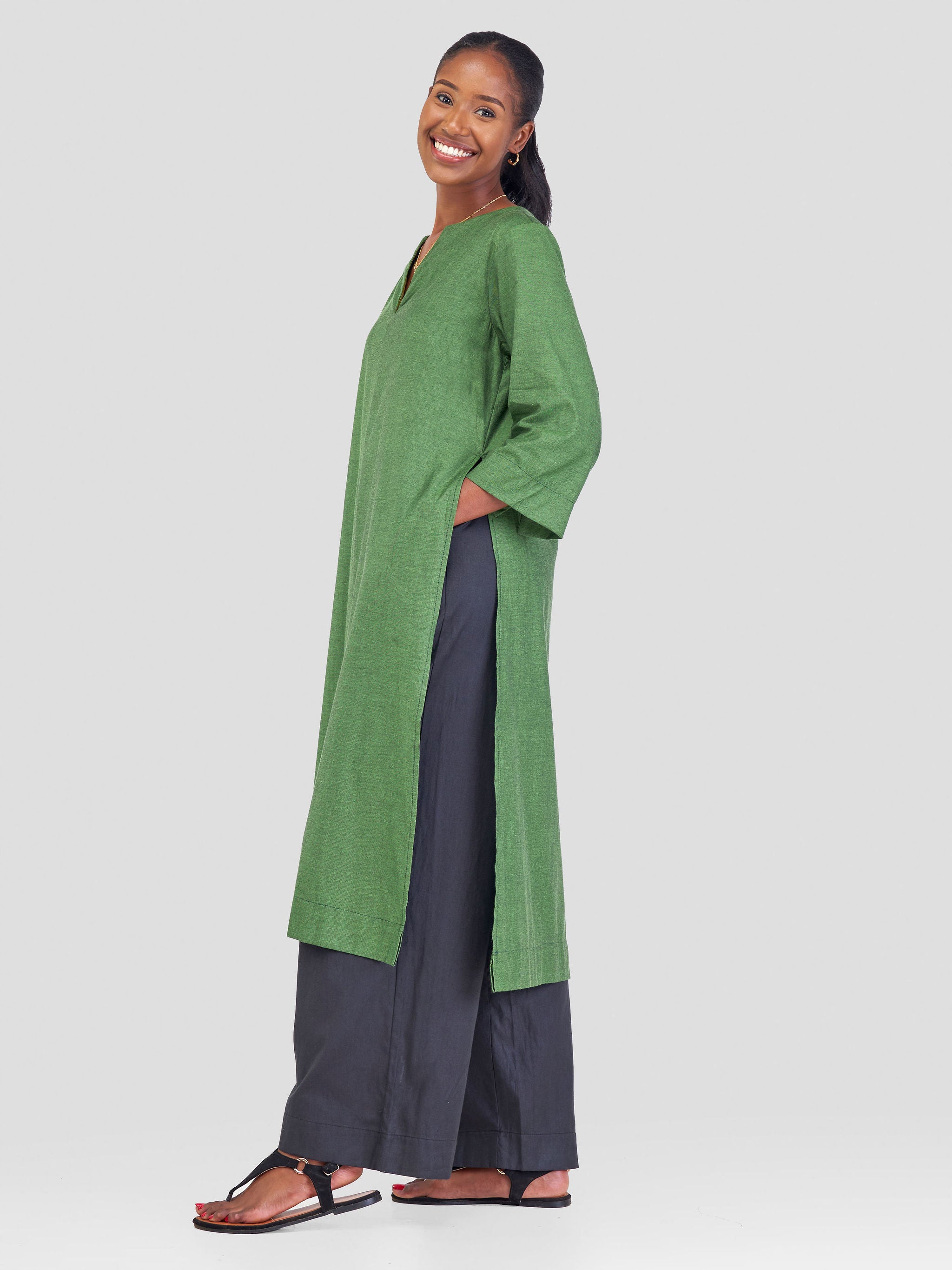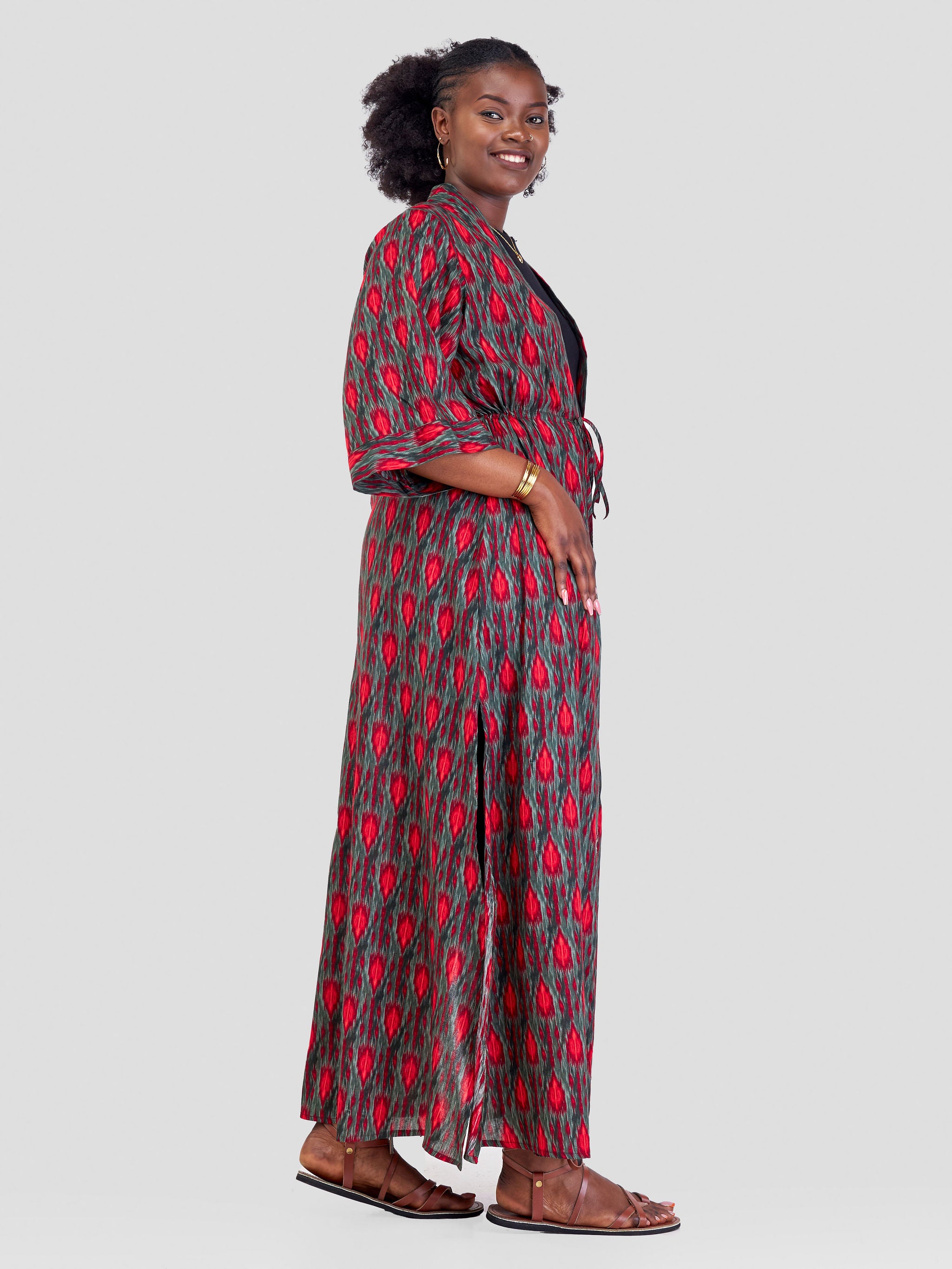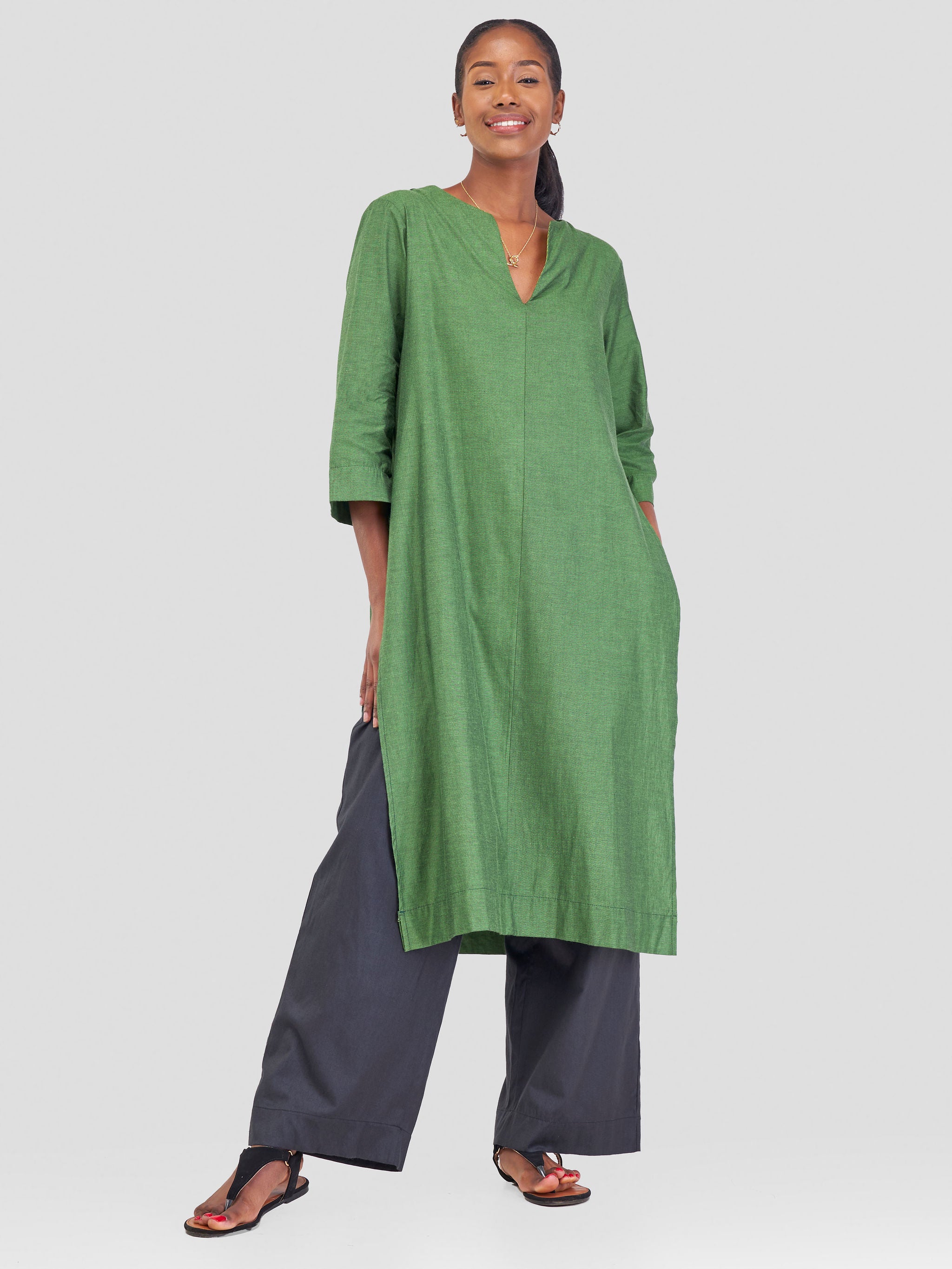 Safari Kikoy Maxi Shirt Dress - Green