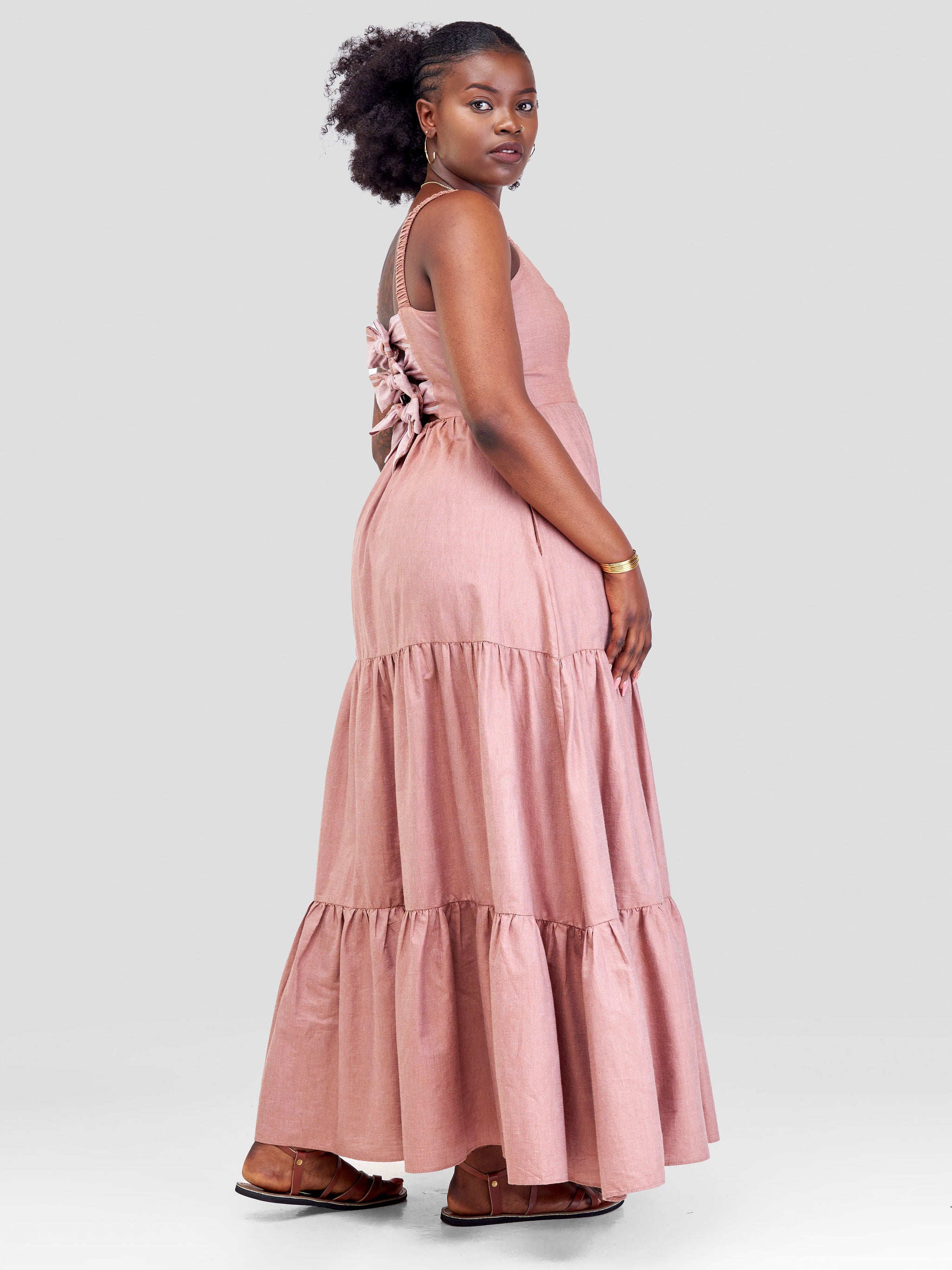 Safari Kikoy Tie Back Maxi Dress - Pink