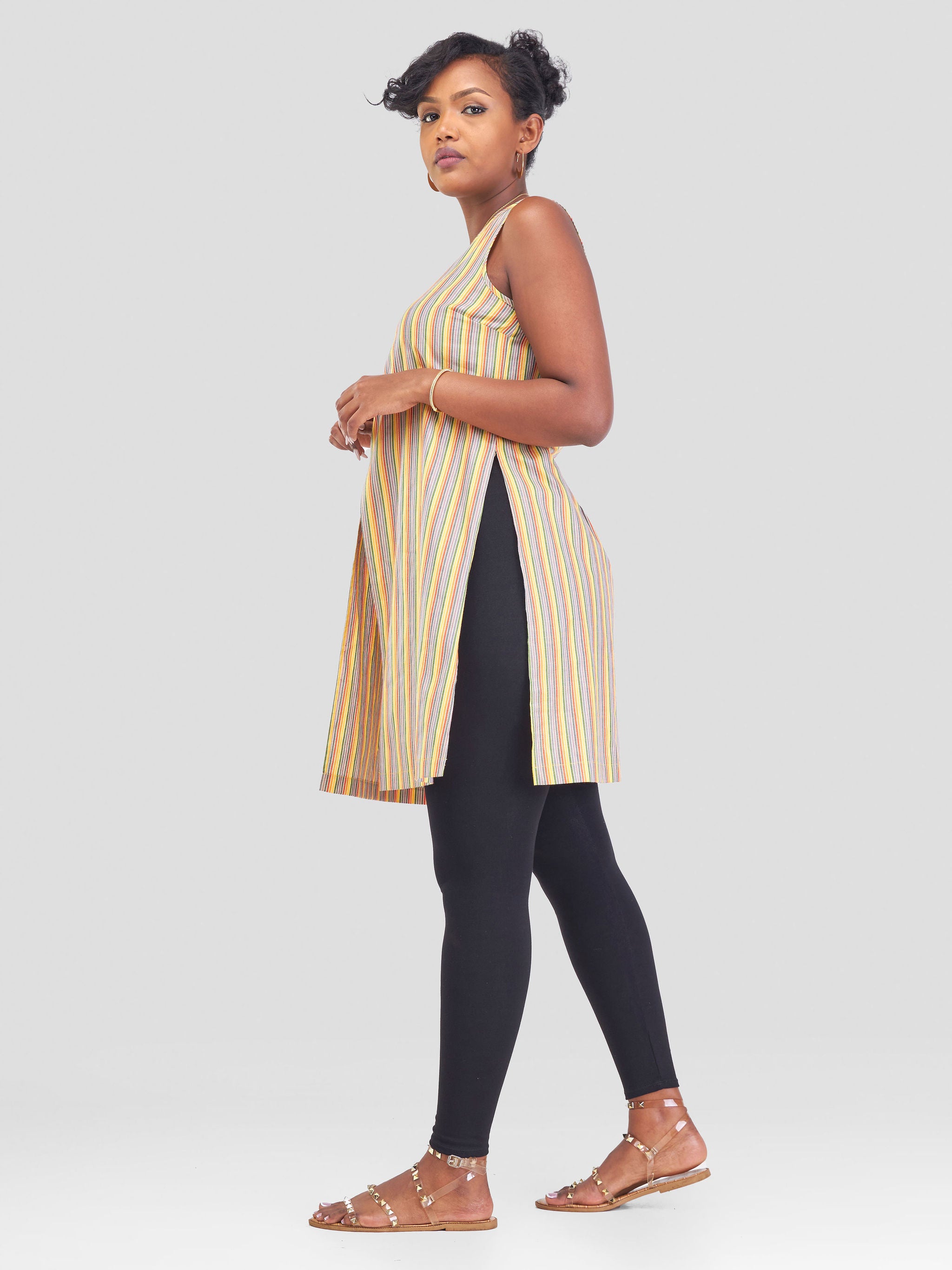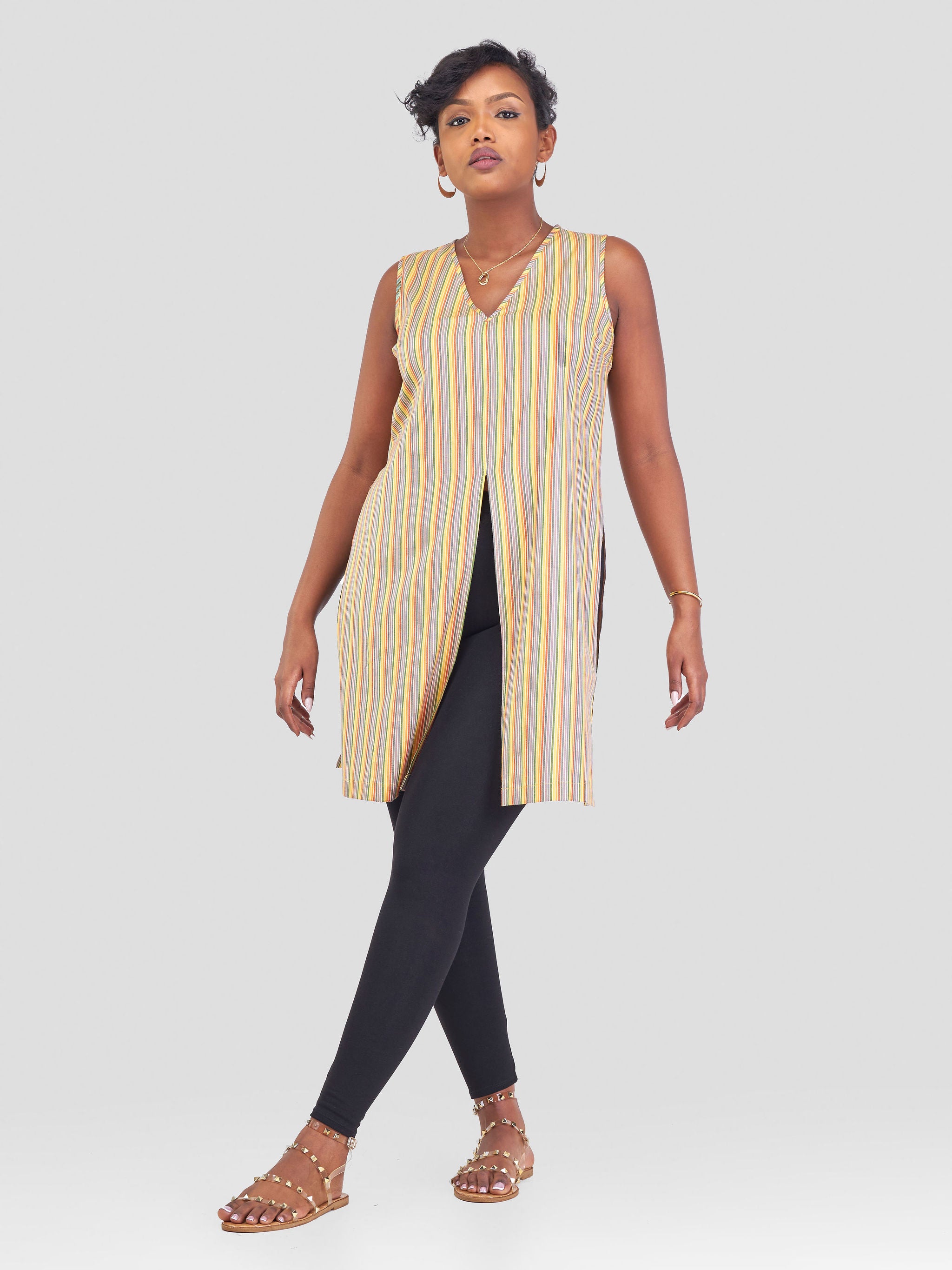 Safari Kikoy V-Neck Tiered Dress - Gold
