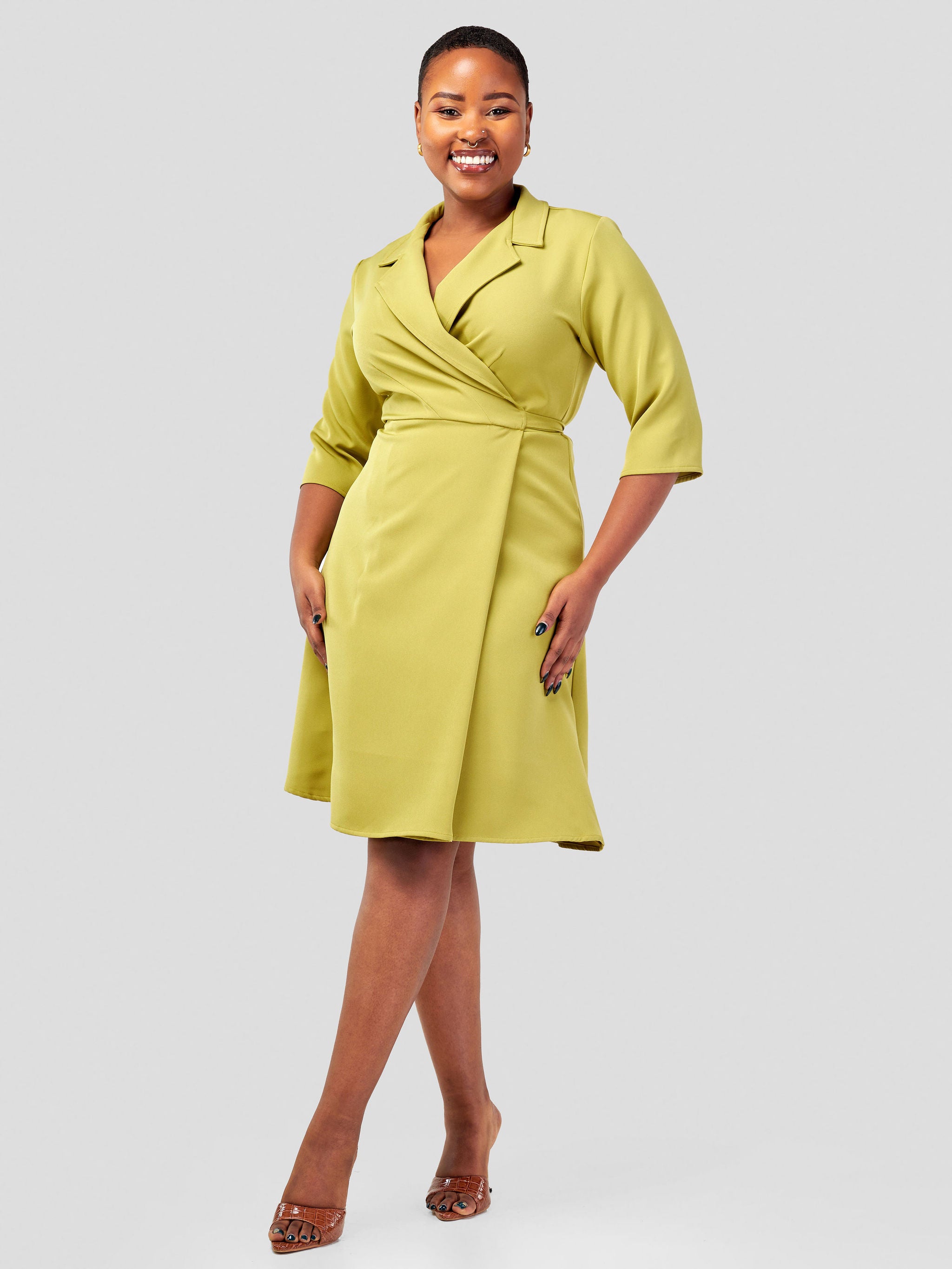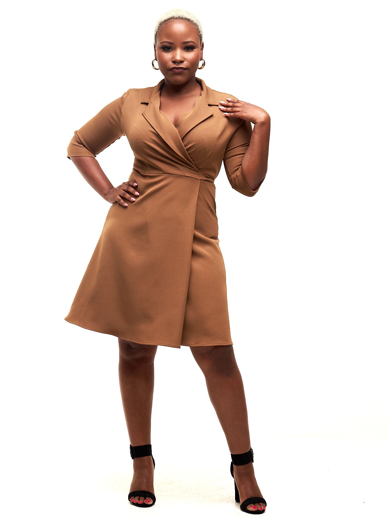 Vivo Taji 3/4 Sleeve Wrap Dress - Brown