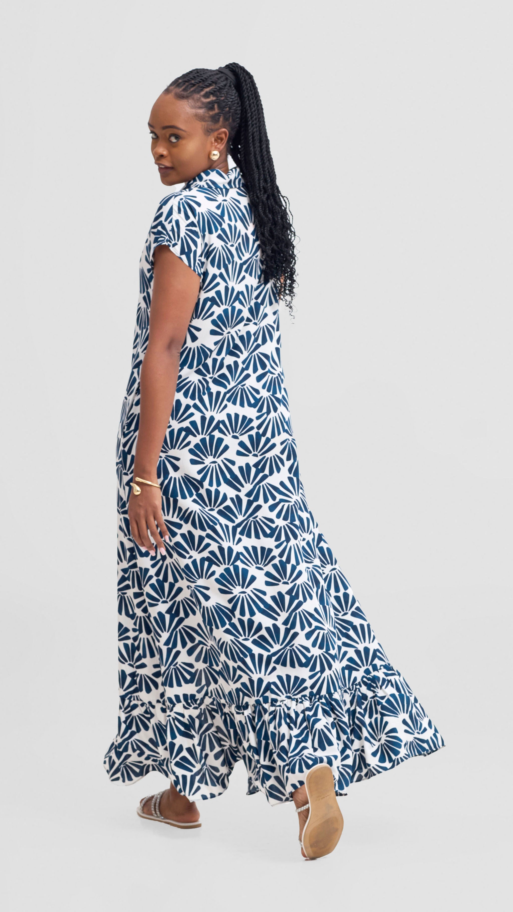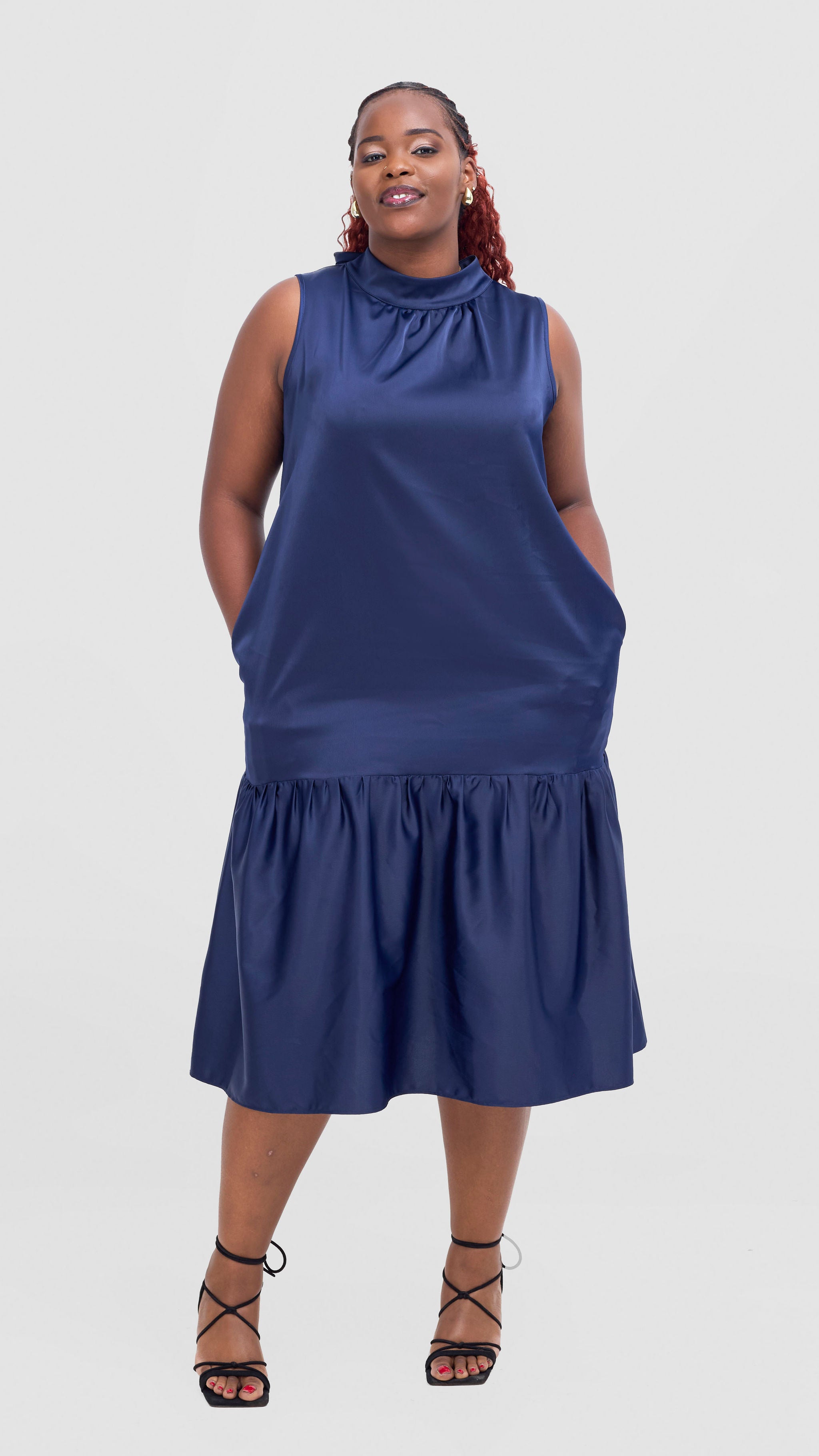Vivo Takali Frilled Midi Dress - Navy