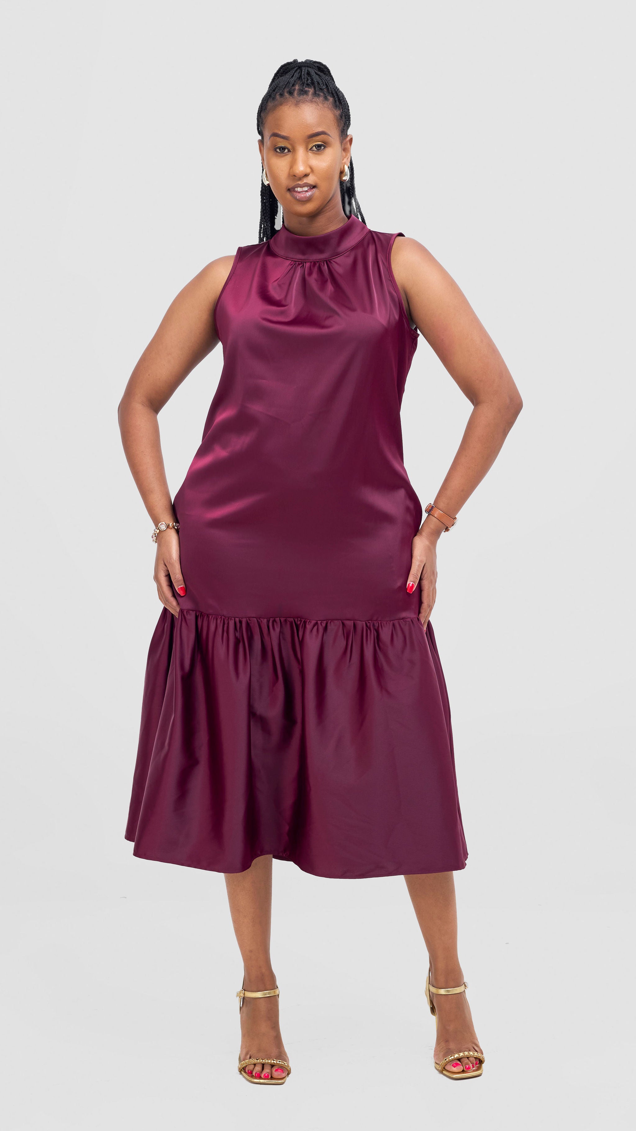 Vivo Takali Frilled Midi Dress - Maroon