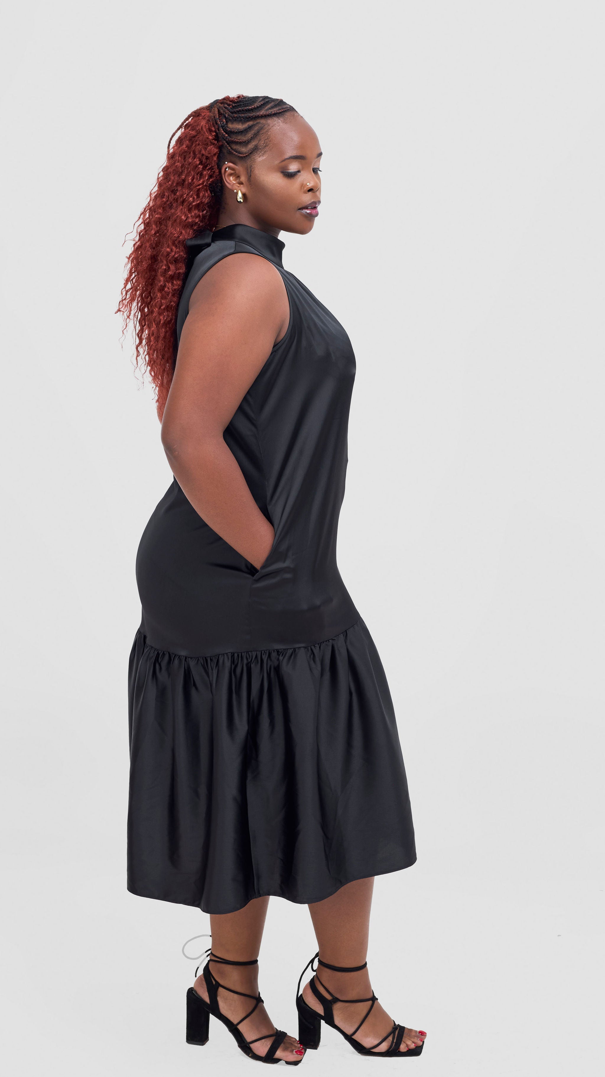 Vivo Takali Frilled Midi Dress - Black