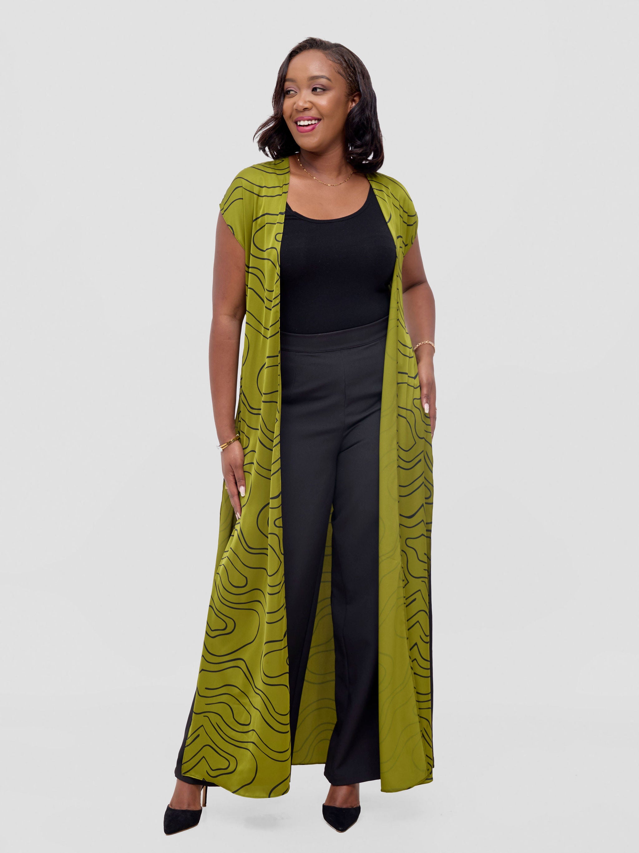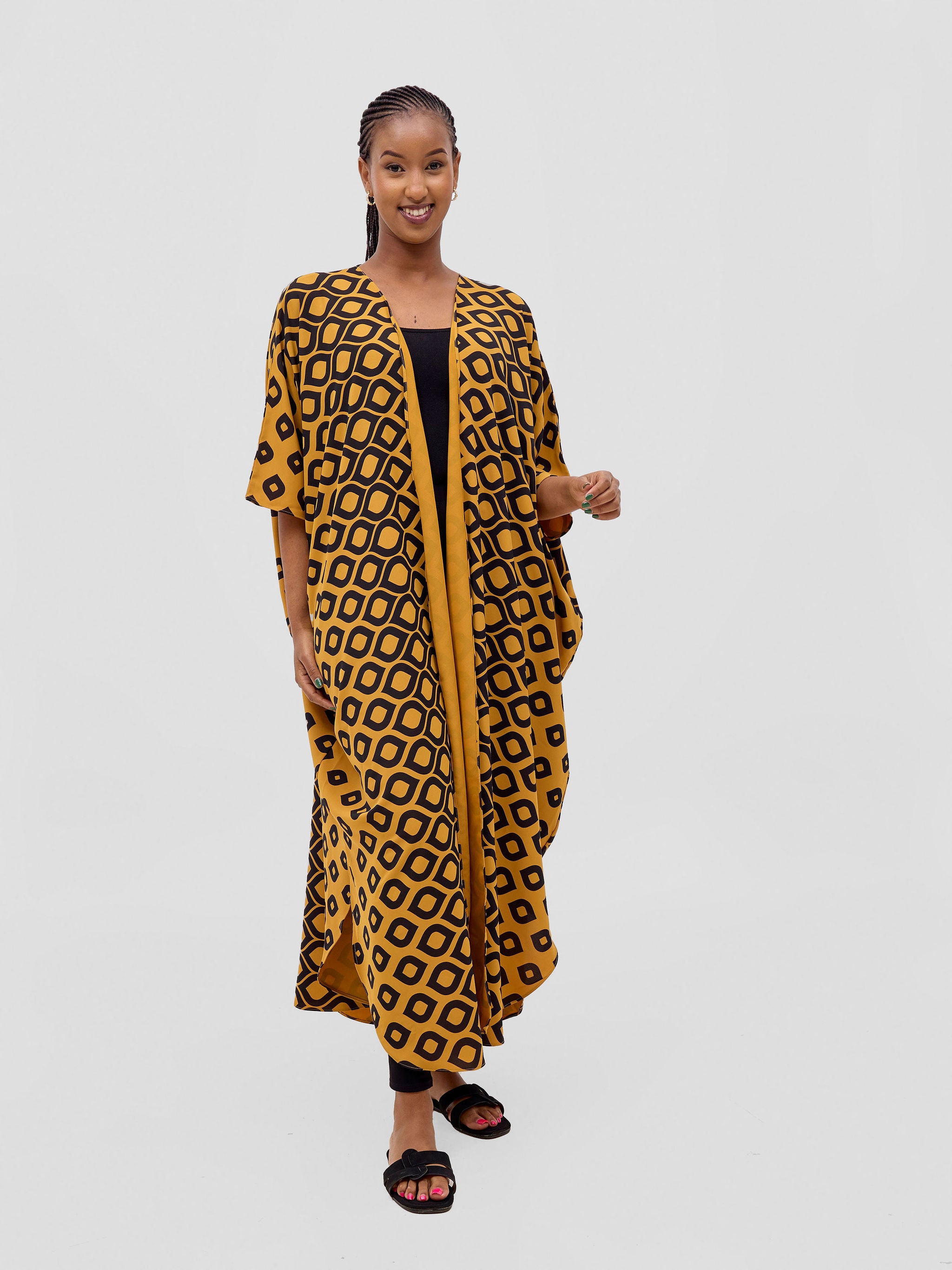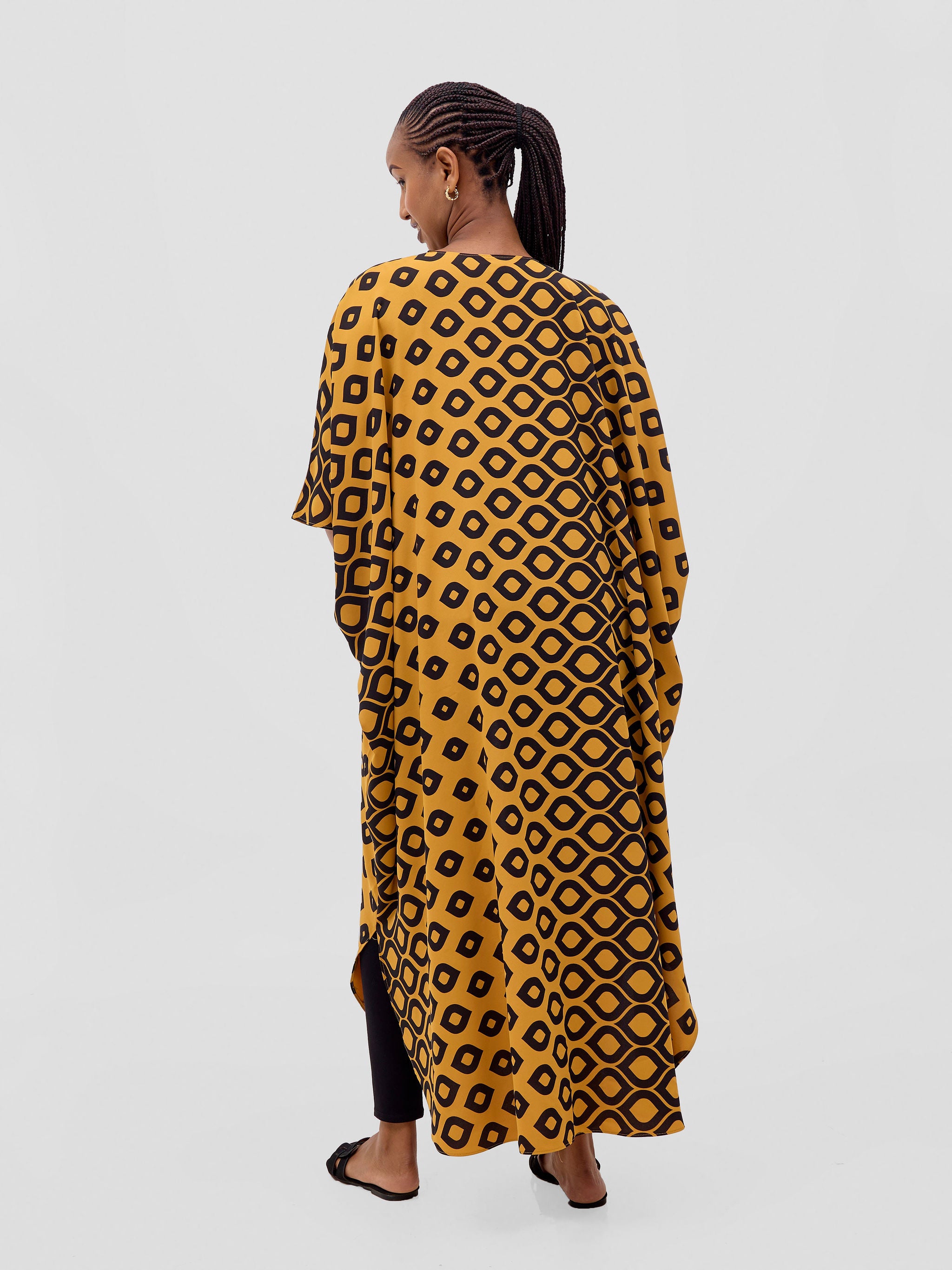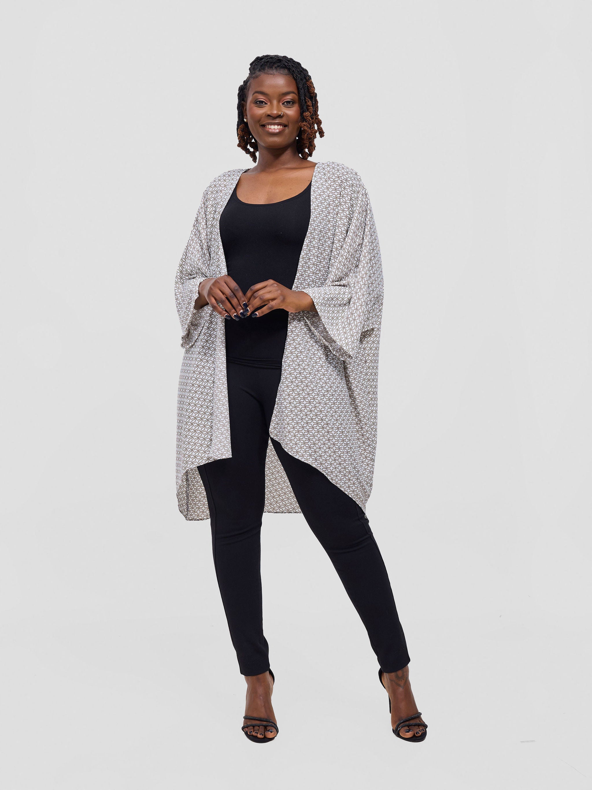Vivo Basic Open Kaftan - Tan Ayla Print