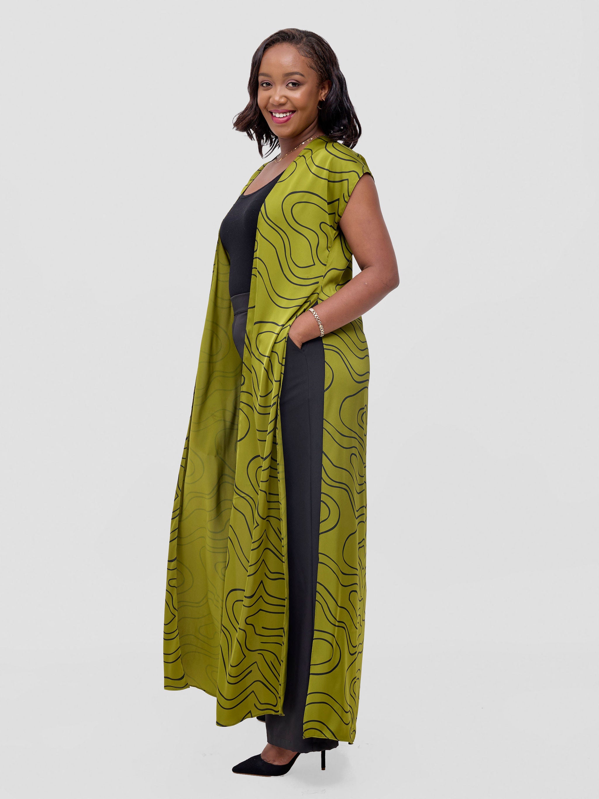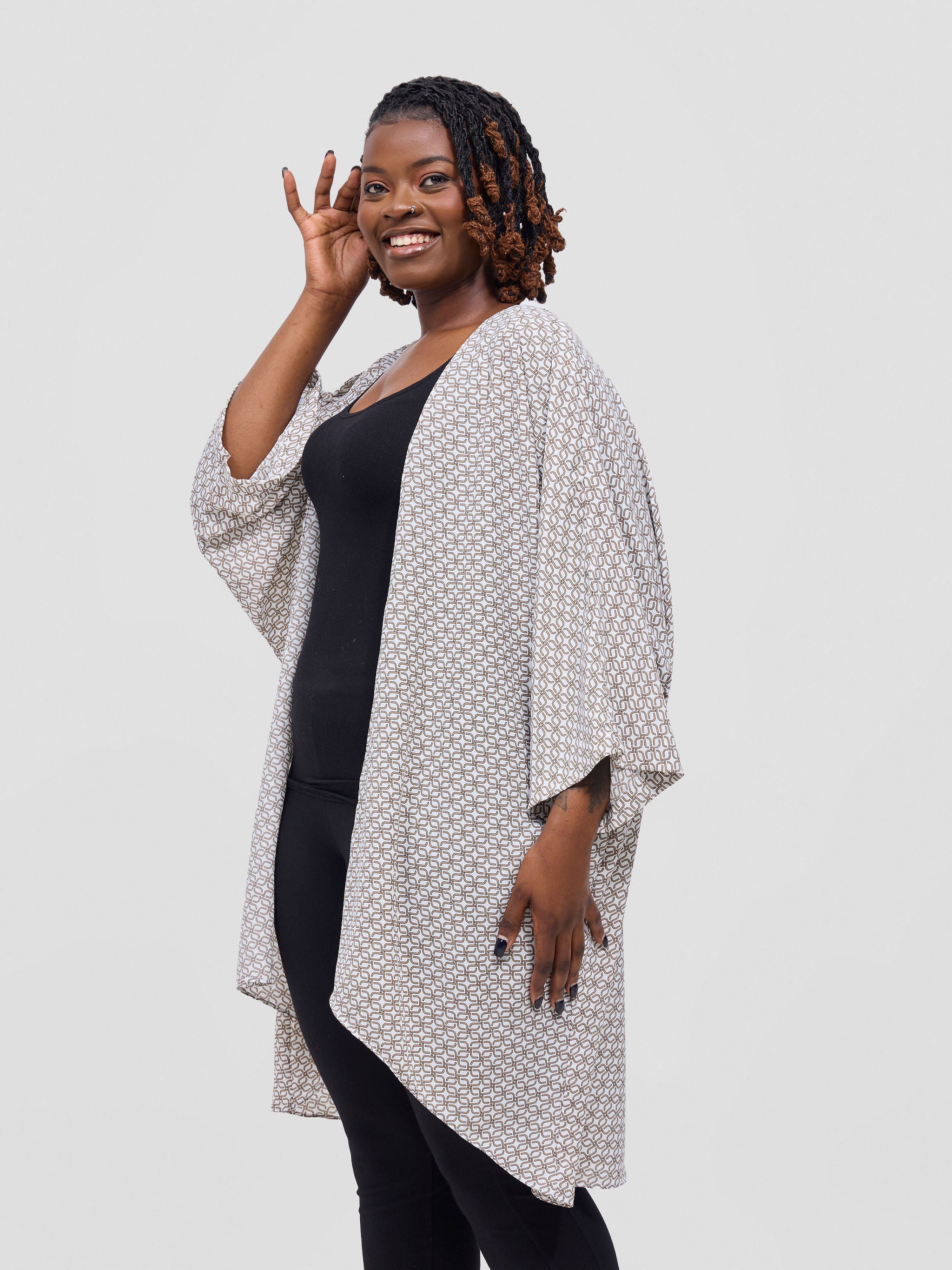 Vivo Basic Open Kaftan - Tan Meti Print