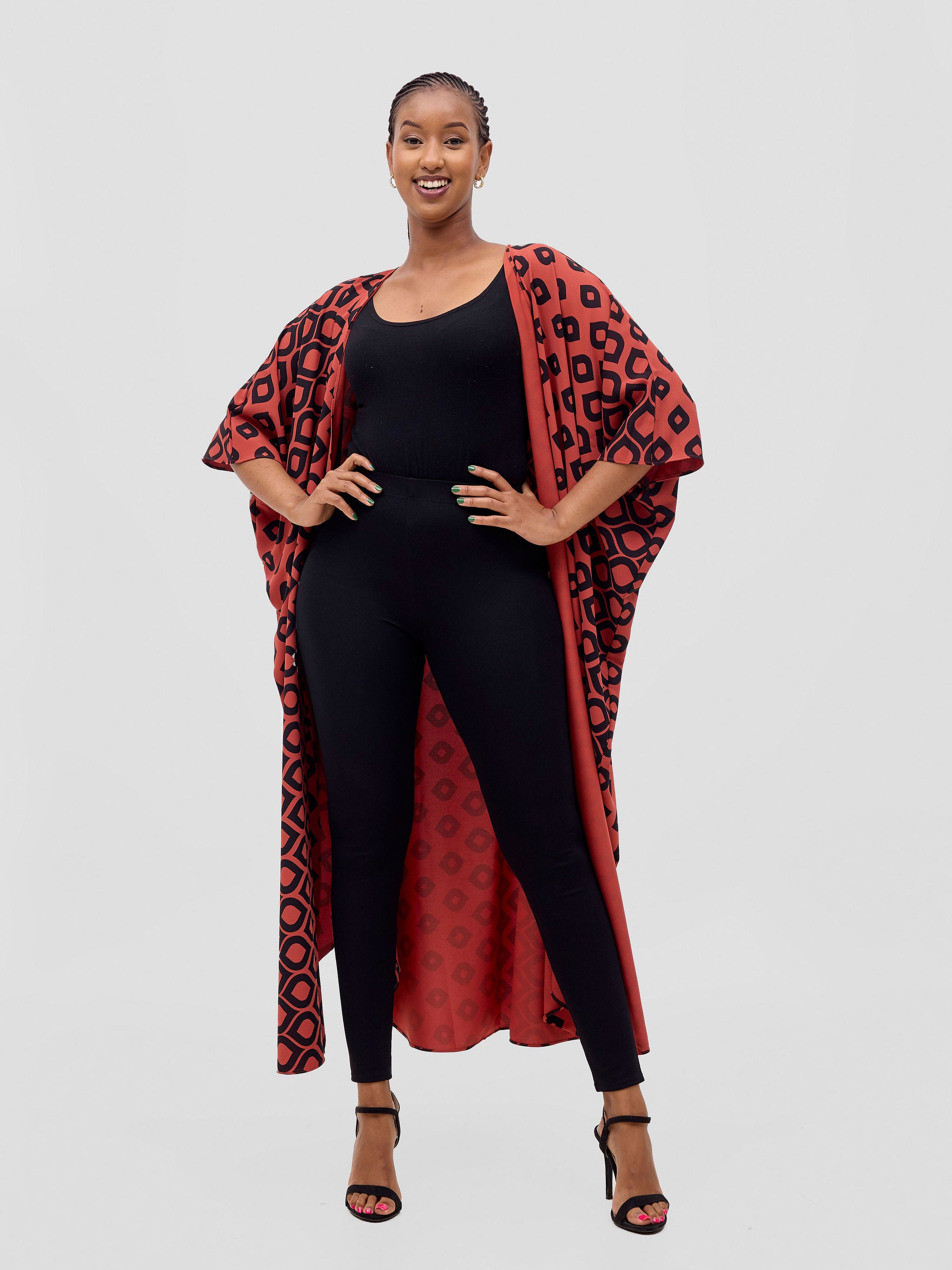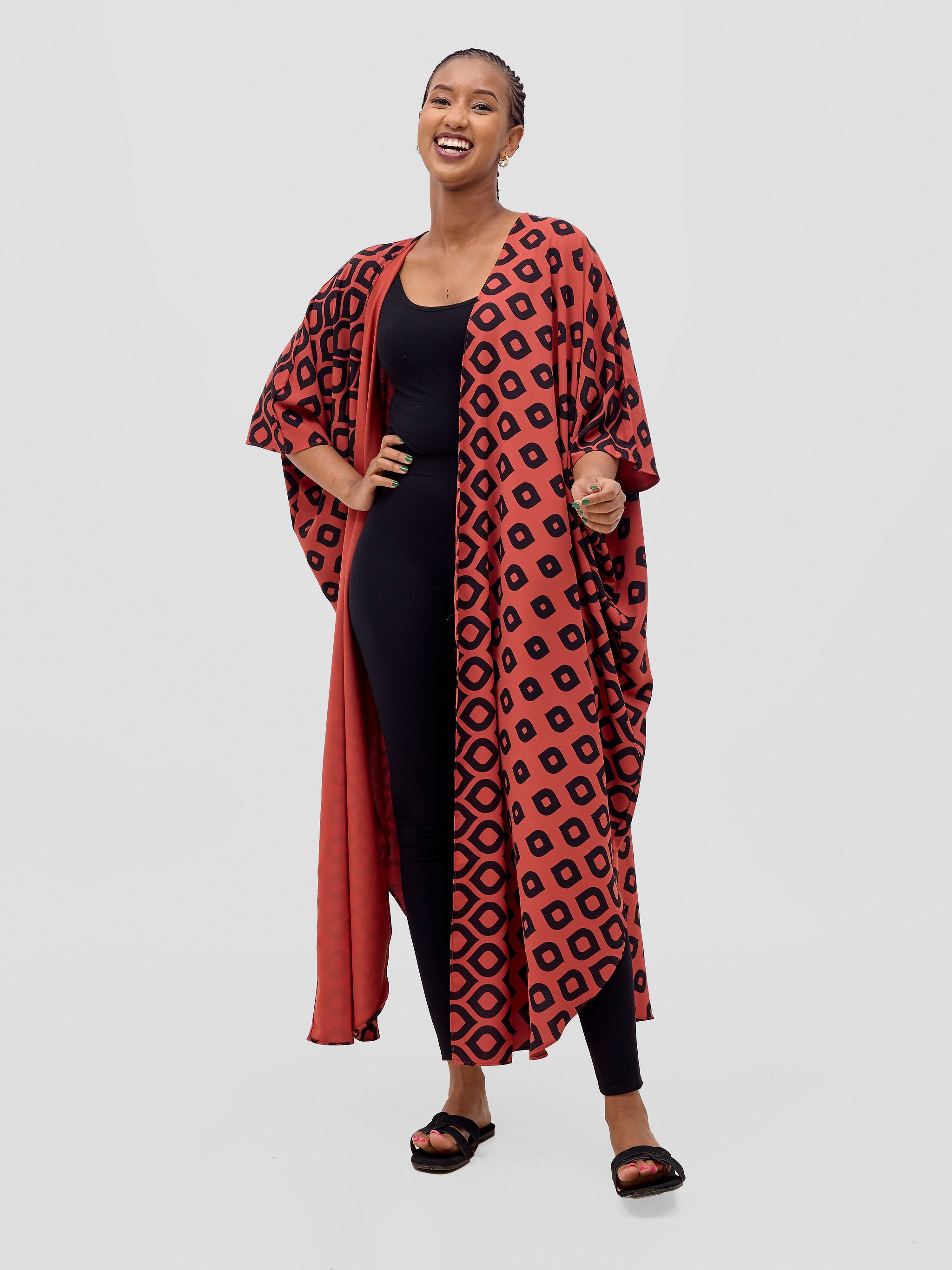 Vivo Basic Open Kaftan - Rust Ayla Print