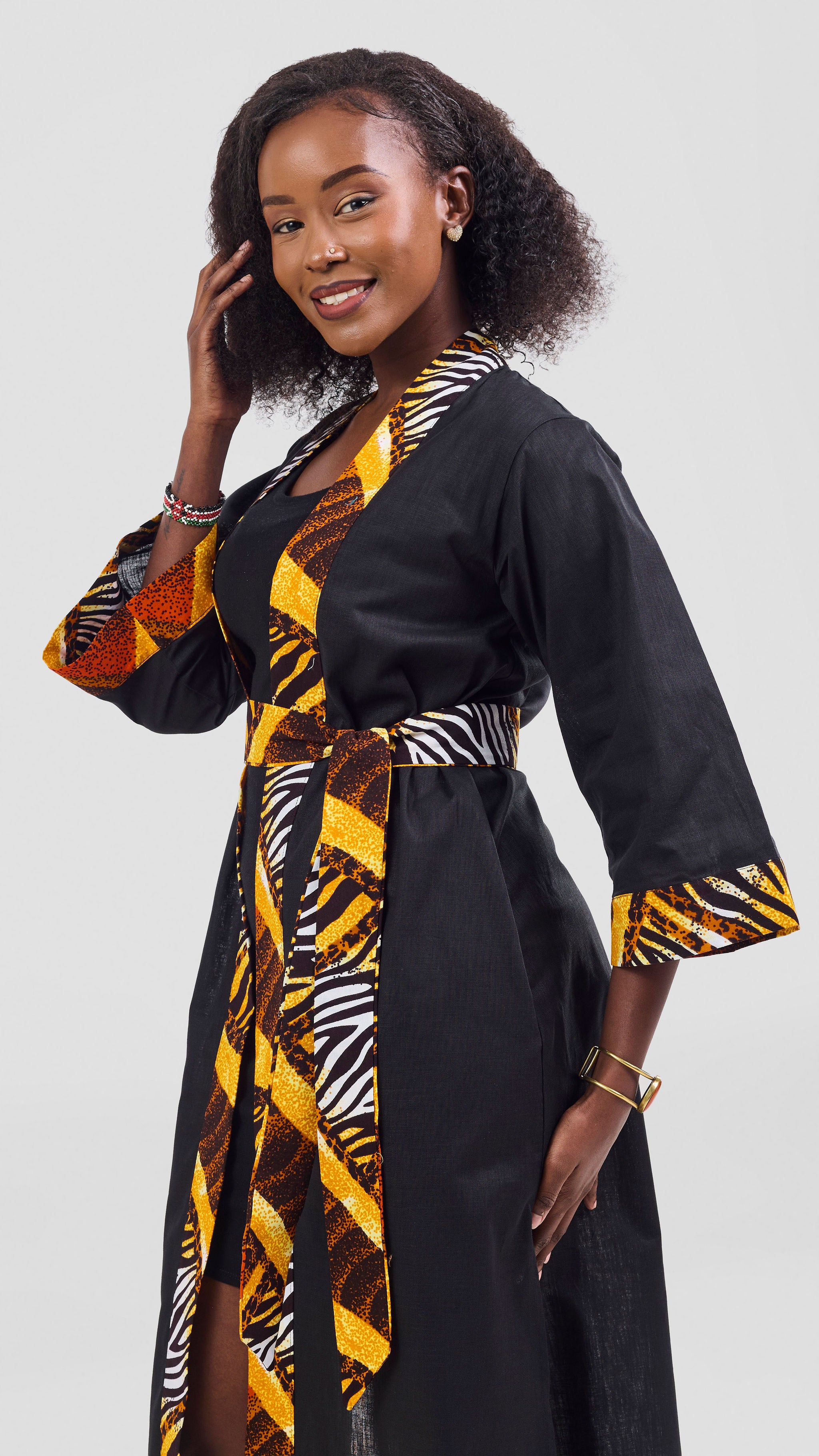 Safari Tafari High Slit Kimono - Black / Luena Print