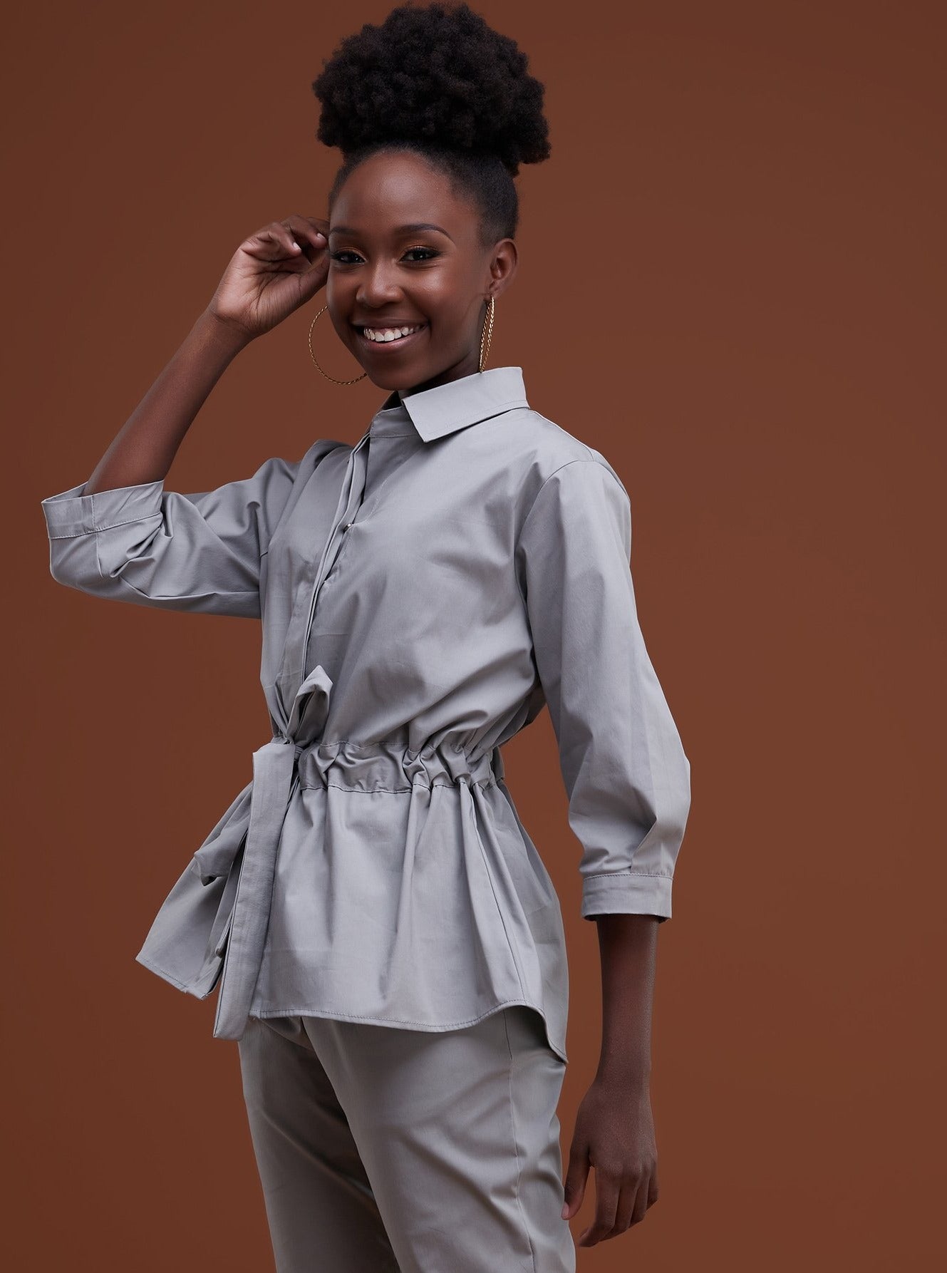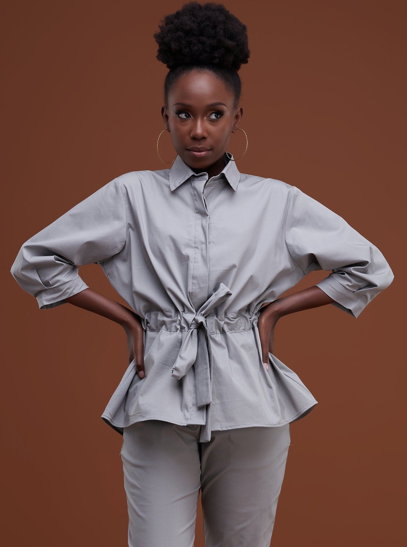 Safari Huru Peplum Shacket - Light Grey