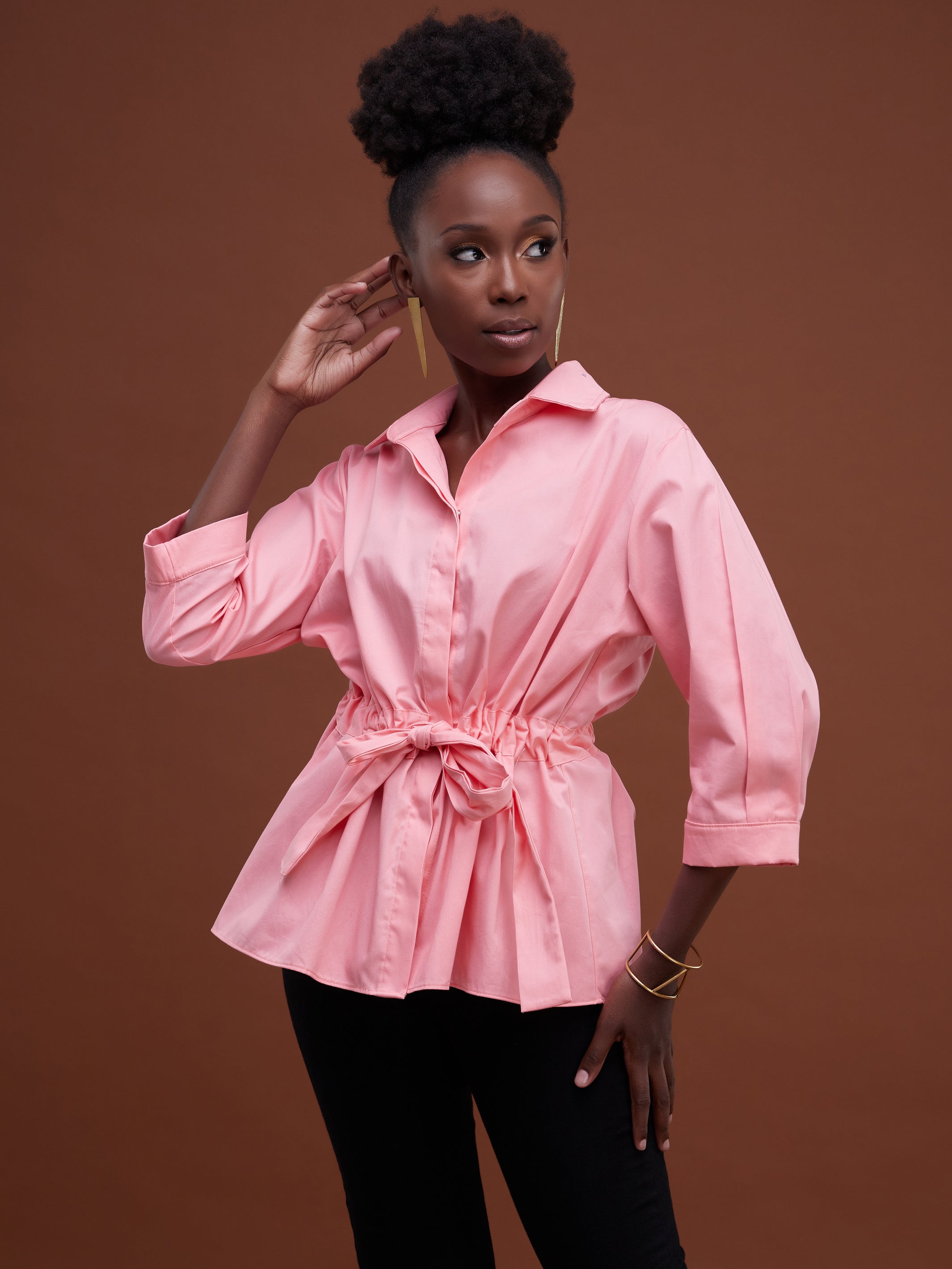 Safari Huru Peplum Shacket - Light Pink