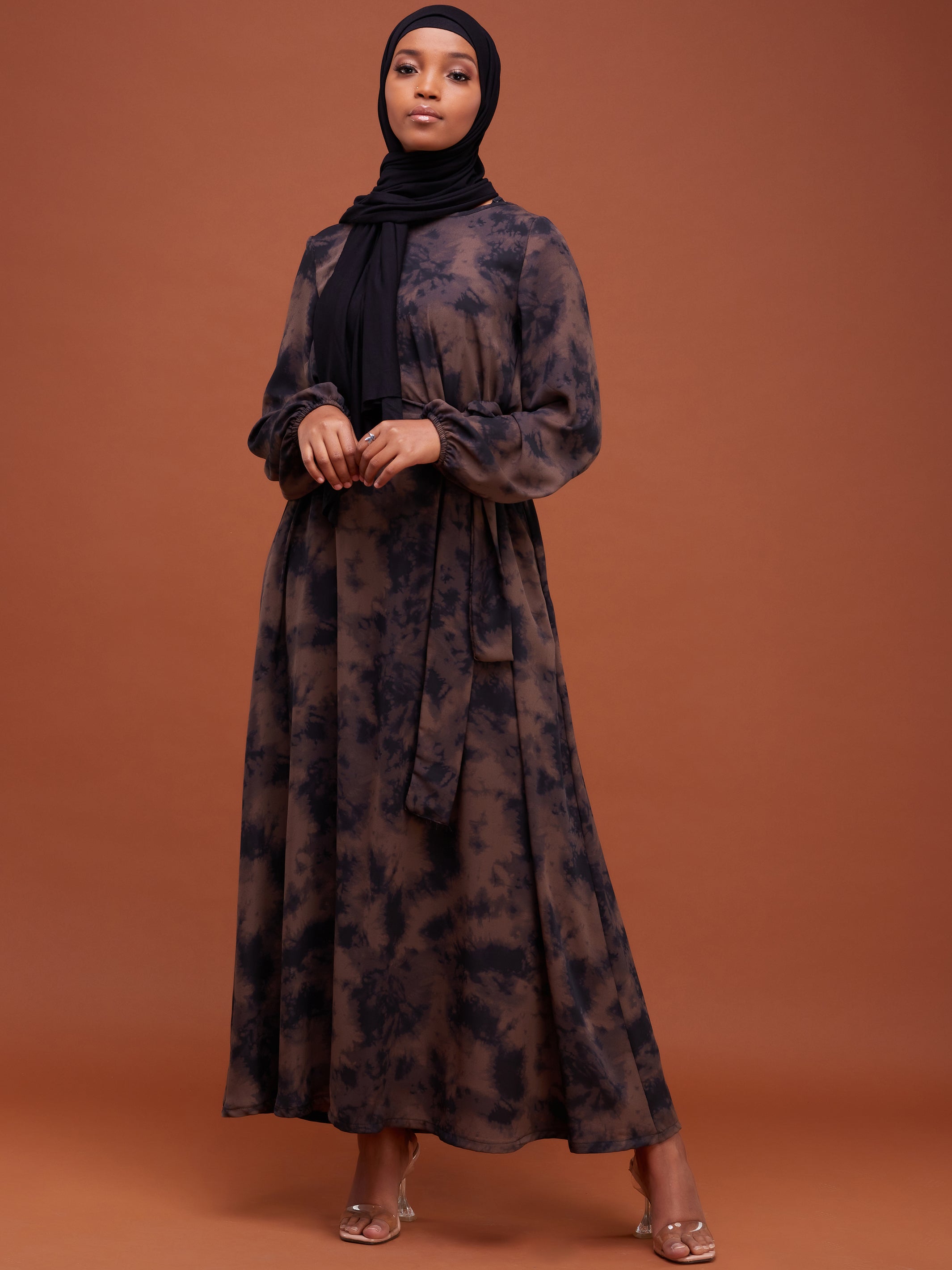 Safari Ayana 3/4 Sleeved Off Shoulder Tent Maxi Dress - Mustard/ Green Print