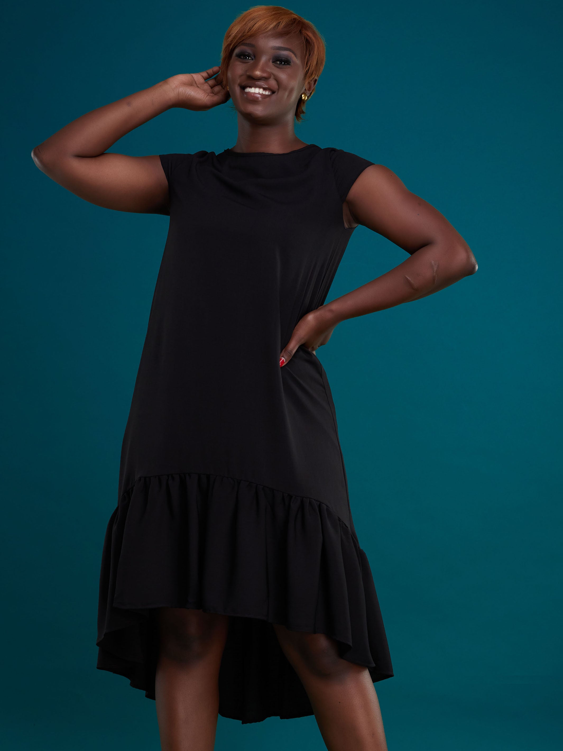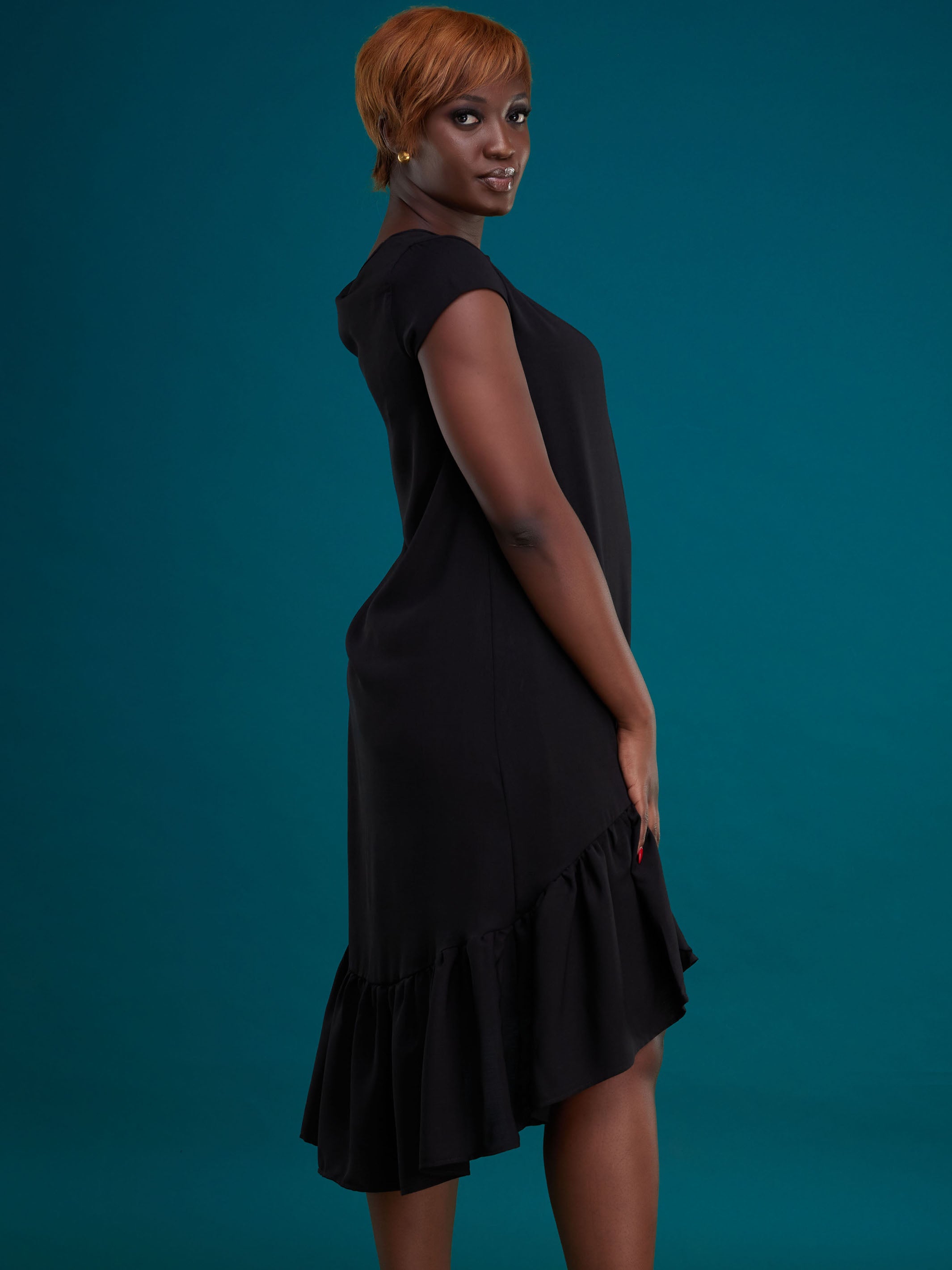 Vivo Ayana Cap Sleeved Shift Dress - Black
