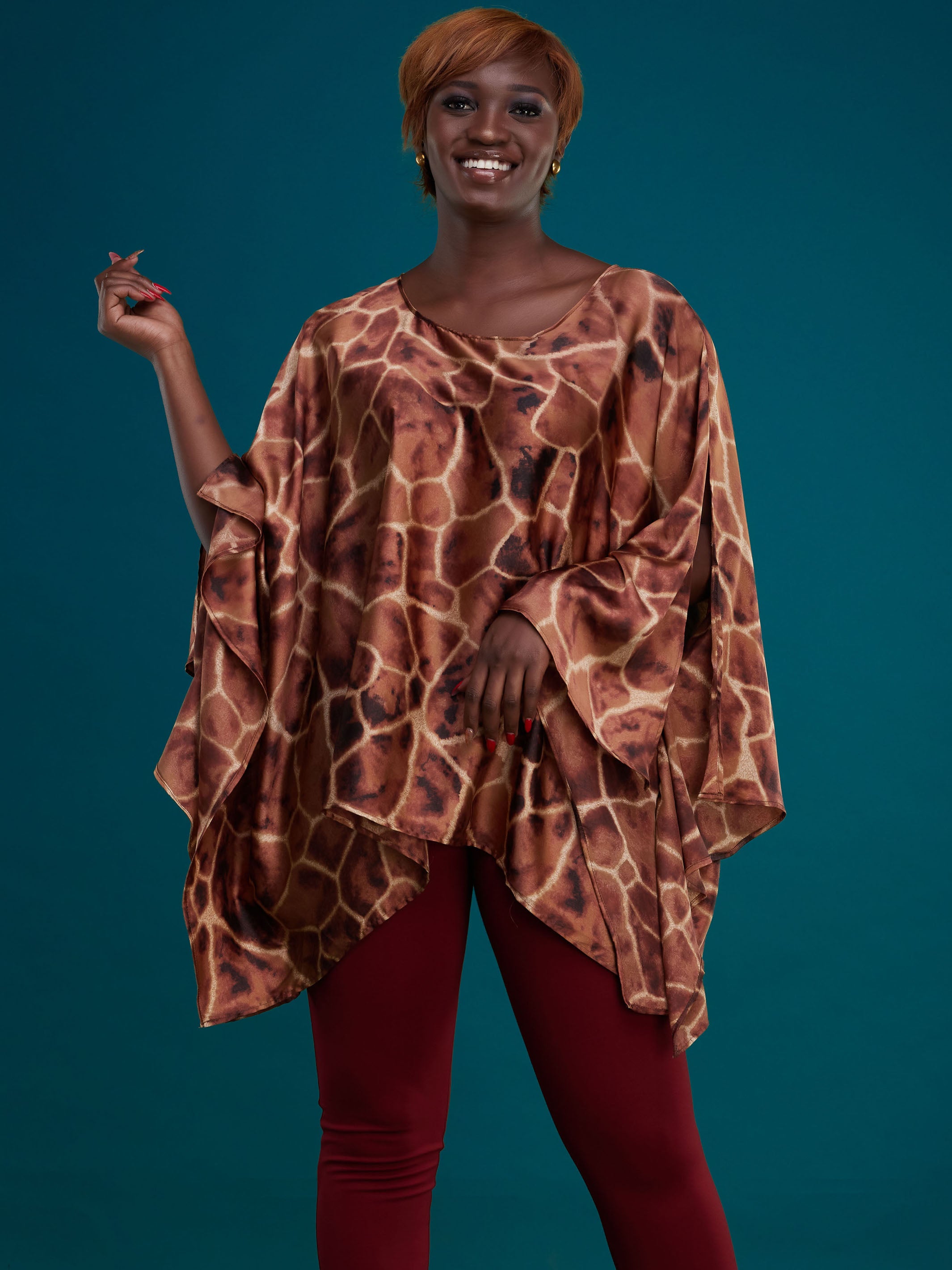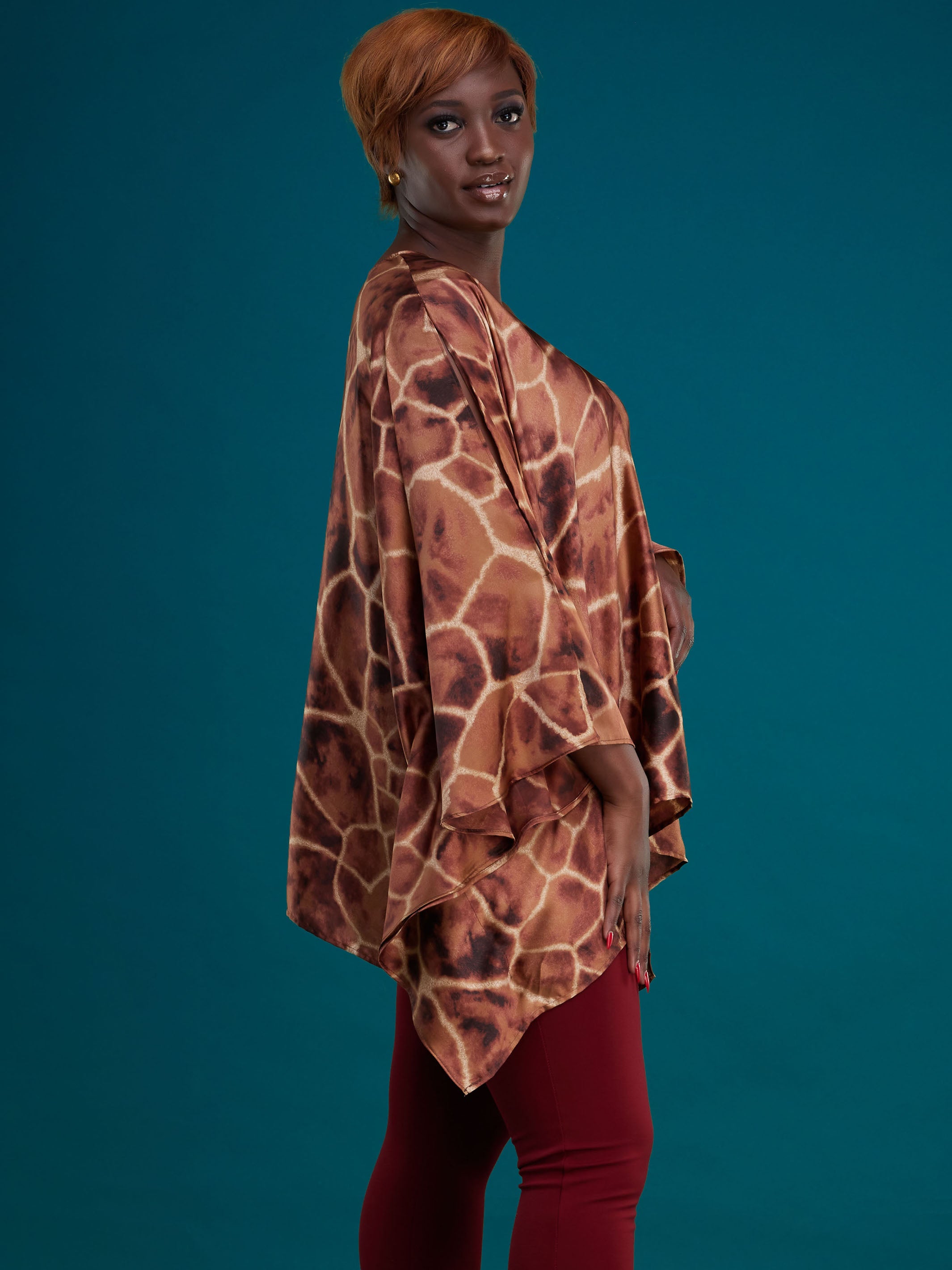 Safari Lamu Loose Chiffon Top - Brown Leopard