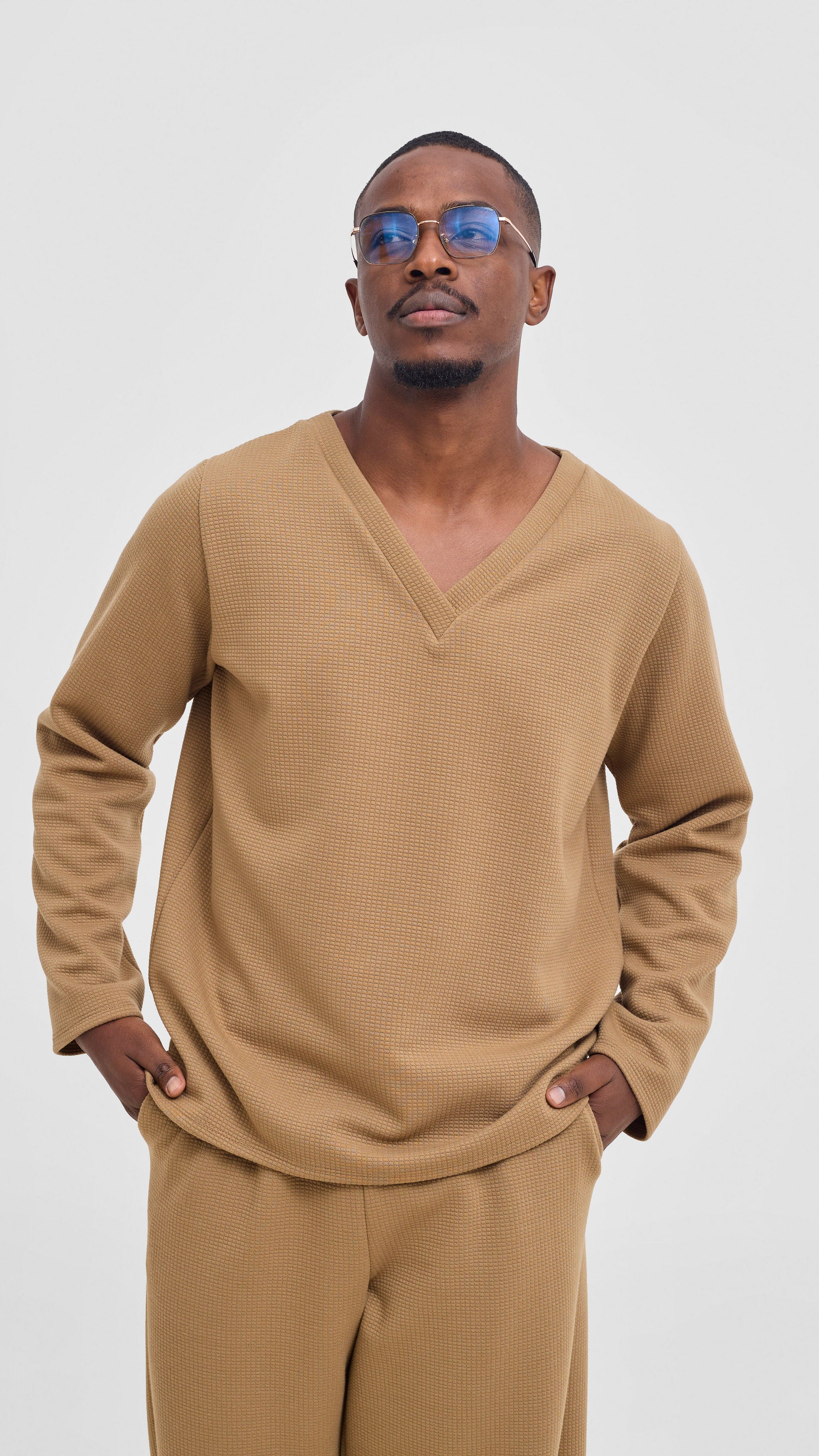 Shiv & Shikie X Safari V-Neck Long Sleeve T-shirt - Dark Tan